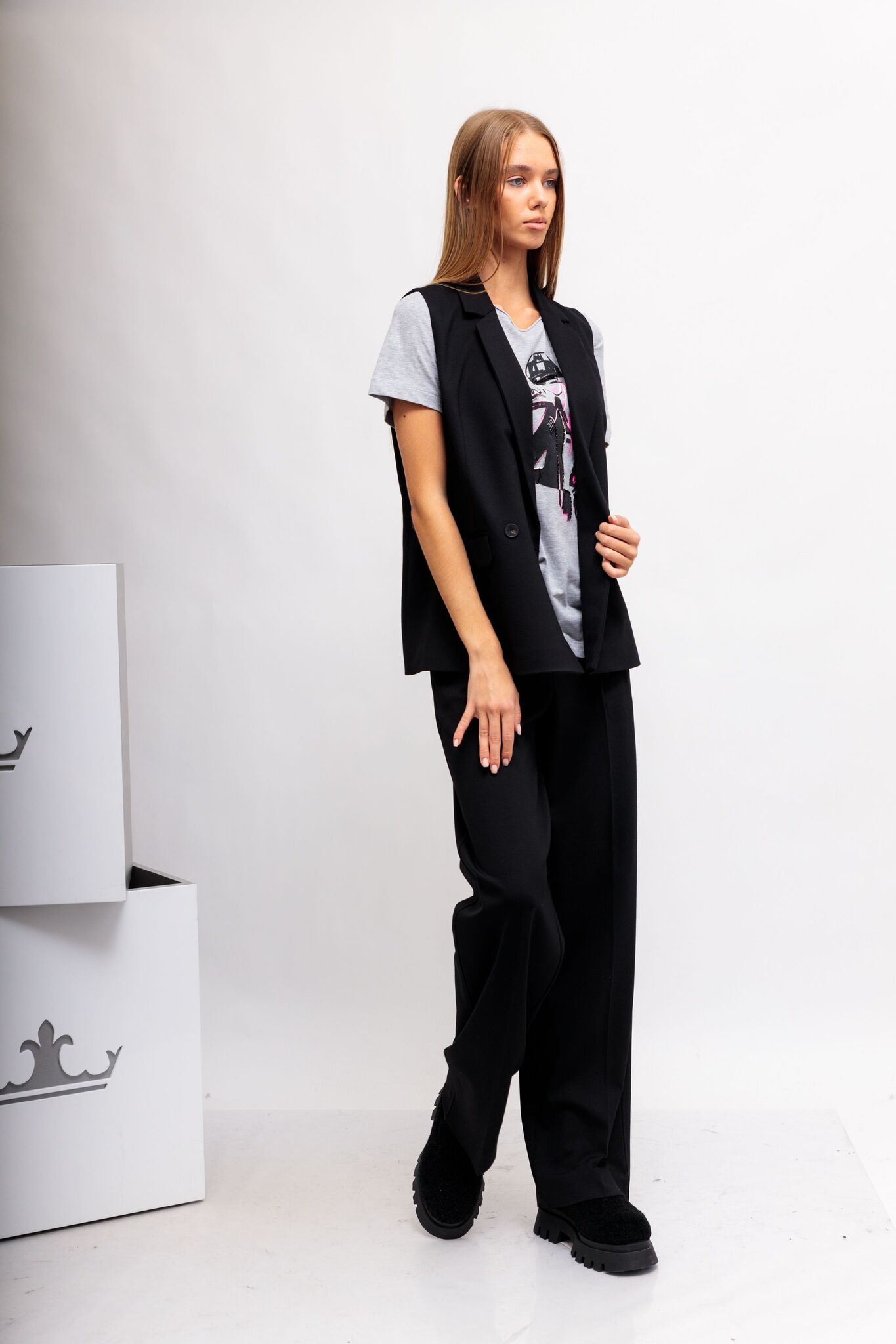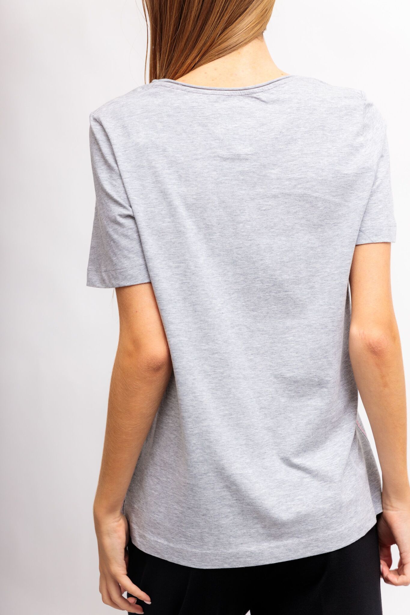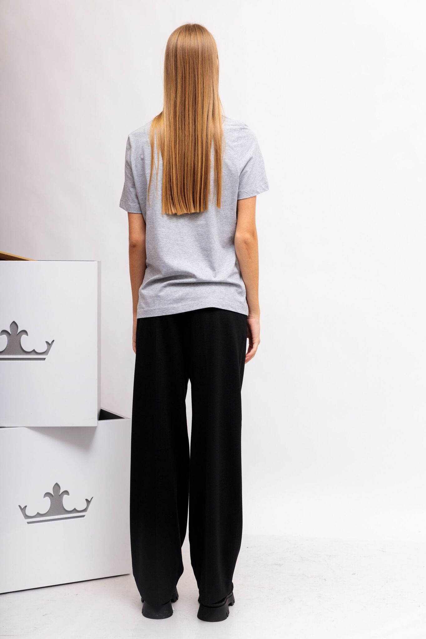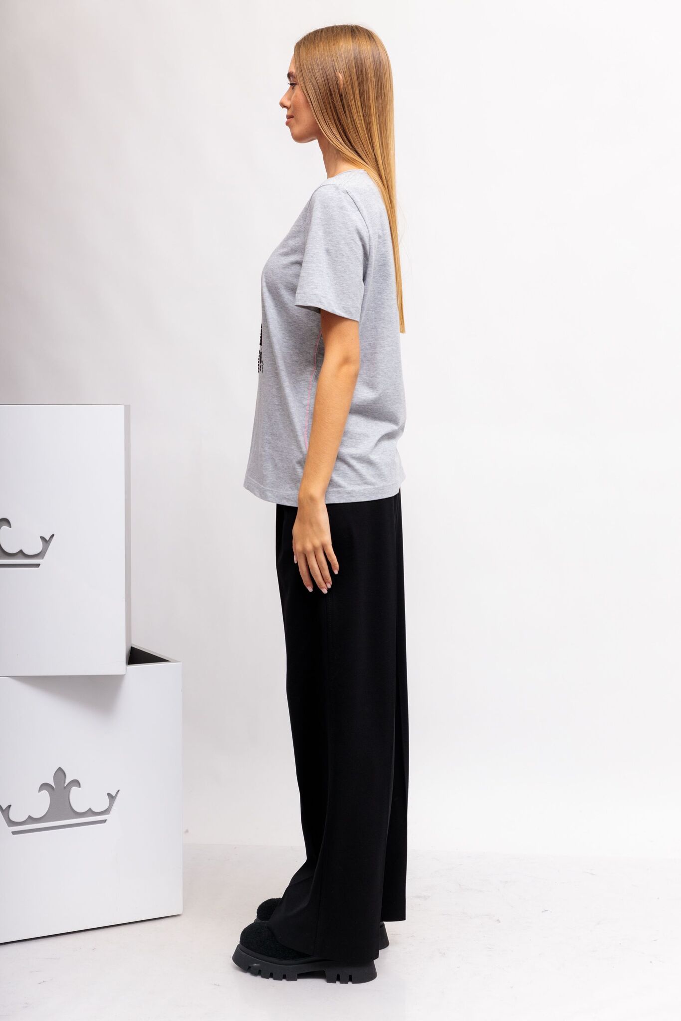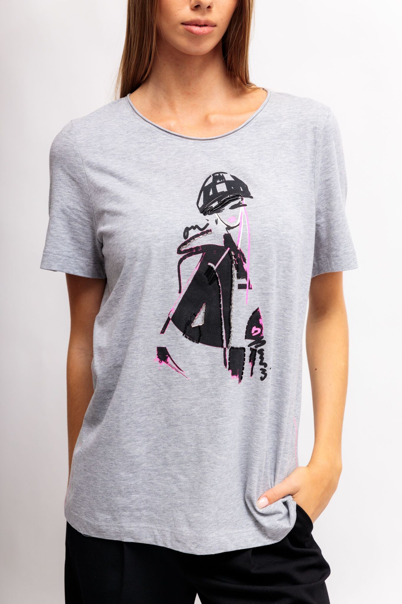 Футболка с принтом девушкиСерая с легким эффектом меланжКороткие рукаваПрямой крой