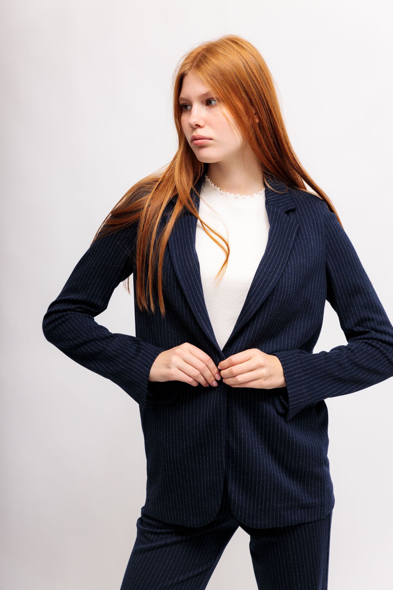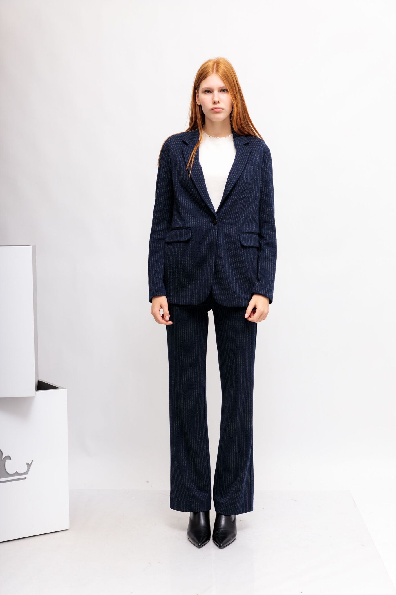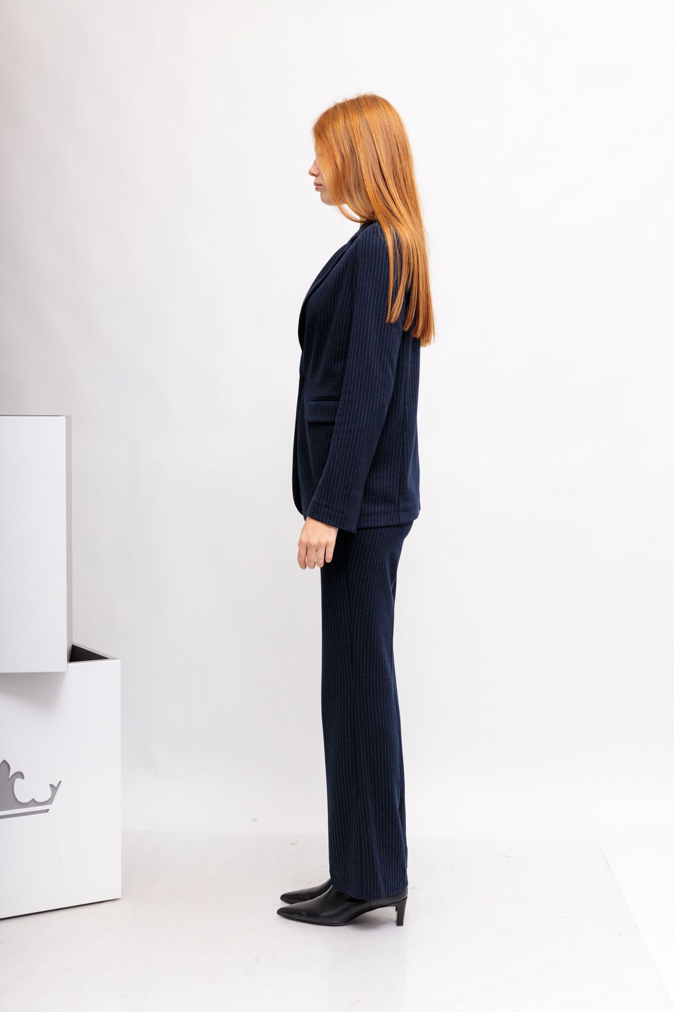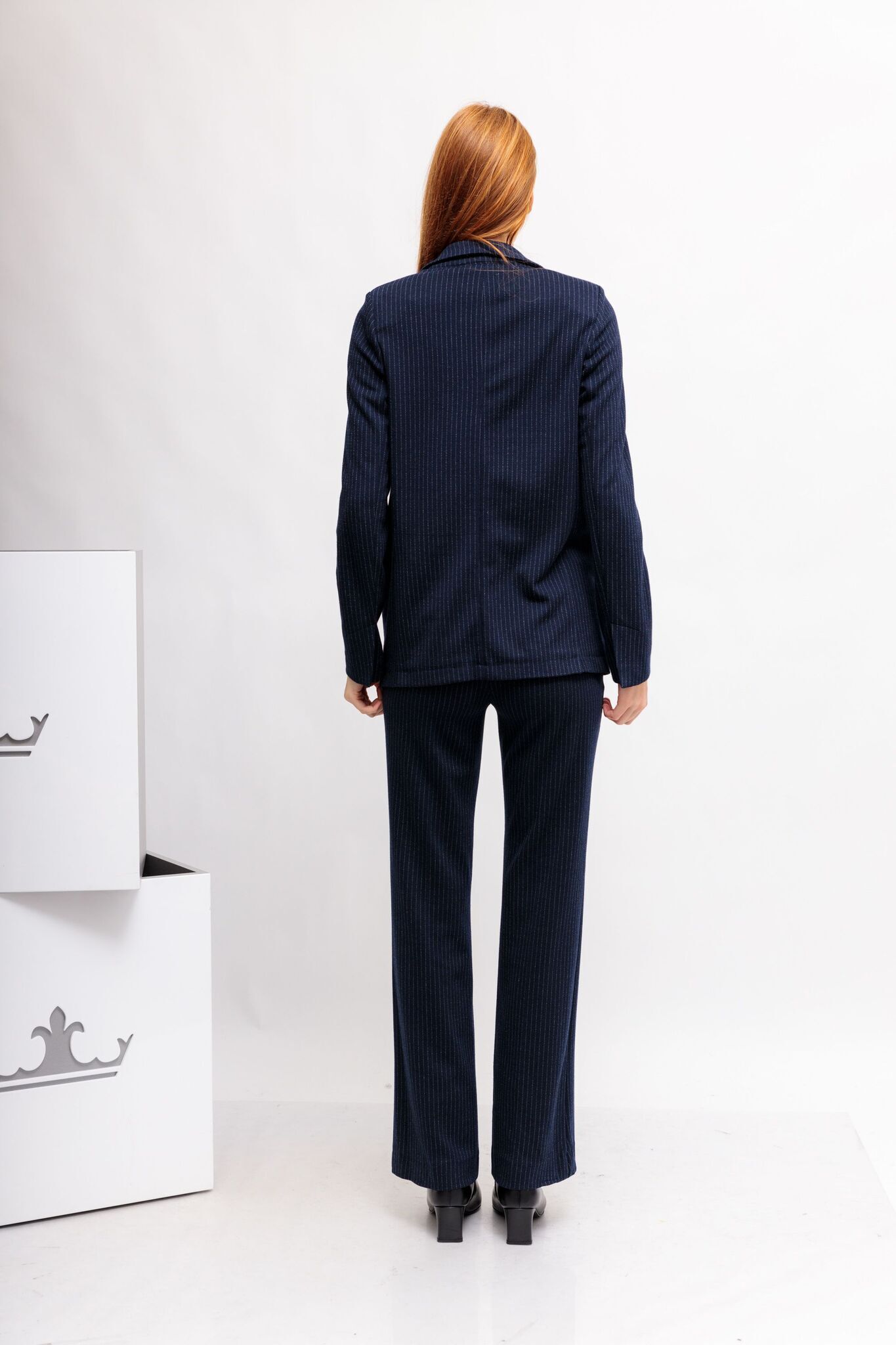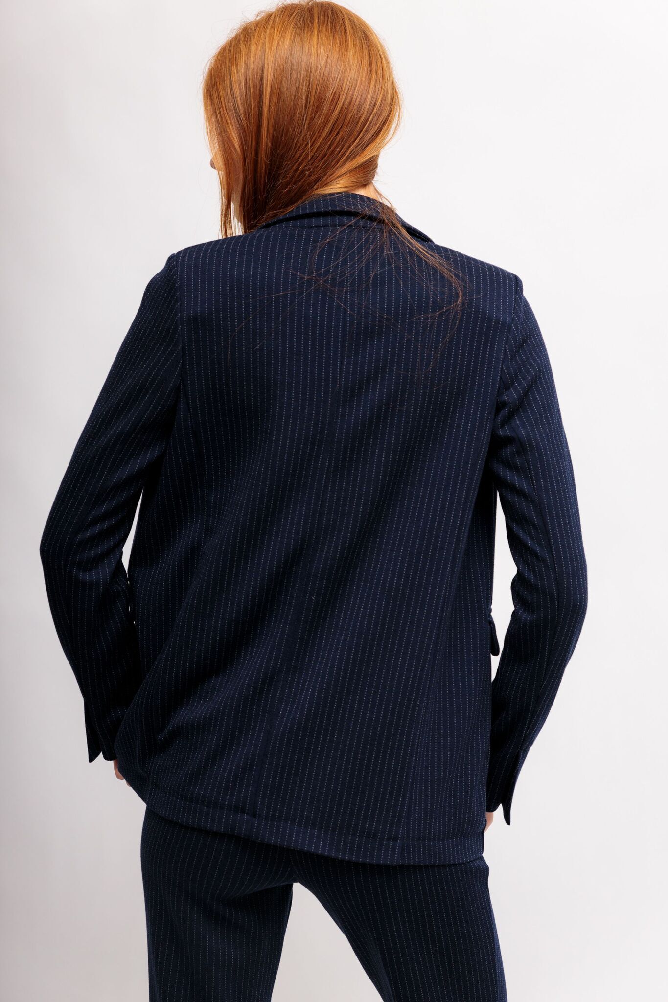 Жакет джерси тёмно-синий в полоску
