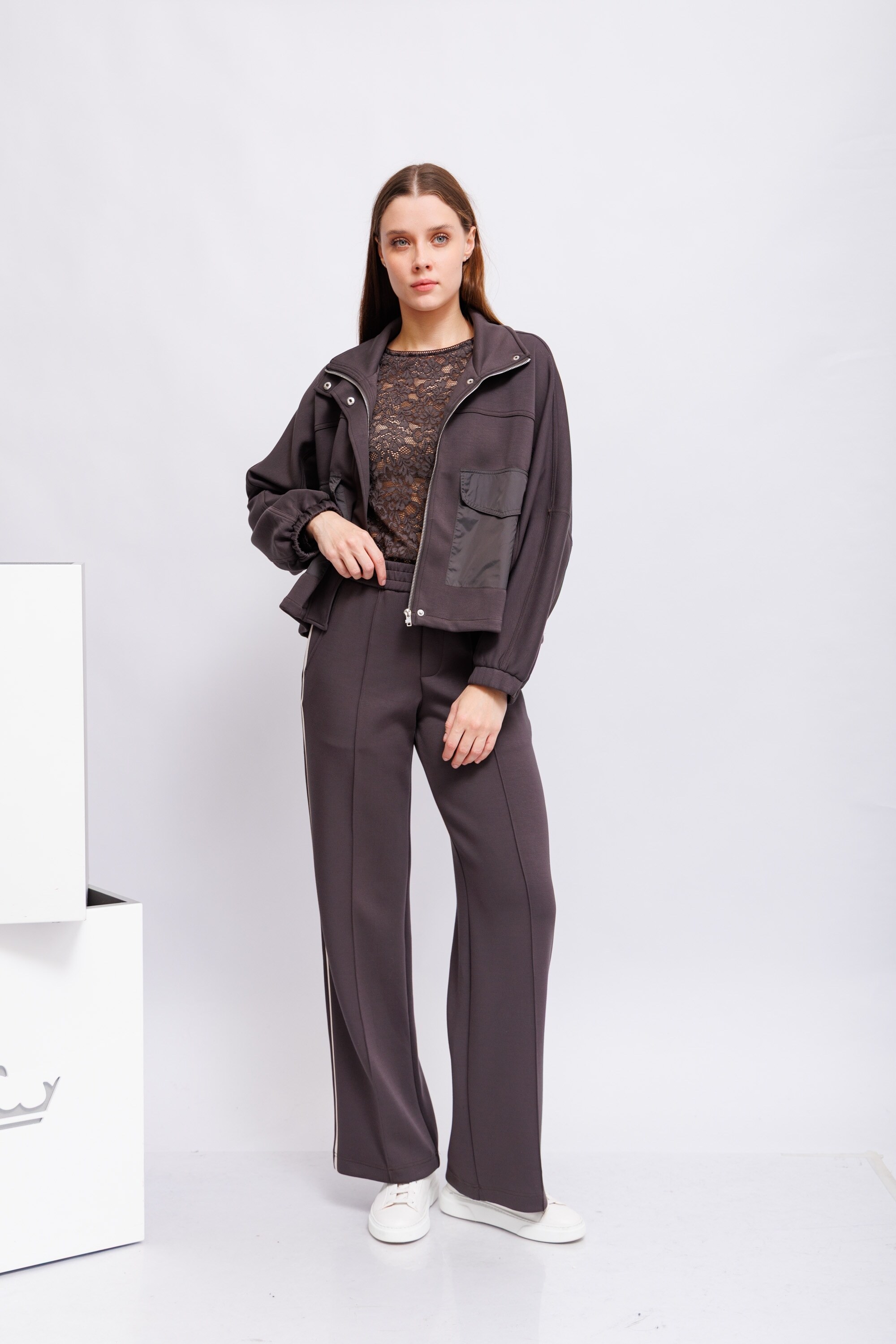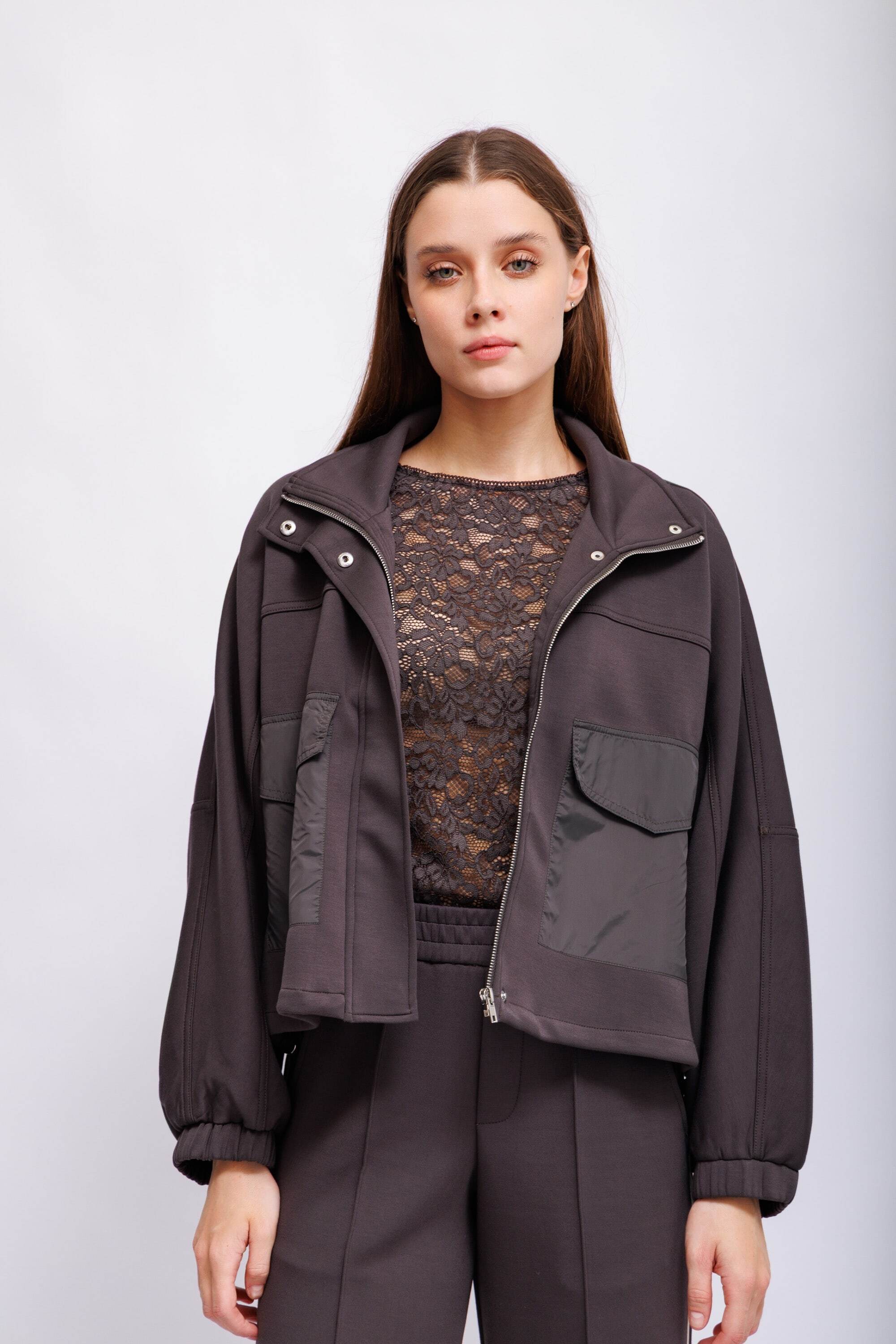 Бомбер из скуба-джерси цвета эспрессо