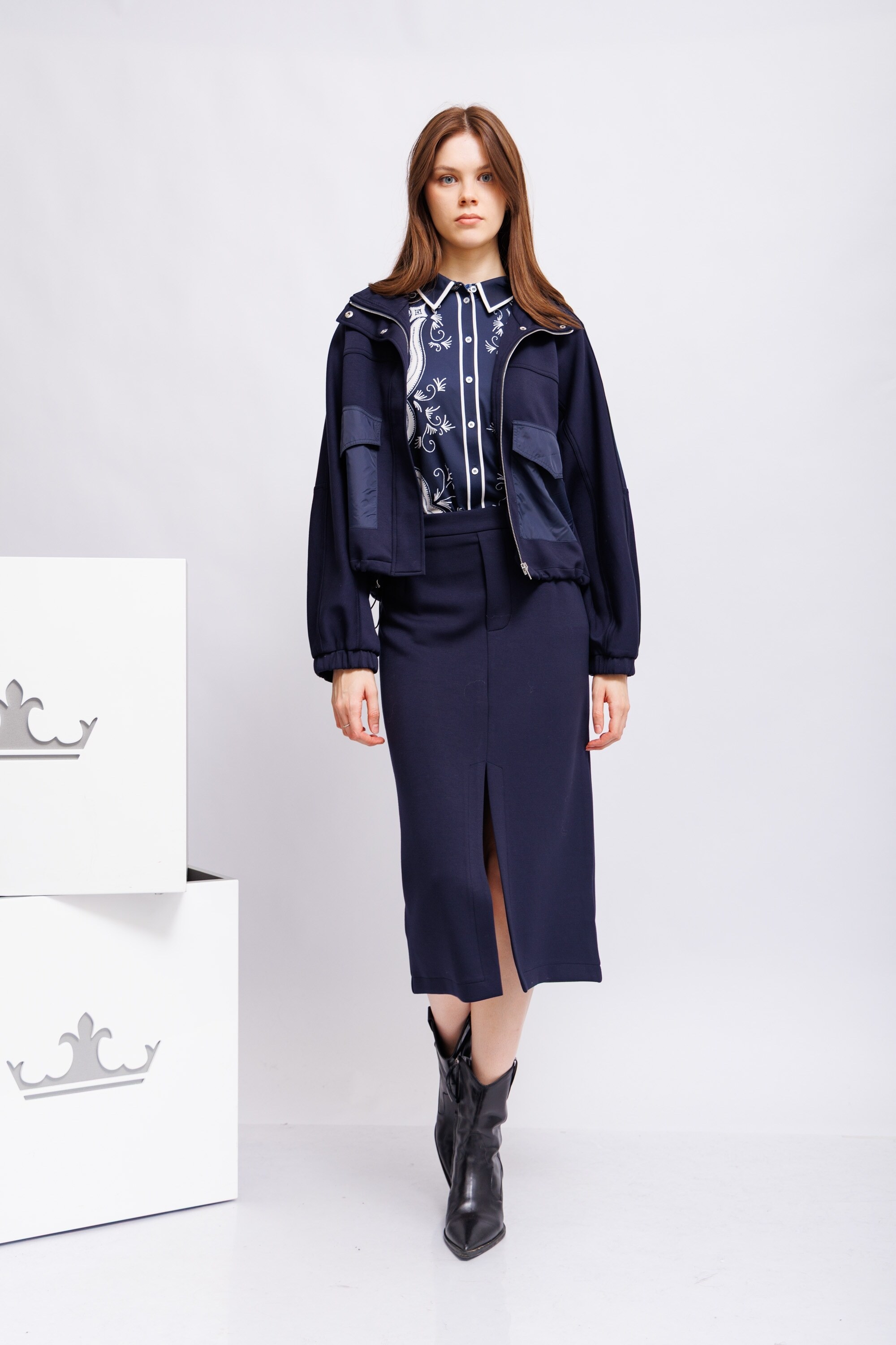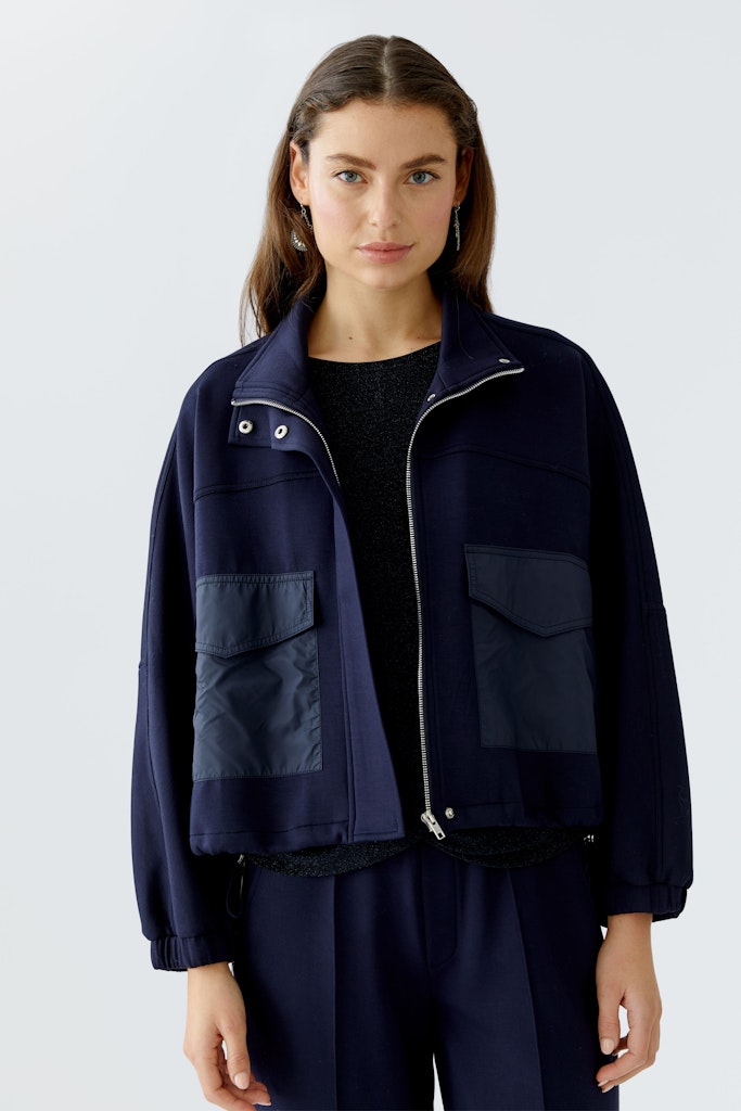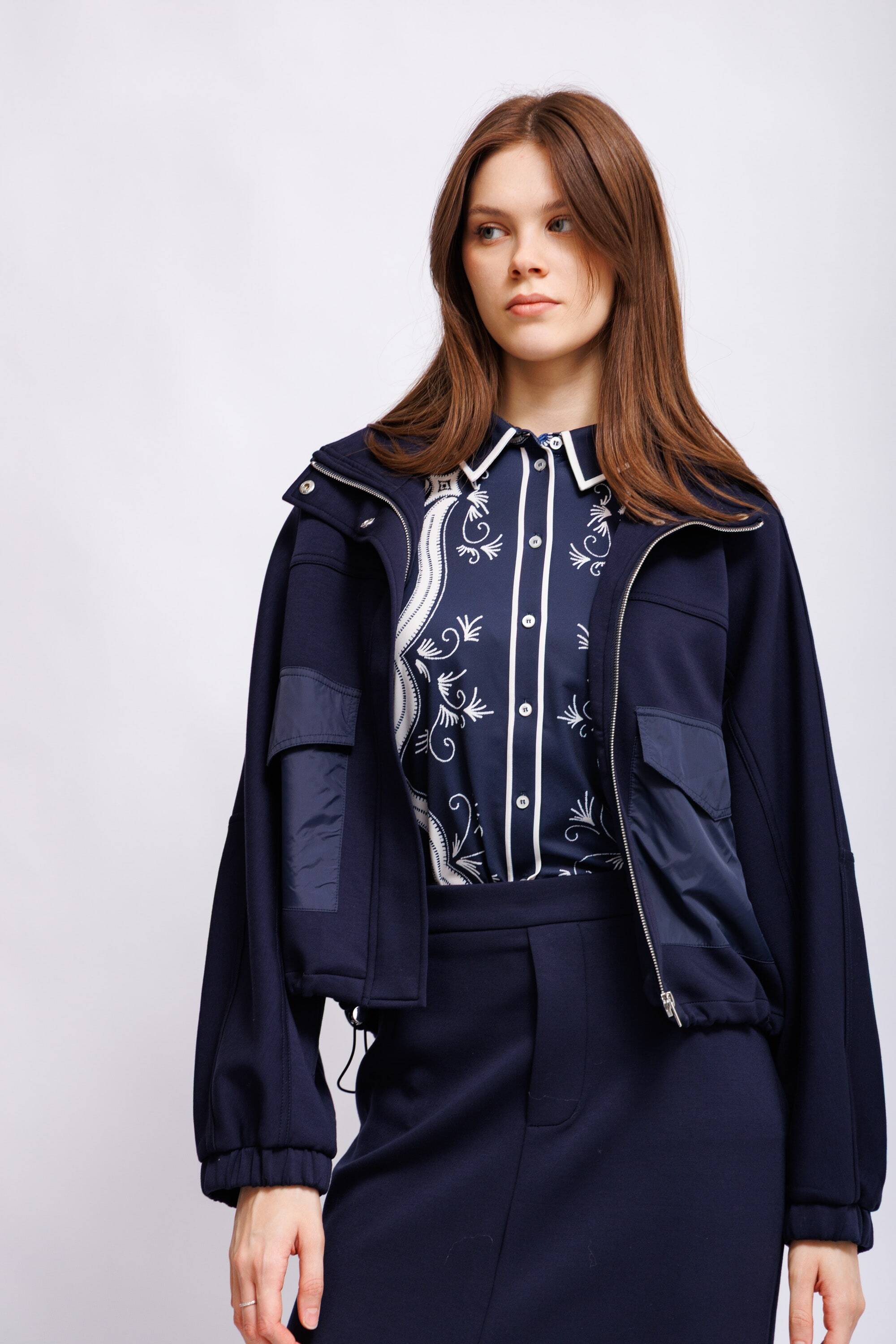 Повседневная куртка из скубы современного кроя с накладными карманами в тон.