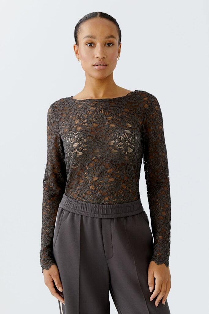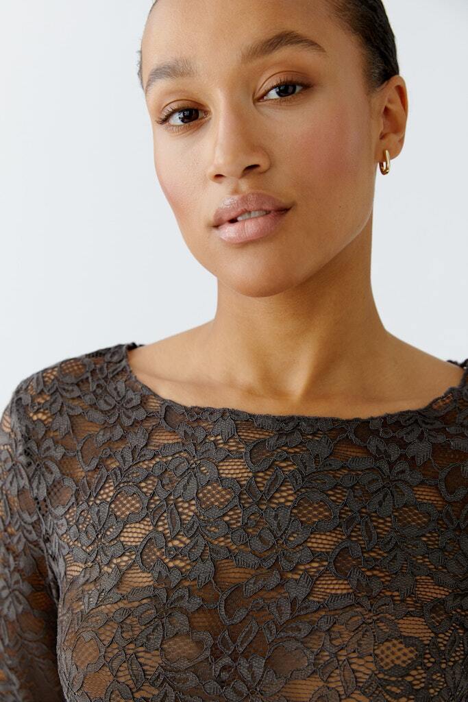 Лонгслив цвета 'эспрессо' из мягкого эластичного кружева