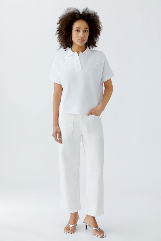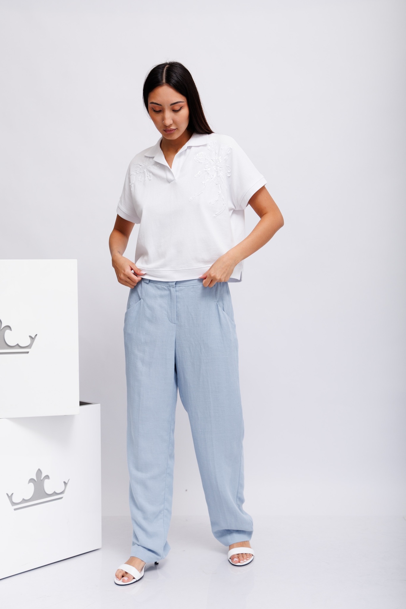 Поло с искусной вышивкой пальм и тональными микропайетками