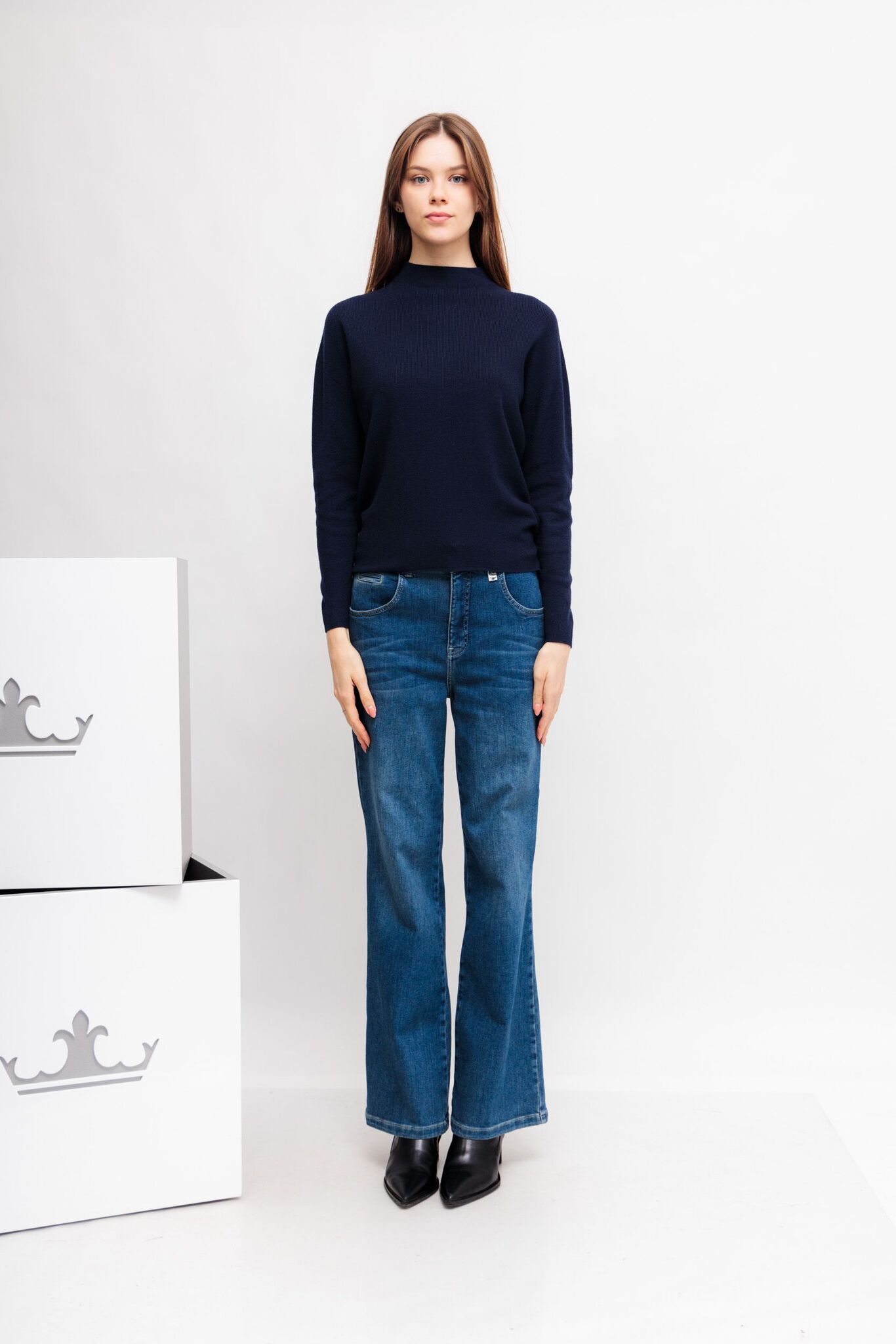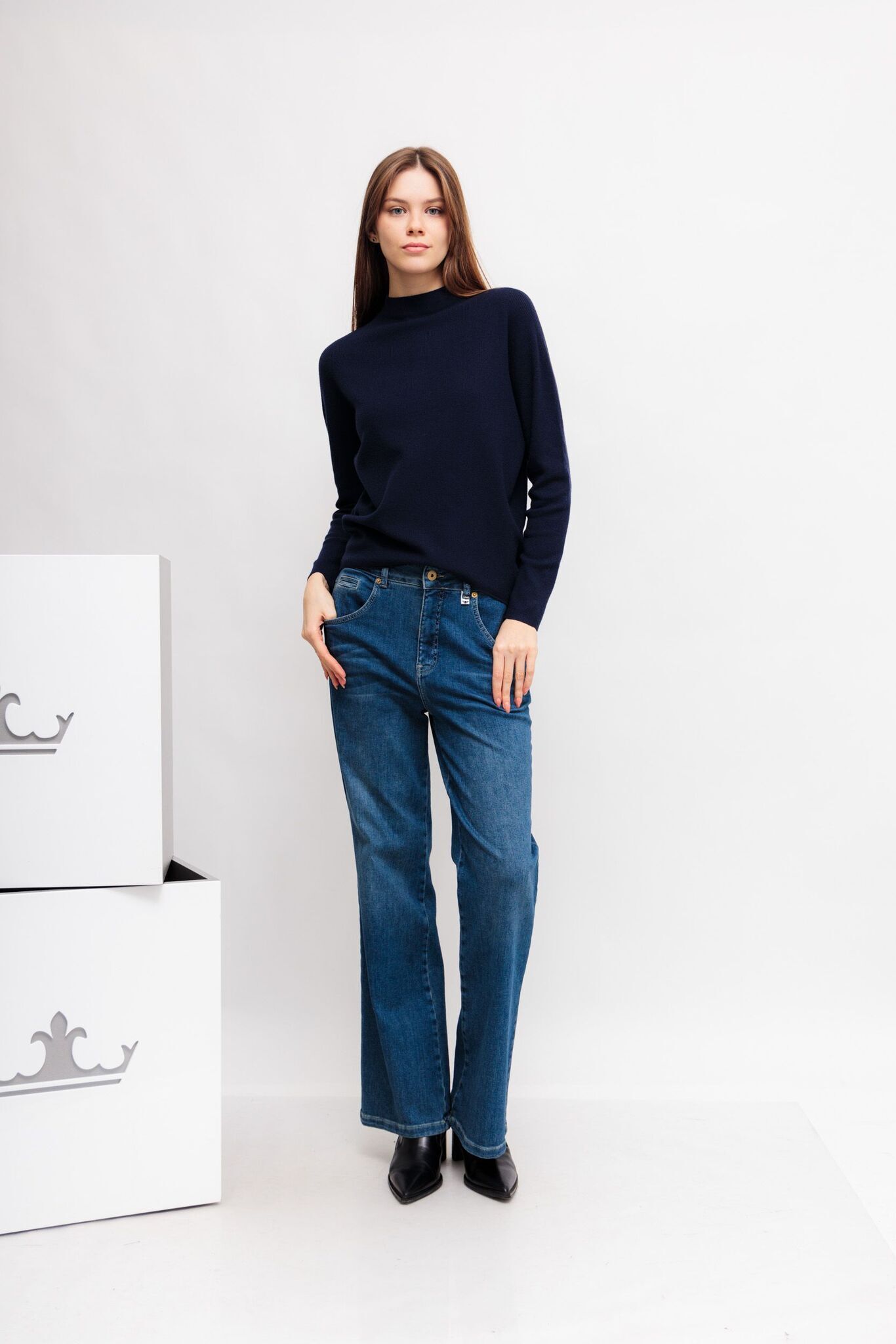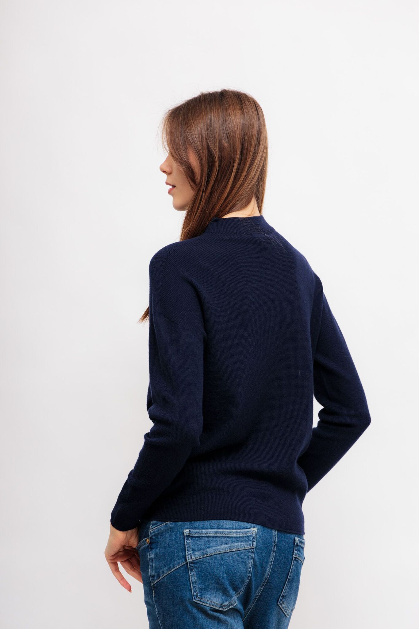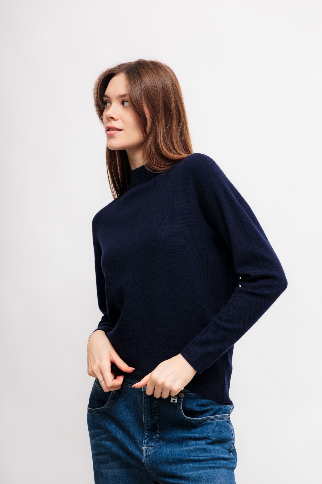 Свитер тонкий темно-синийВорот-стойка с отворотомСпущенная линия плечРукава длинныеПрямой крой