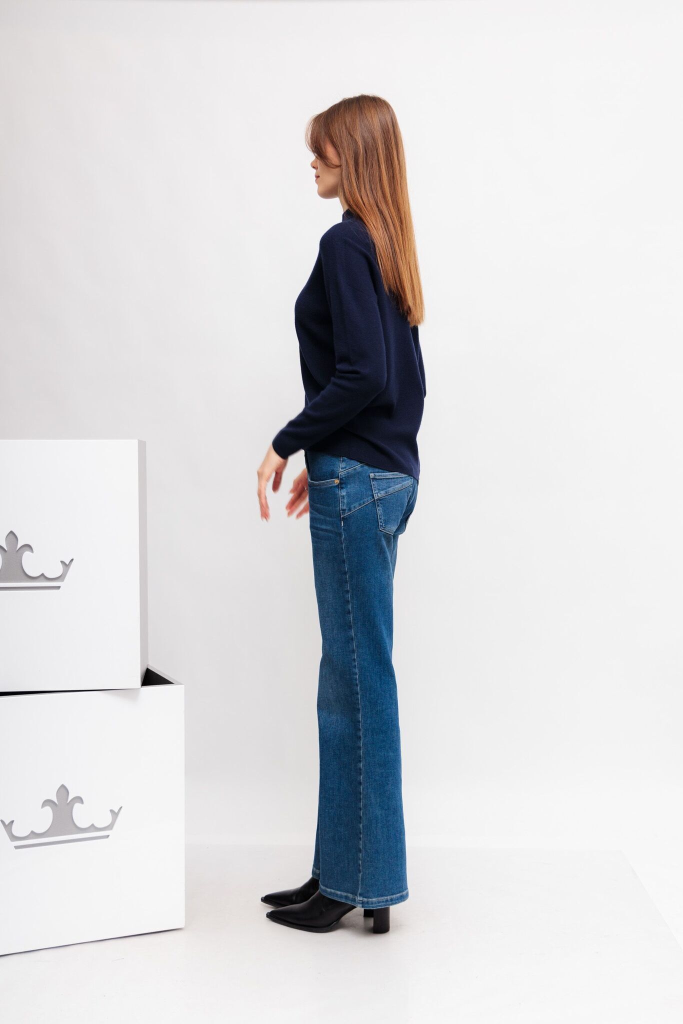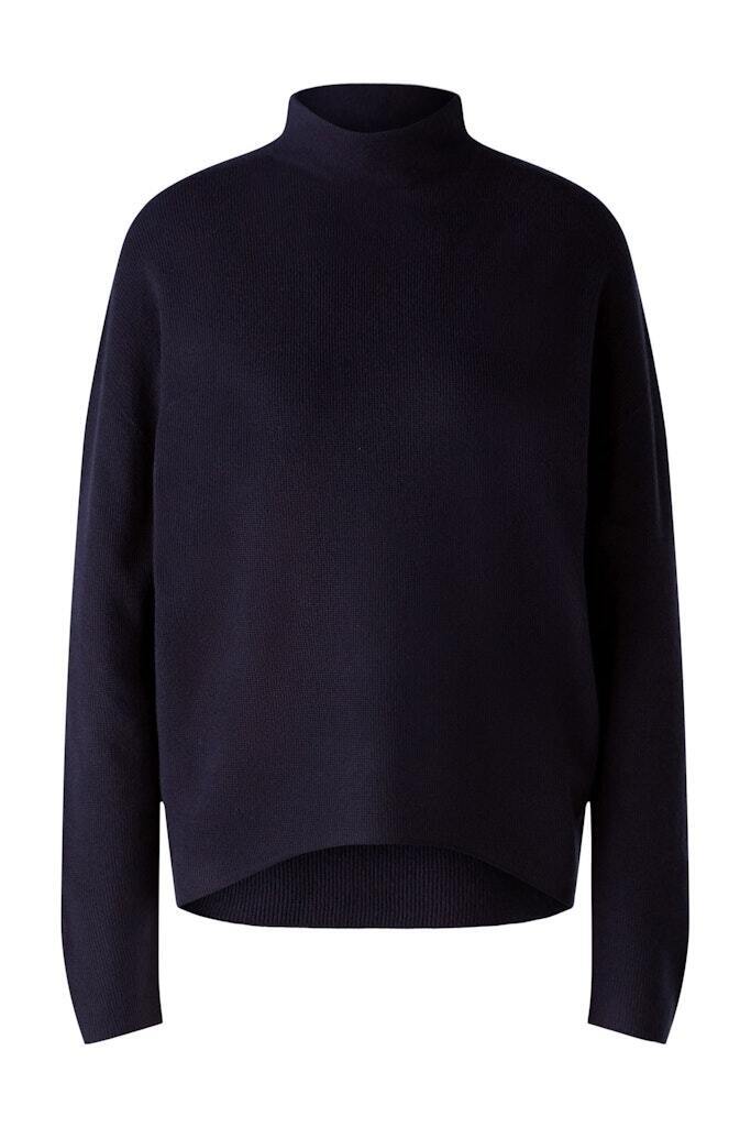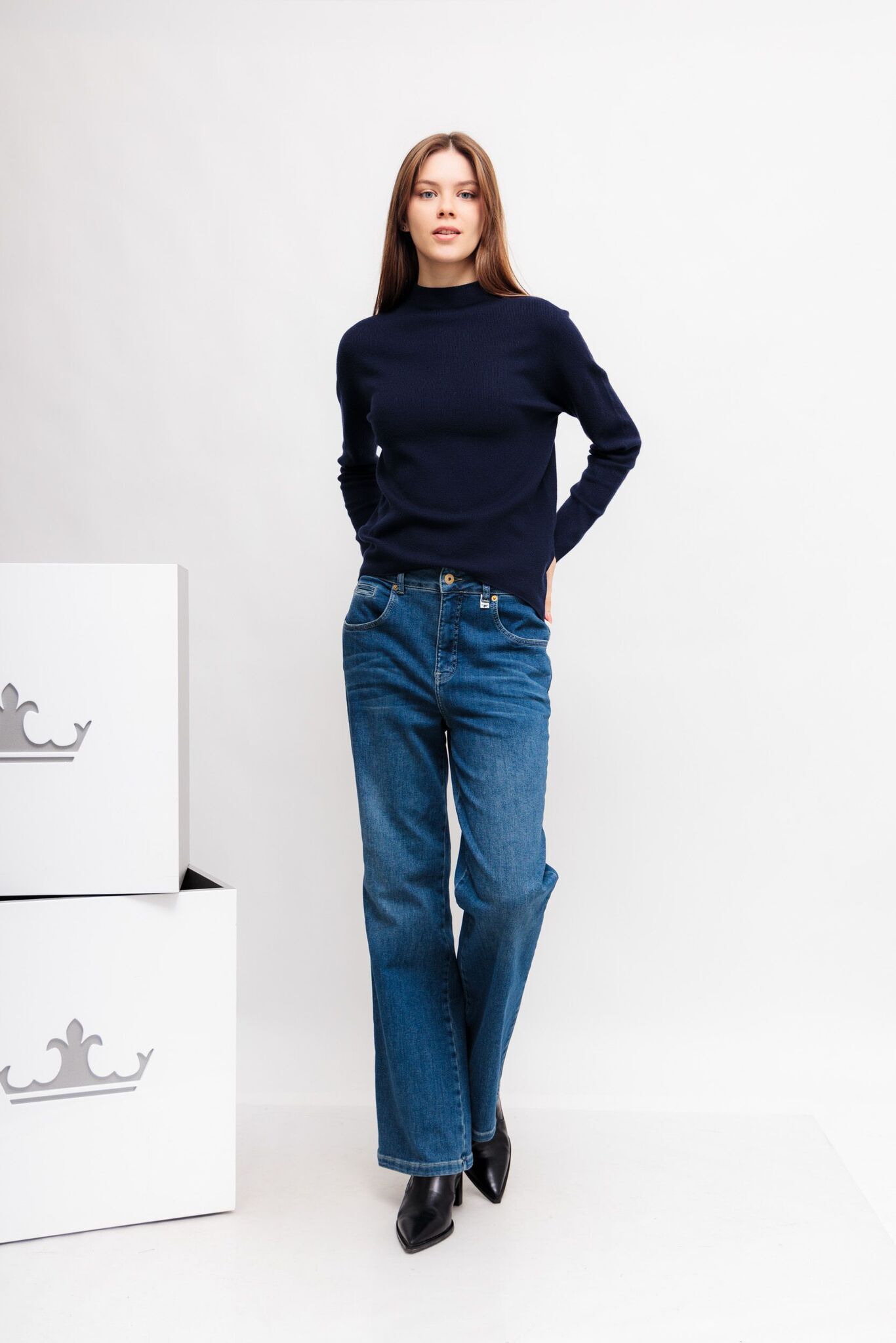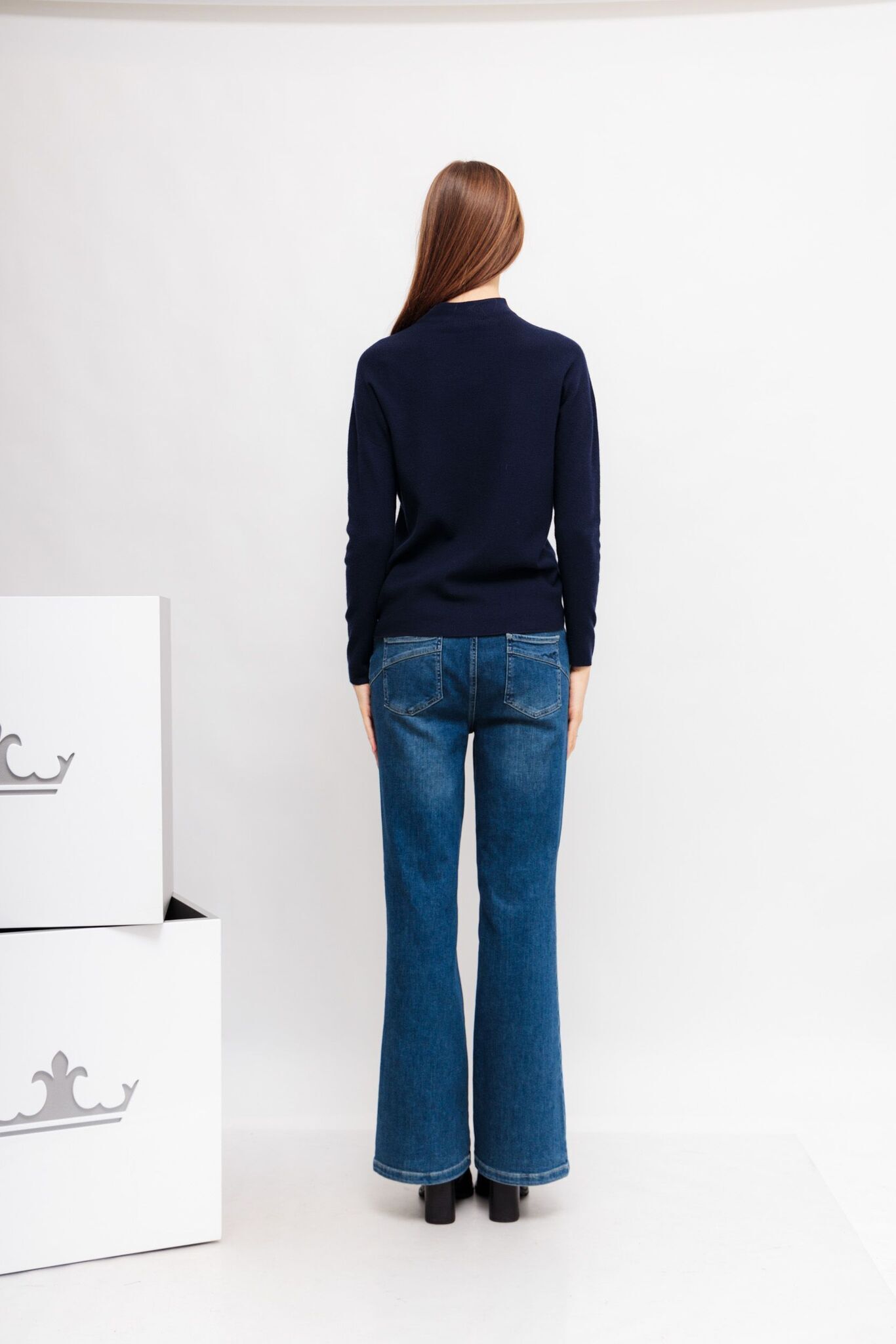 Свитер тонкий темно-синийВорот-стойка с отворотомСпущенная линия плечРукава длинныеПрямой крой