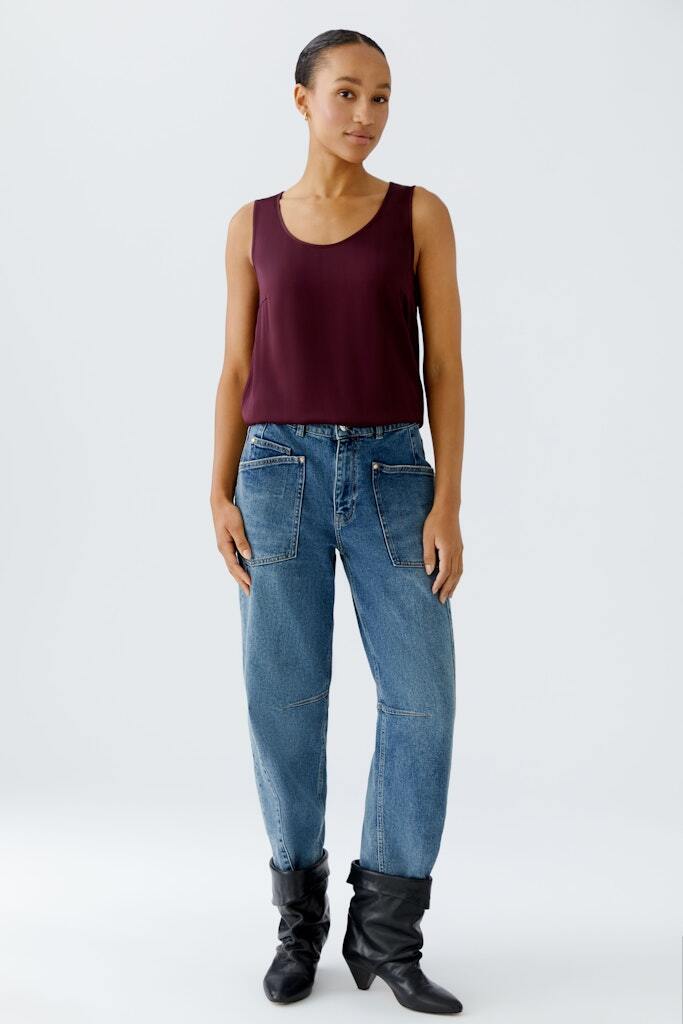 Майка — идеальный вариант для любого образа — облегает бедра.