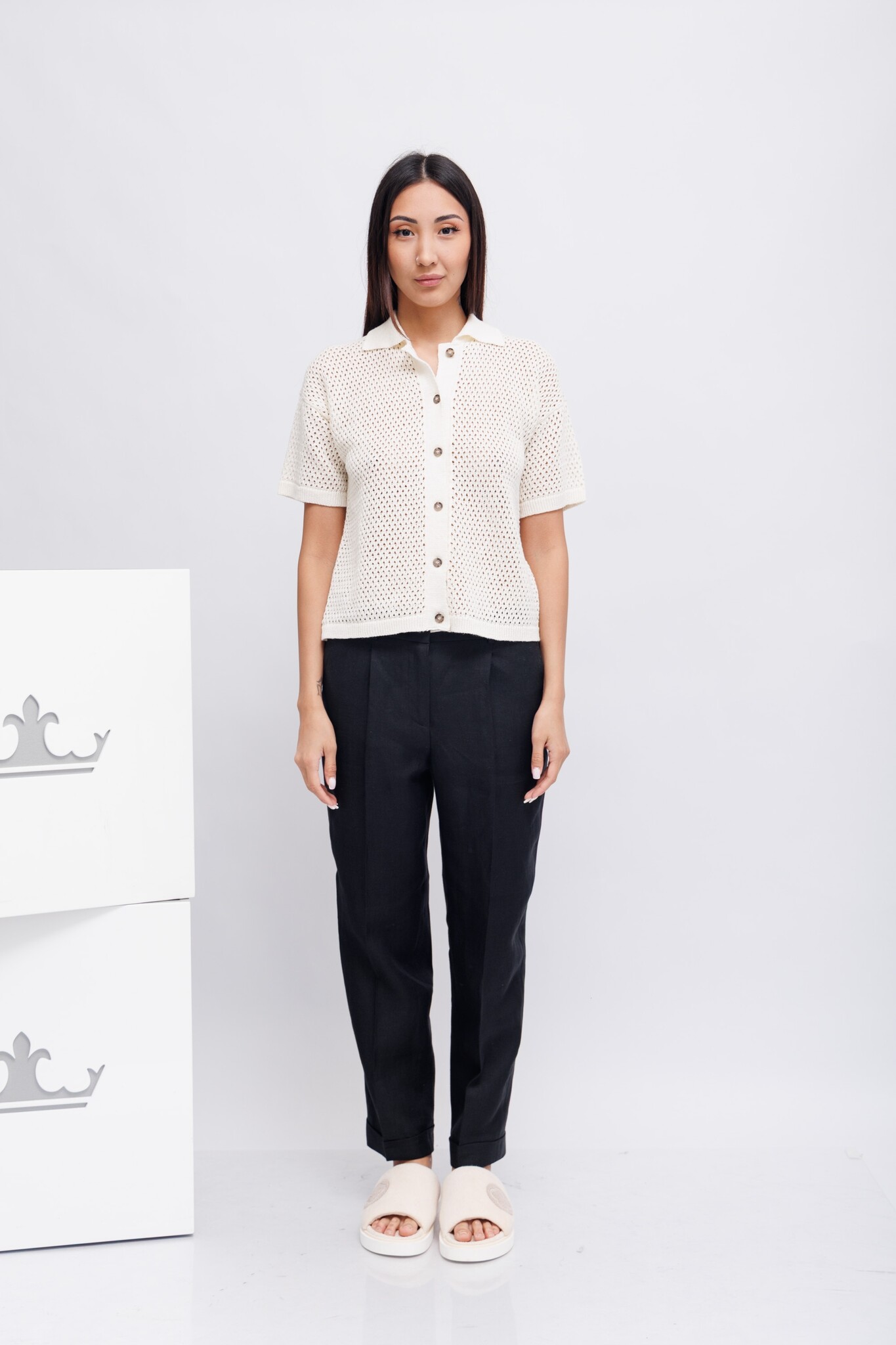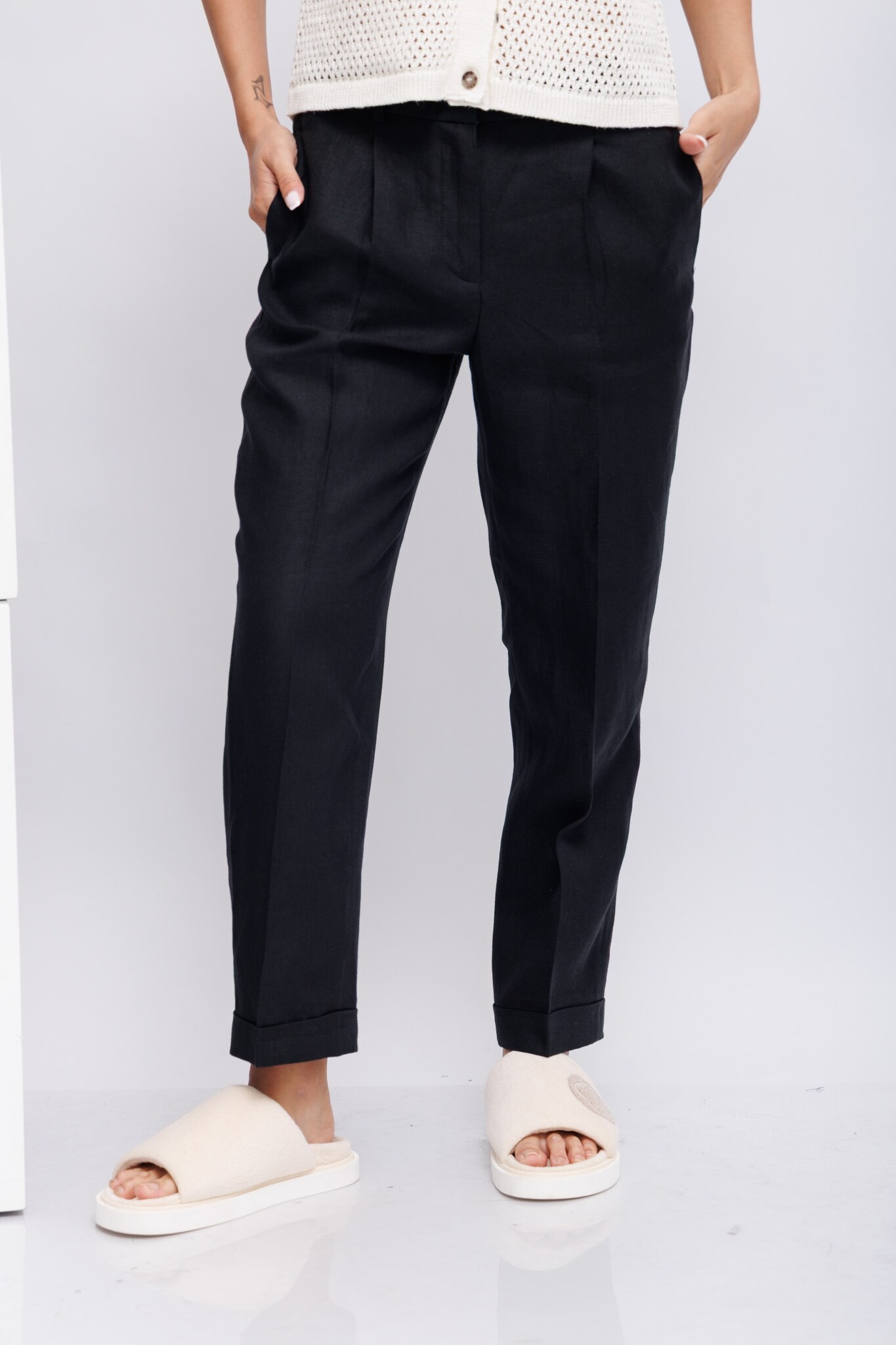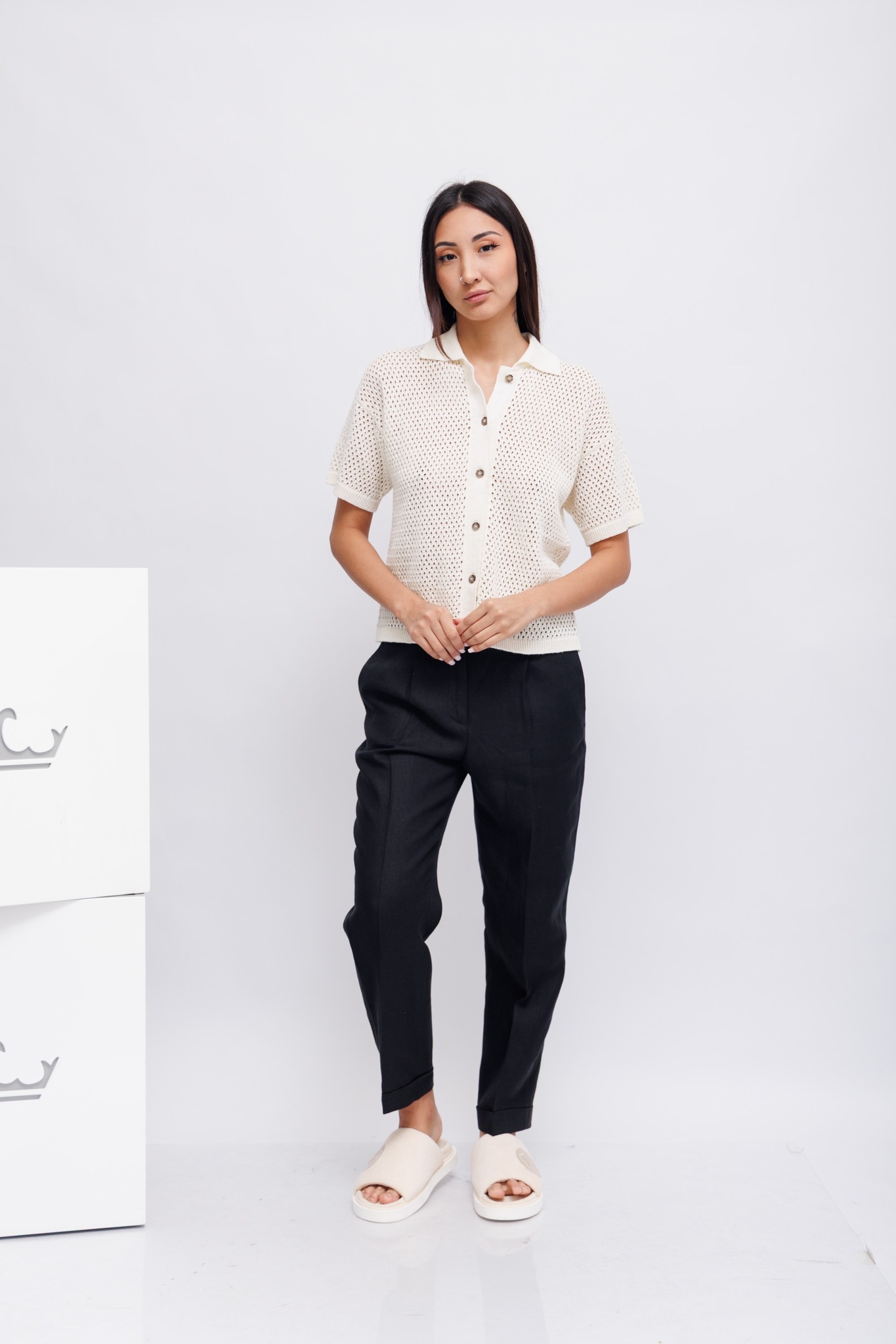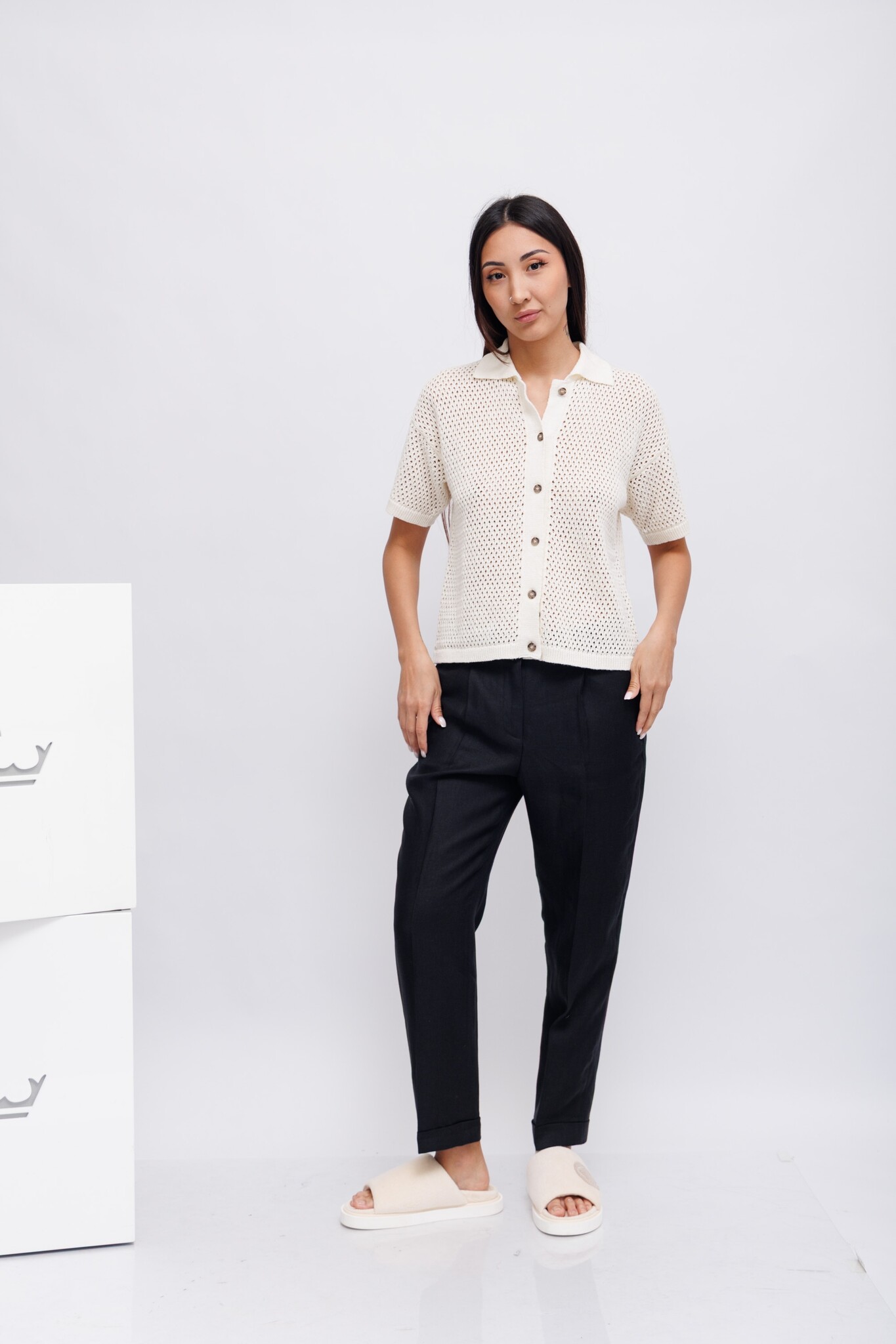 ЗащипыКосые боковые карманыСзади- карманы -листочкиСлегка укороченная длина с отворотами