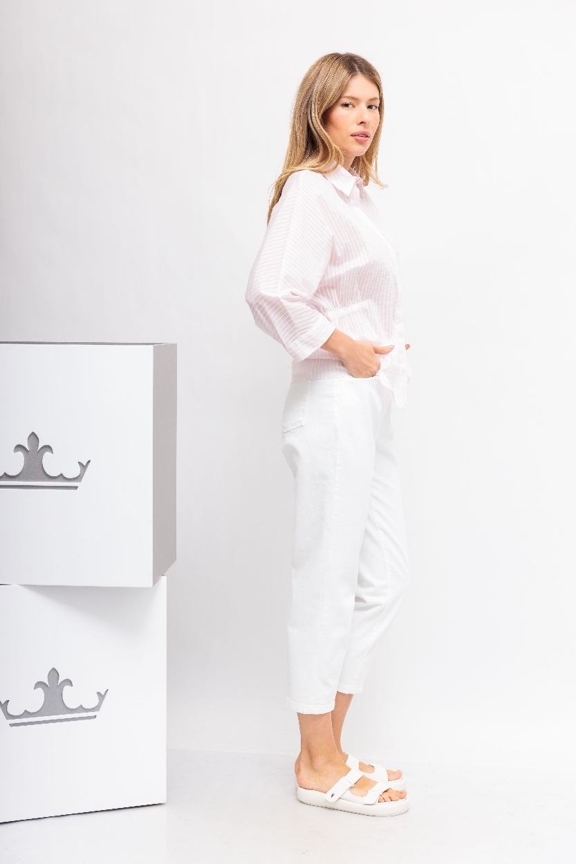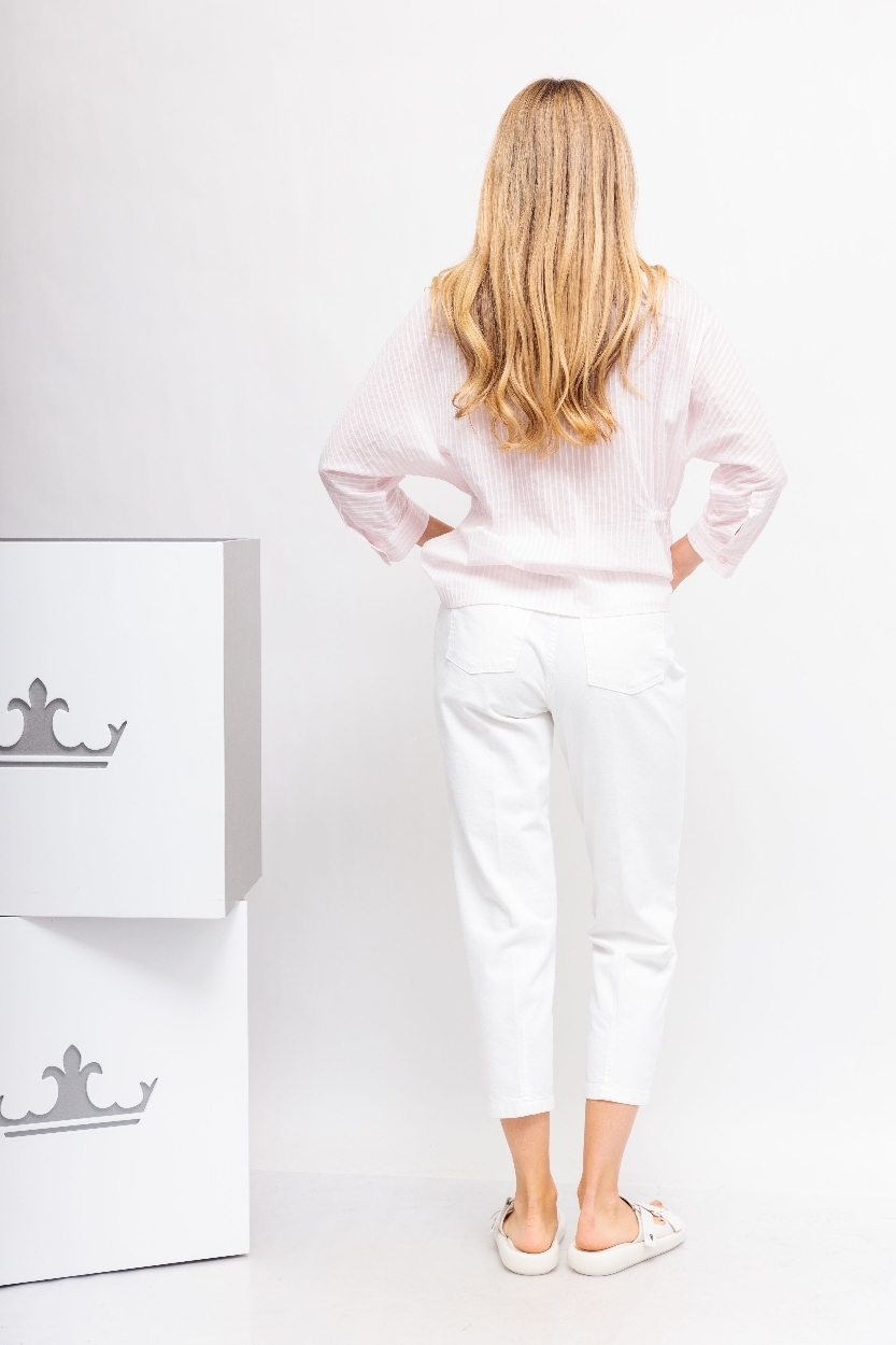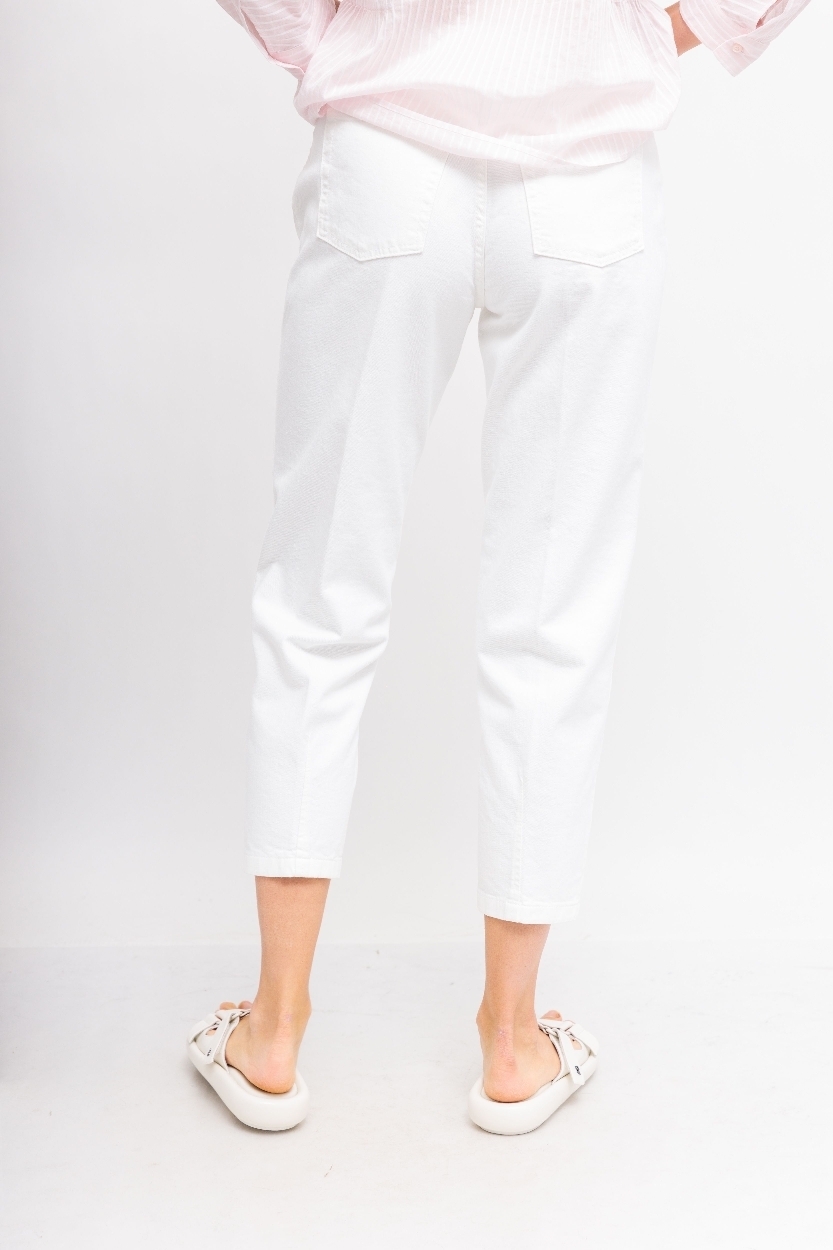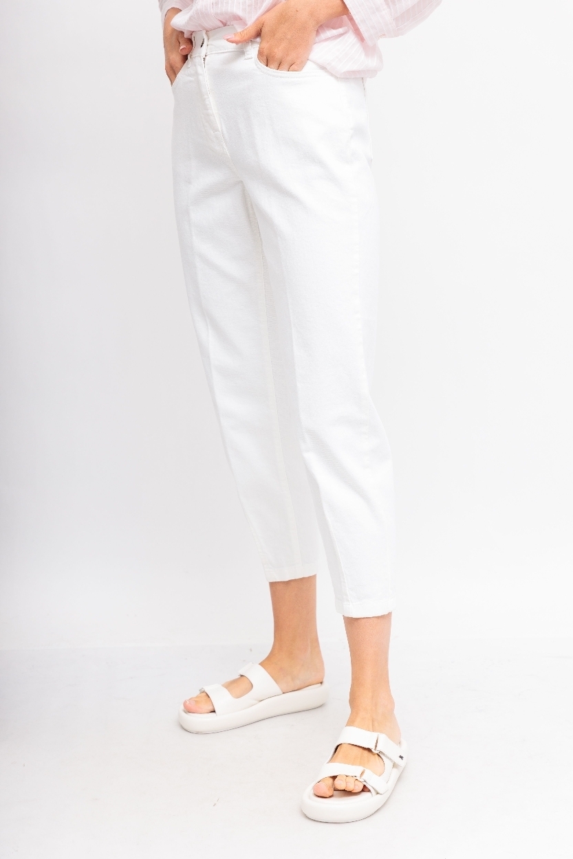 Джинсы-слоучи(бананы) молочного цветаОтстрочка в тонМодель "5 карманов"Гульфик на молнии и металлической пуговице Сзади- кокеткаСвободный в бедрах,заужающийся к низу укороченный крой