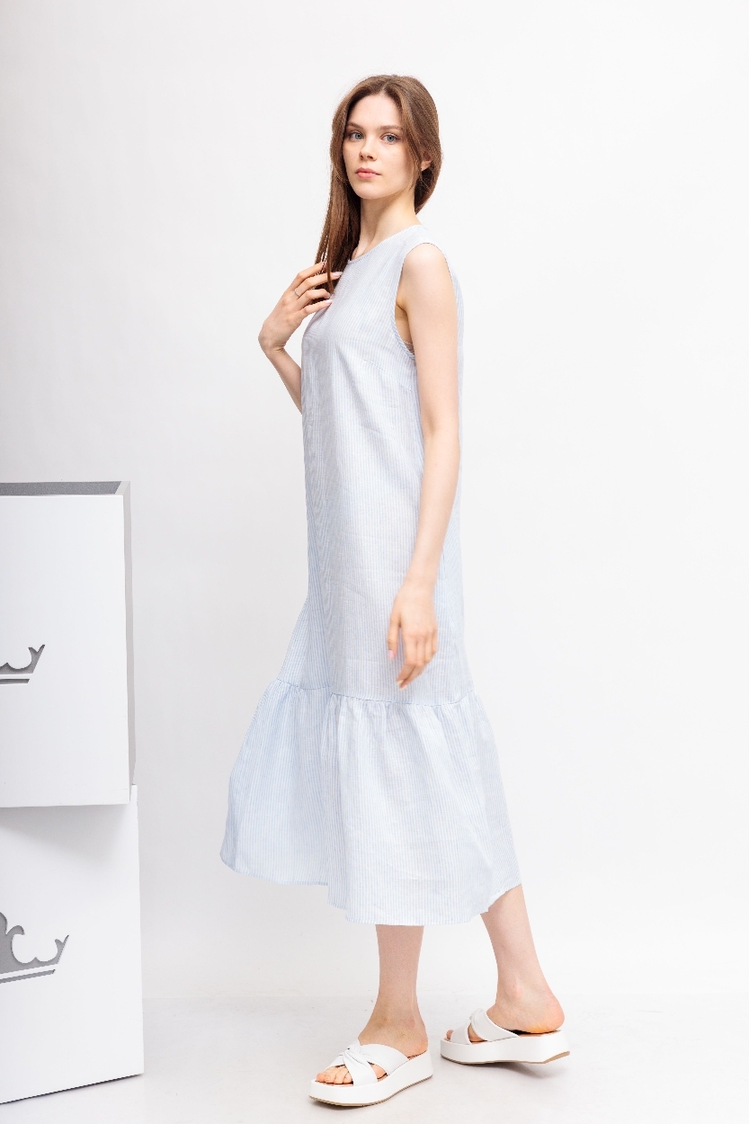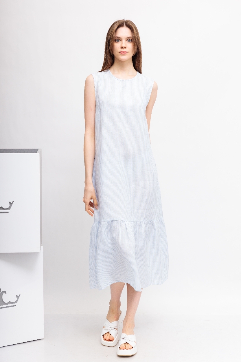 Льняное платье в бело-голубую полоску