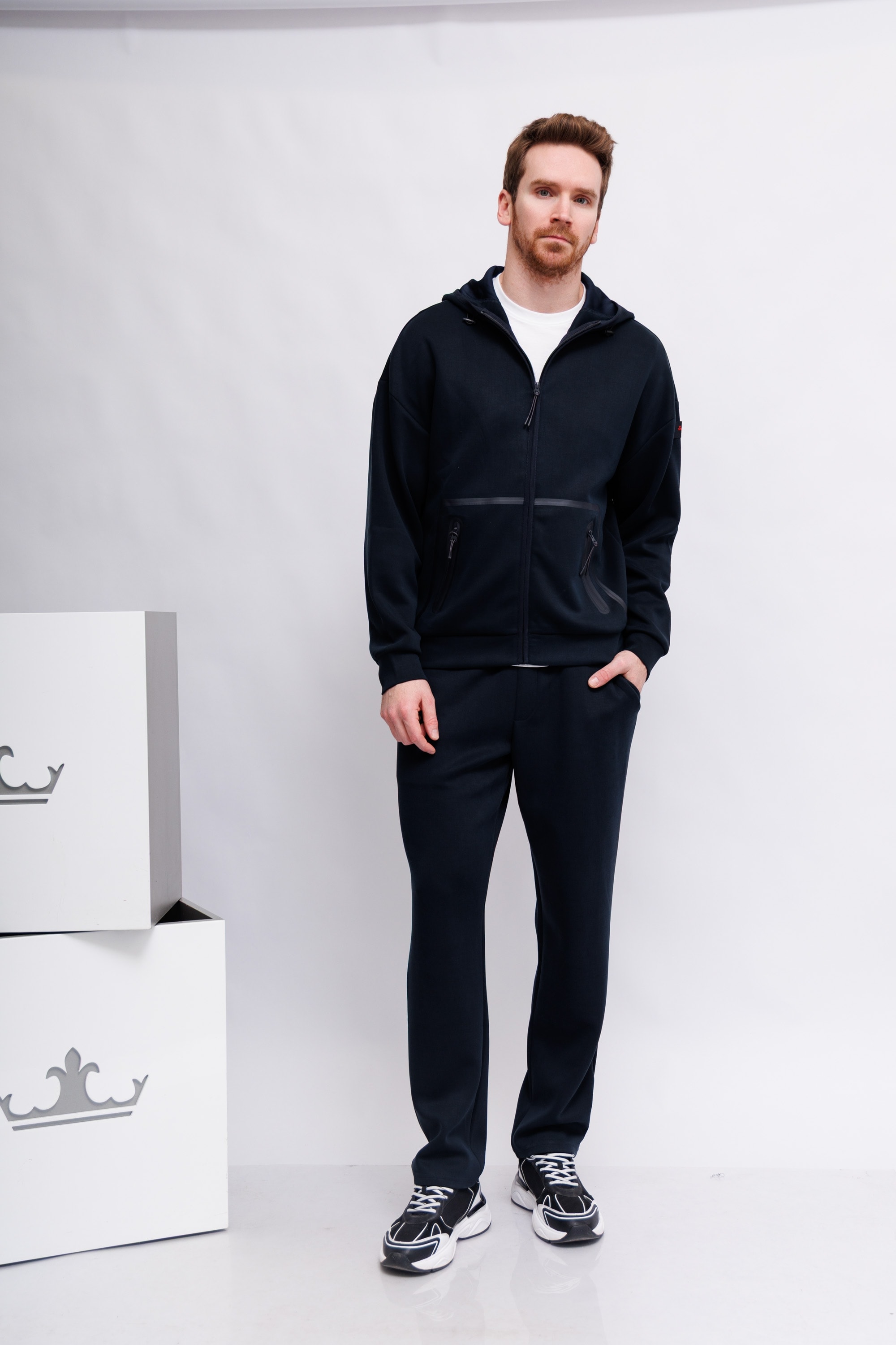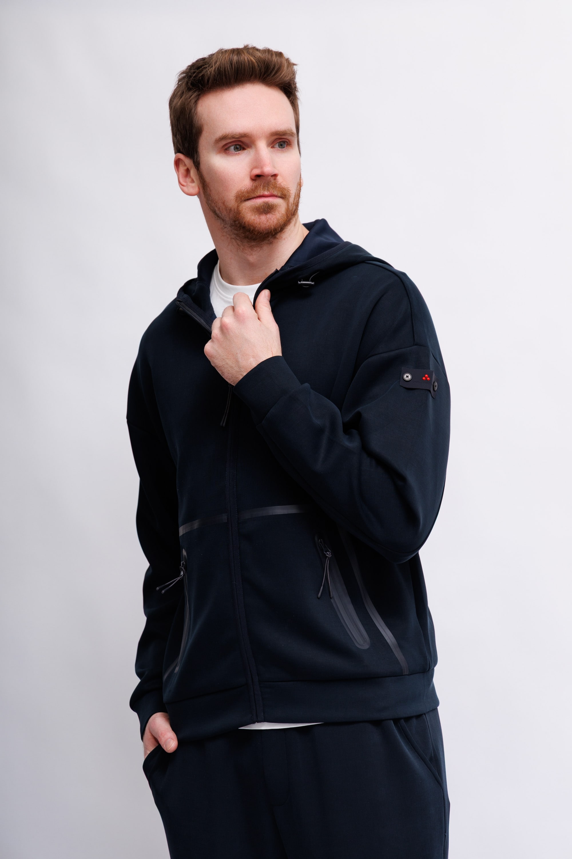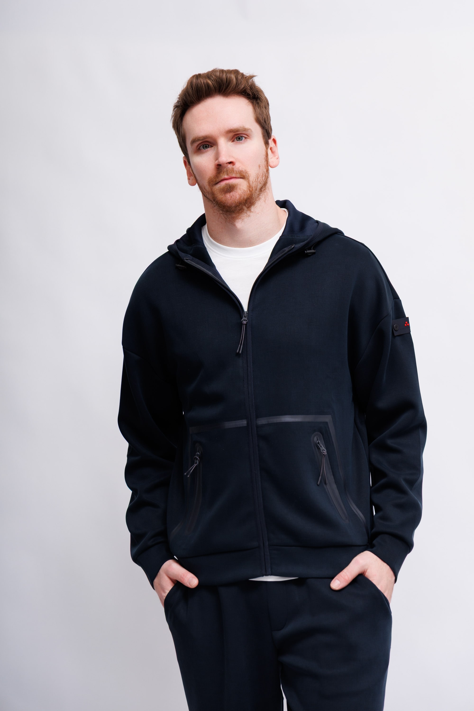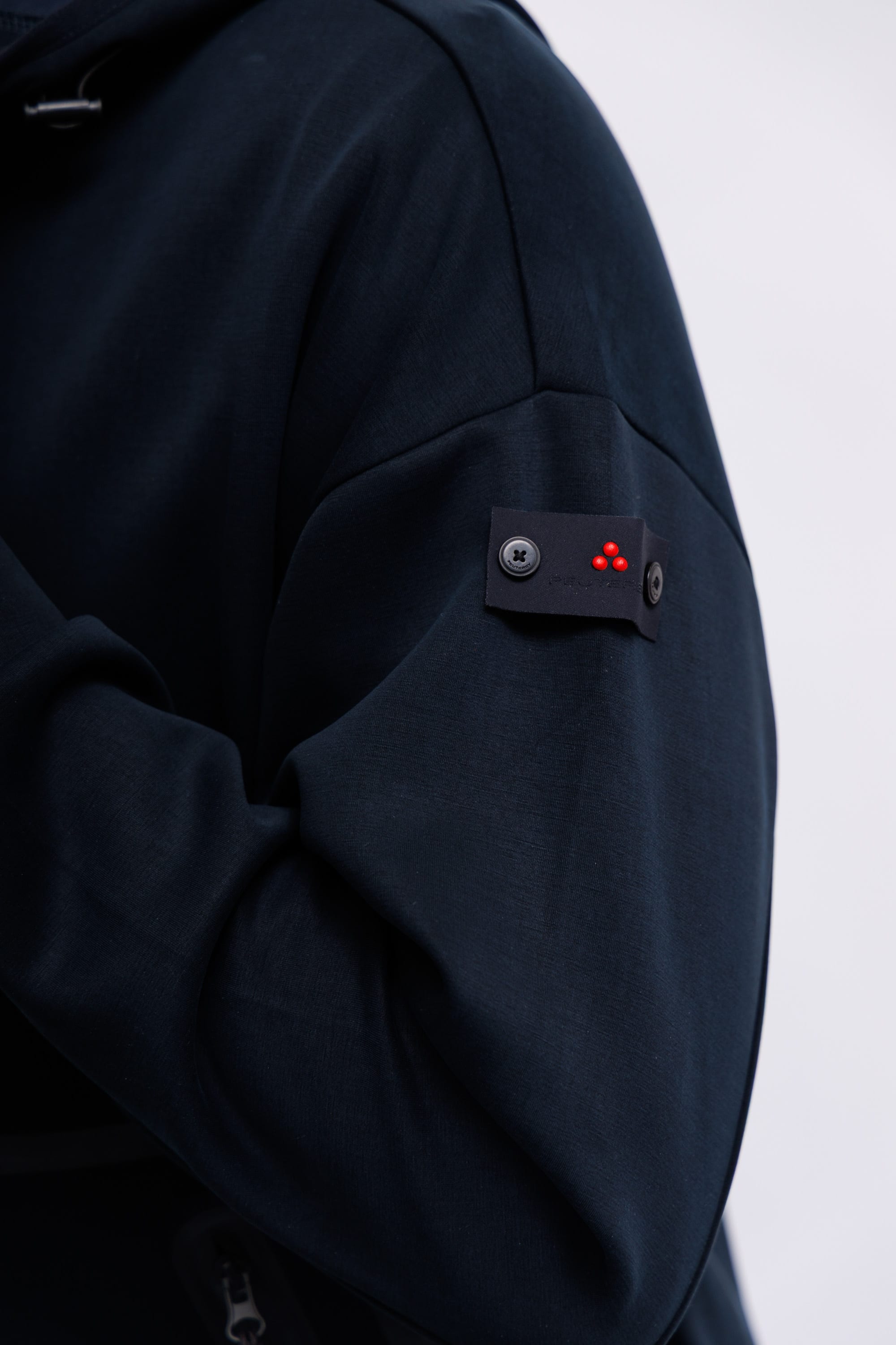 Толстовка с капюшоном из ткани «скуба» — технической ткани с плотной и эластичной текстурой, обеспечивающей комфорт и свободу движений. Дизайн отличается воротником-стойкой, центральной двусторонней молнией и большими боковыми карманами на молнии. Ребристые детали по нижнему краю и манжетам обеспечивают удобную и облегающую посадку. Логотип Peuterey, прикрепленный двумя пуговицами к левому рукаву, ненавязчиво украшает изделие. Практичная и универсальная вещь, которая дополнит любой повседневный образ, придавая ему простоту и стиль.