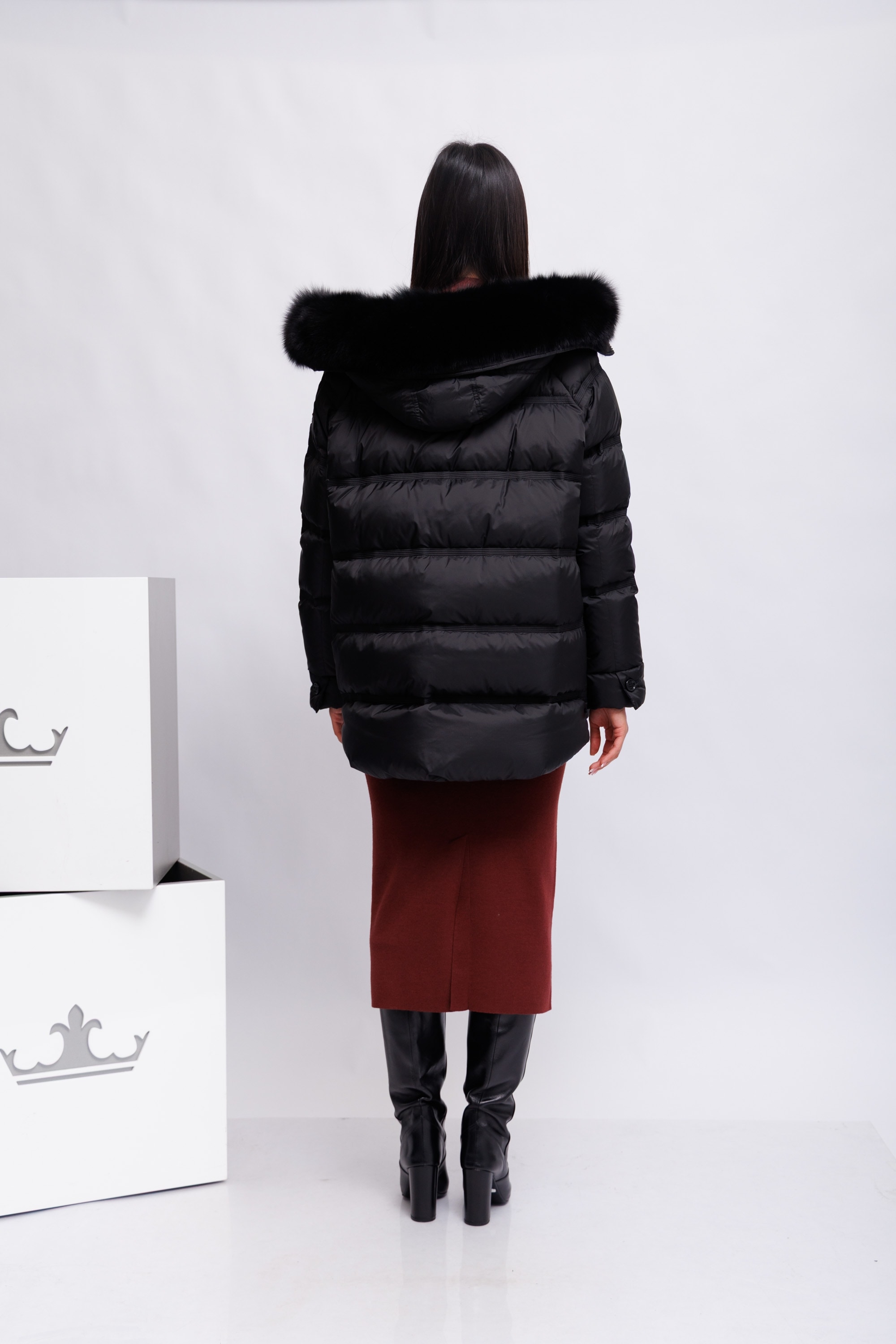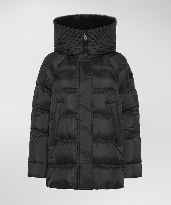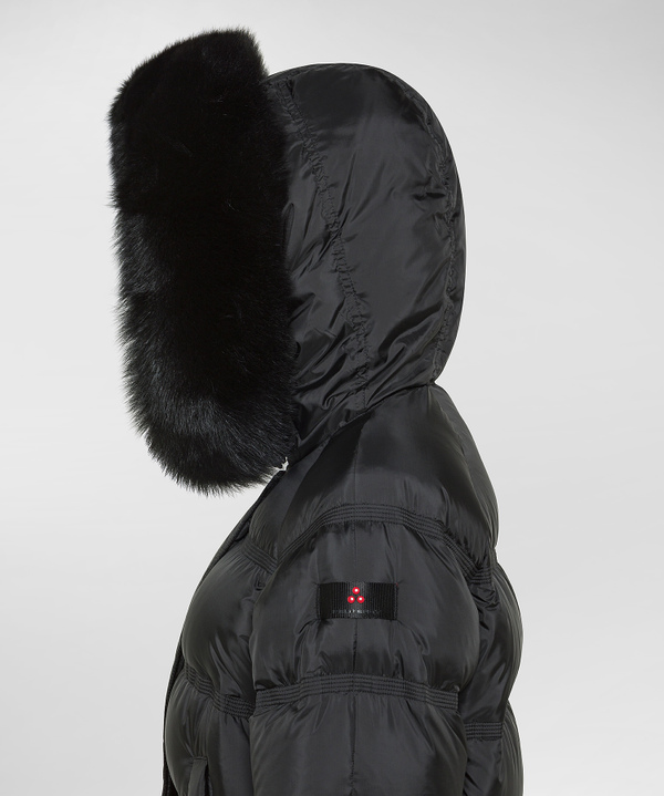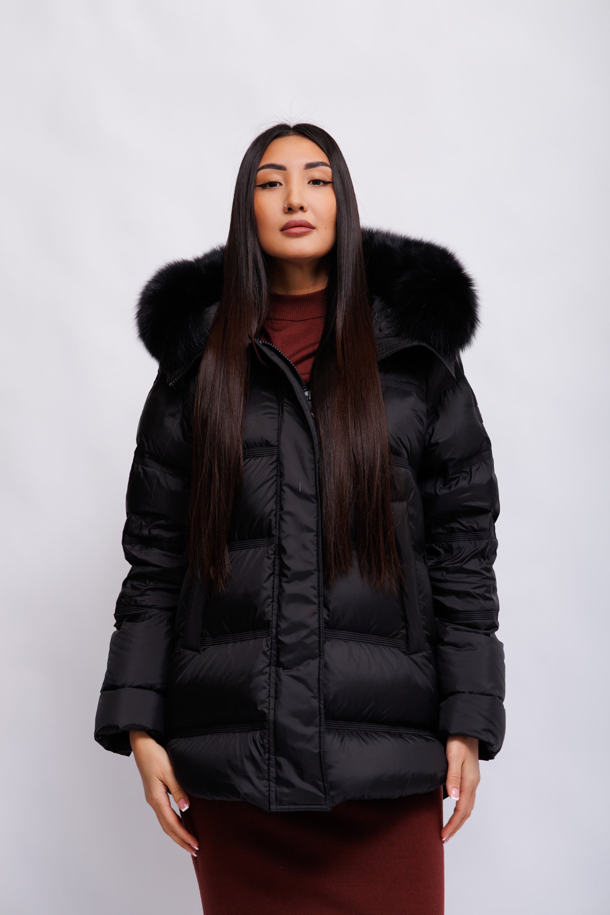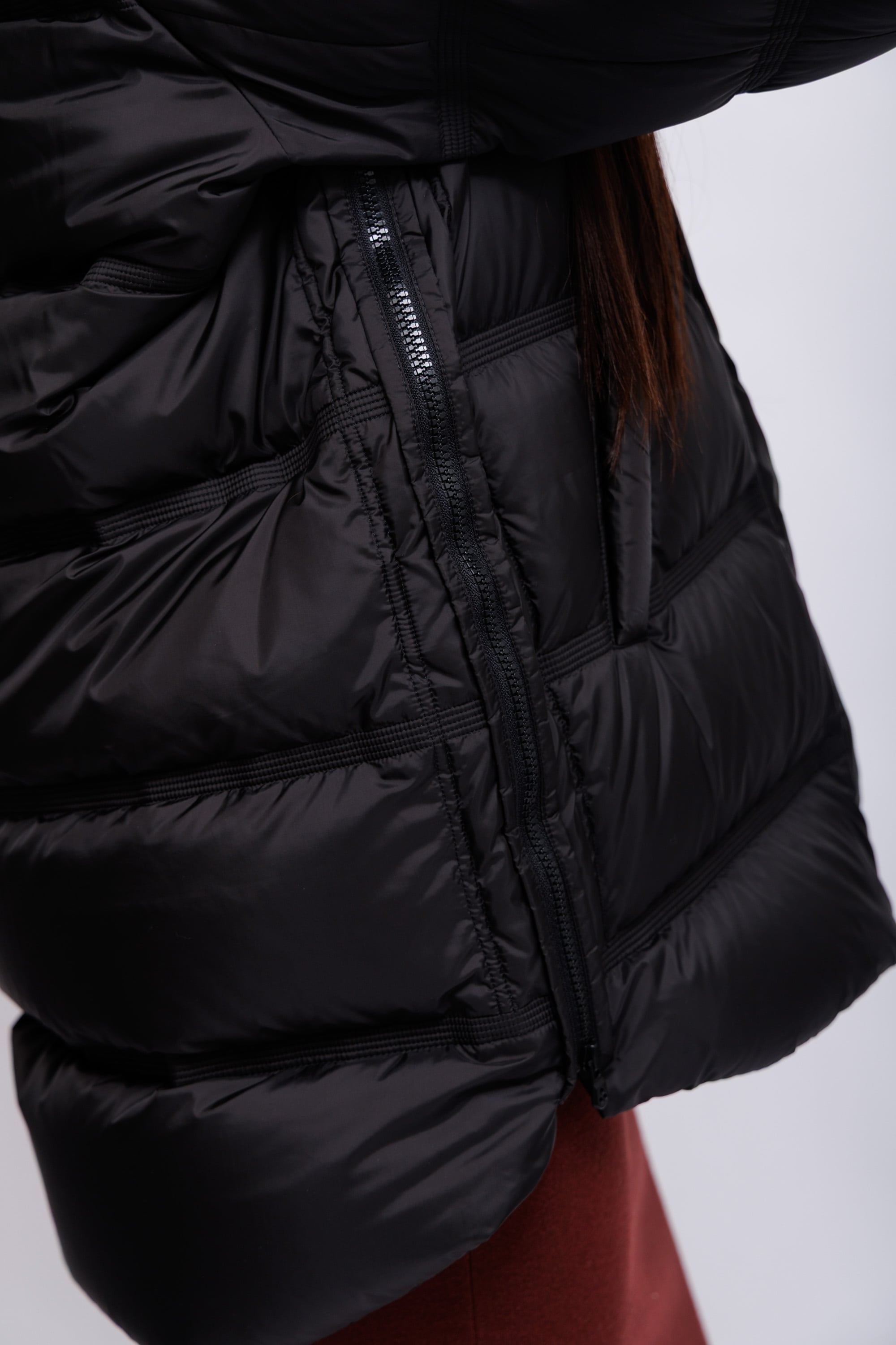 Сверхлёгкая ткань изготовлена из мягкого водоотталкивающего переработанного полиэстера. Наполнение- из натурального переработанного пуха. Вся обработка производится без вредных перфторированных органических соединений(PFC), которые чаще всего используются для придания одежде водоотталкивающих свойств