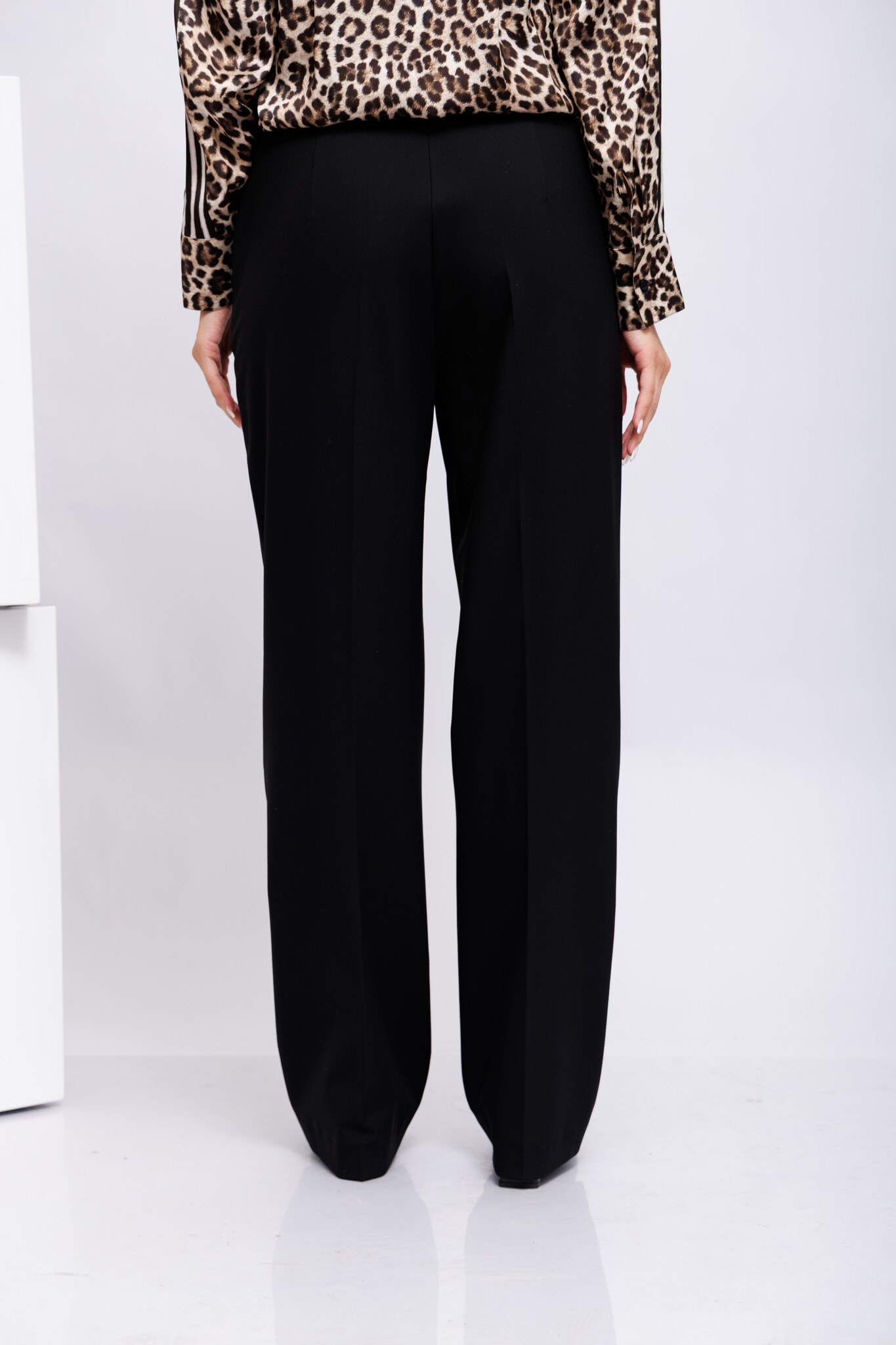 Брюки классические чёрныеКрой прямойПояс со шлевками и отлетными деталями- кокетками с контрастной отделкойГульфик на скрытой молнии и металлическом крючке Косые боковые карманыПолноценная длина