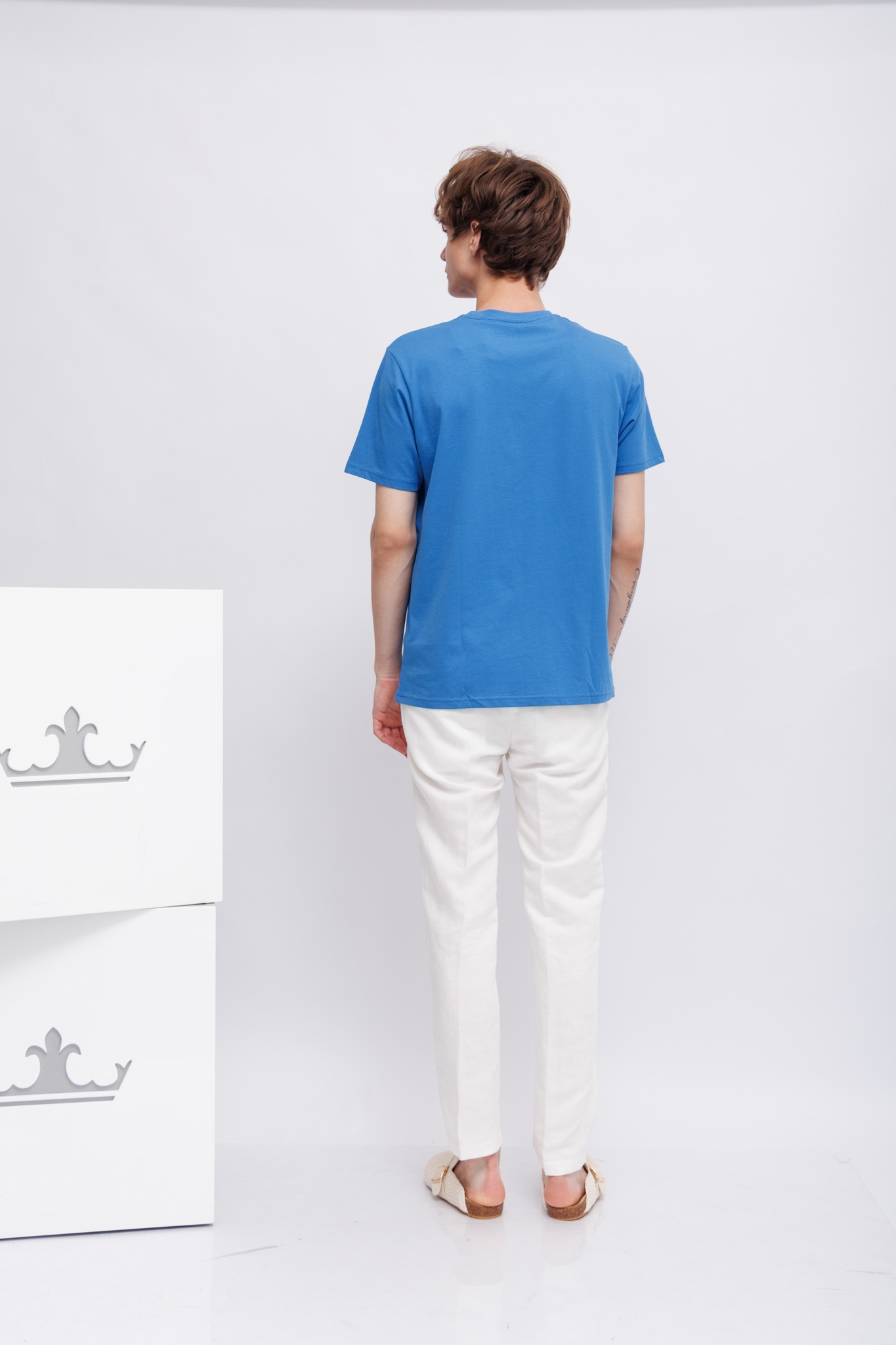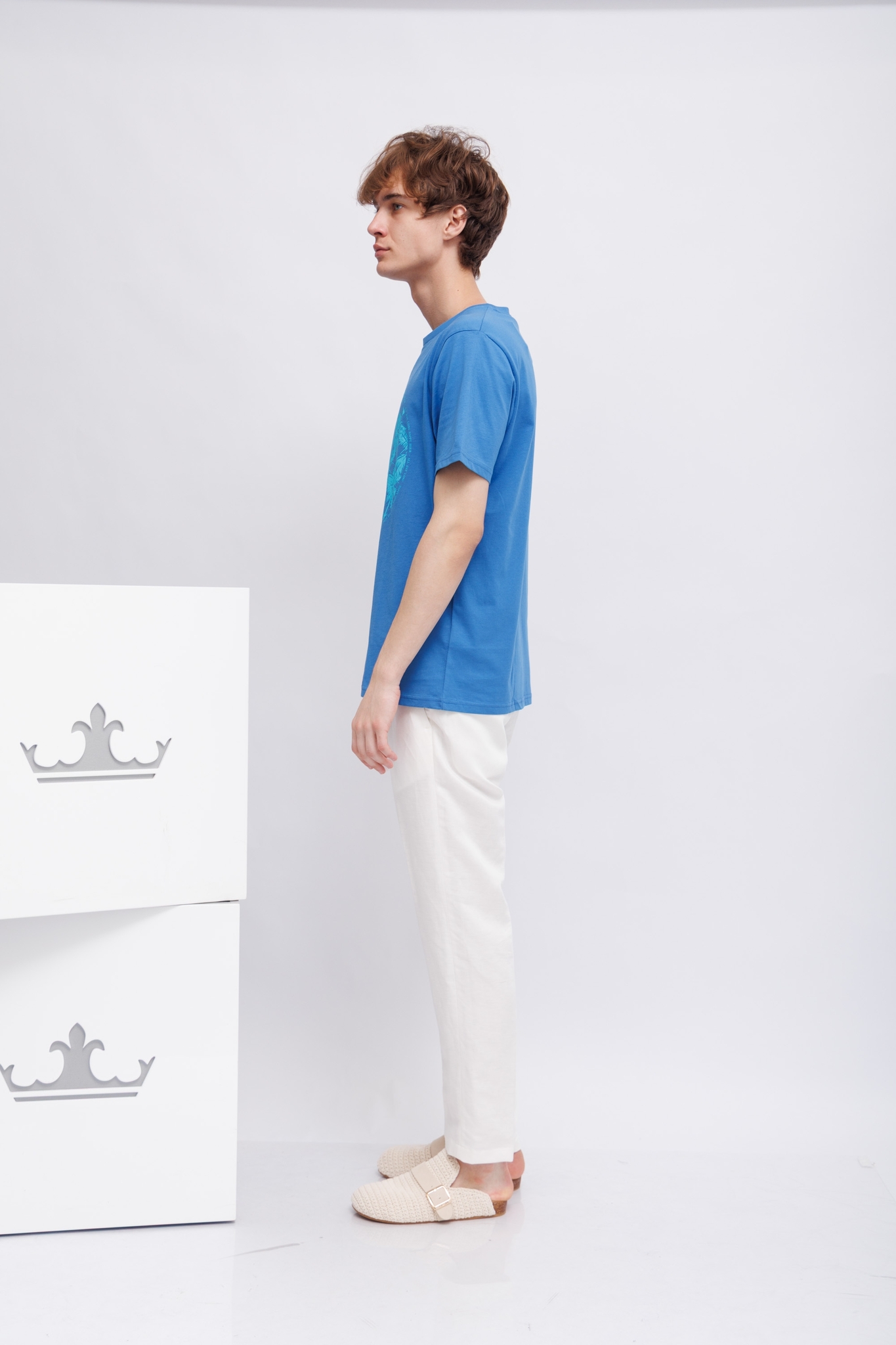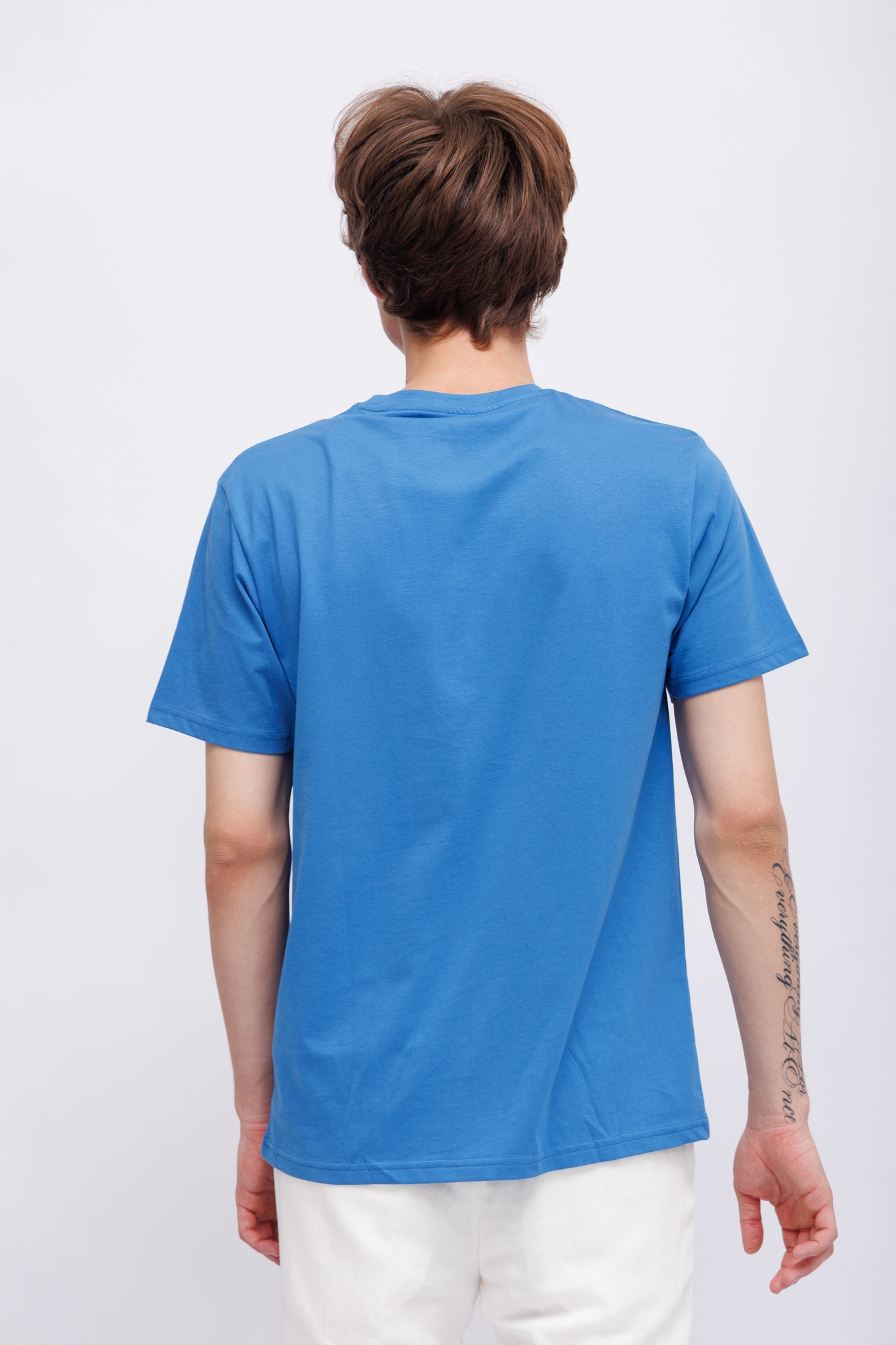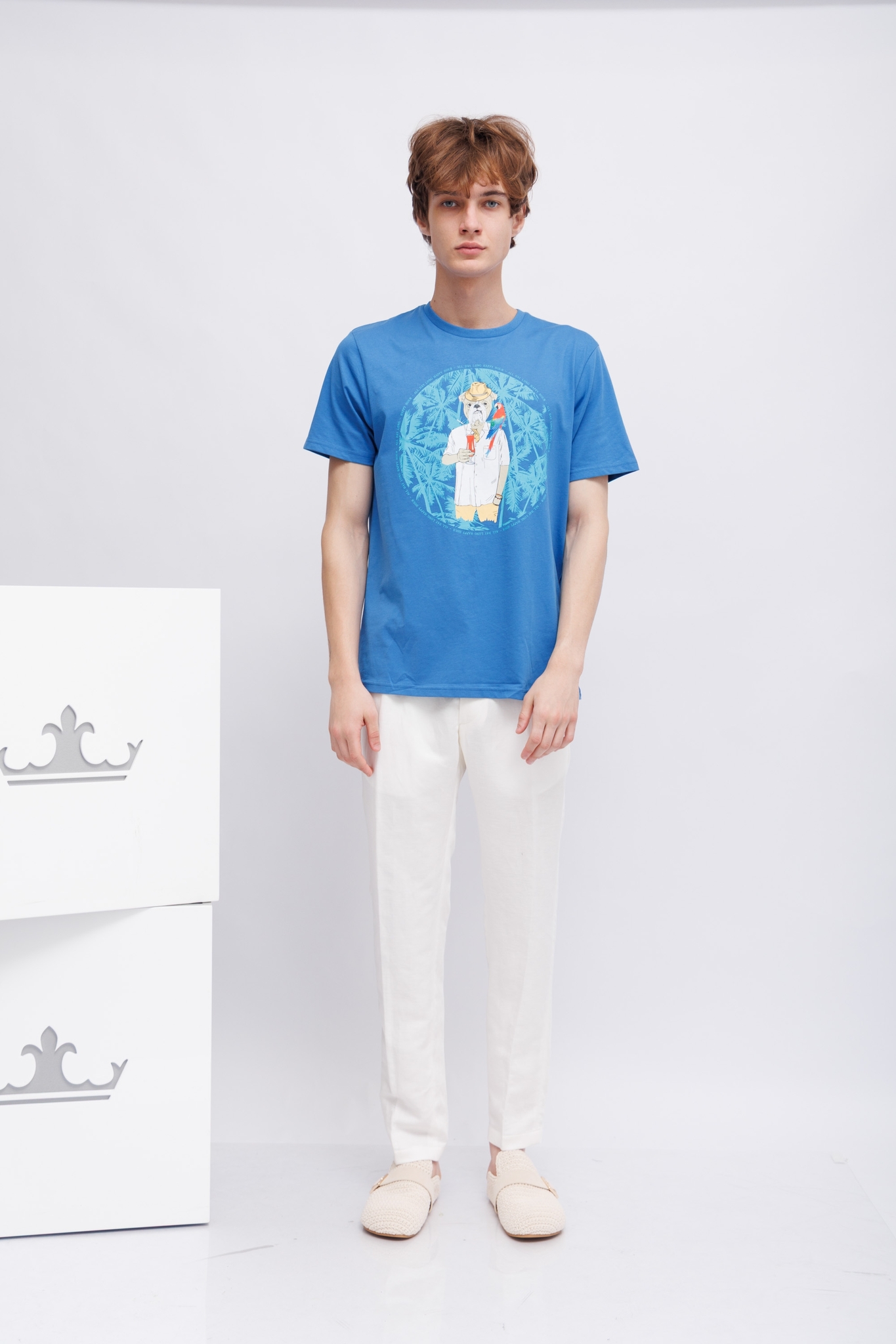 Футболка ярко-синяя с бульдогом-символом марки- на отдыхеКруглый вырезКороткие рукаваПрямой крой