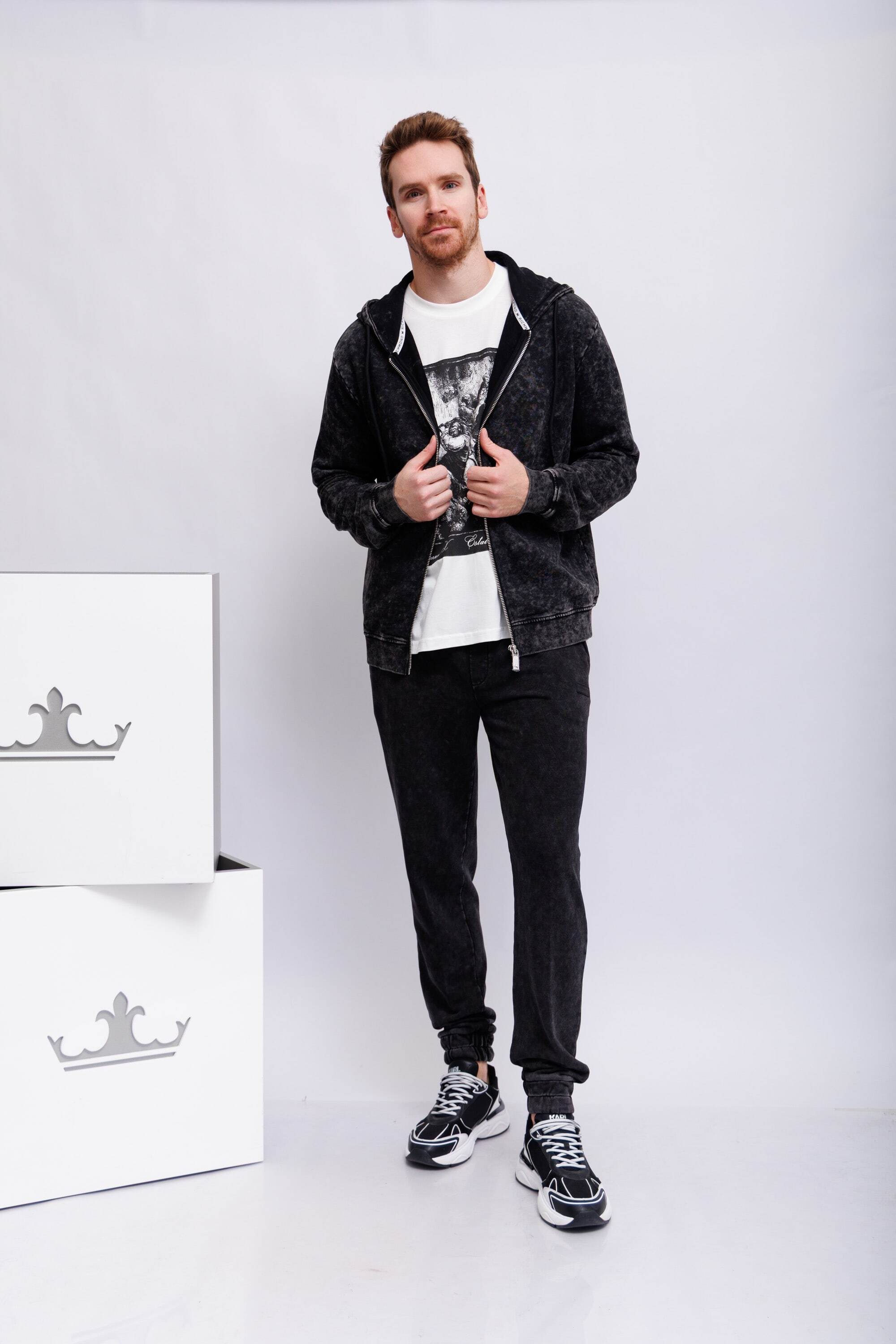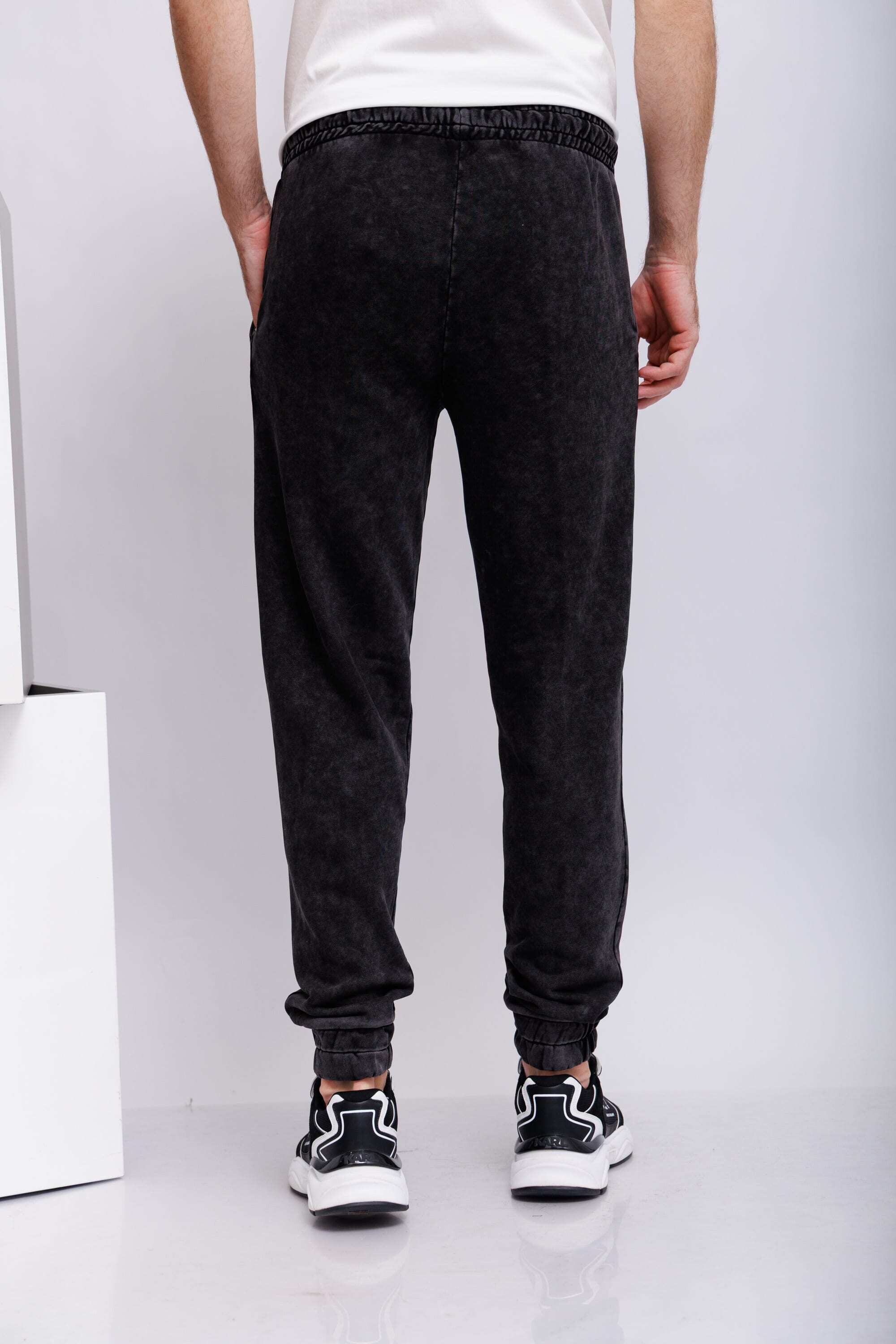Джоггеры черного цвета с винтажным эффектомЭластичный пояс на кулискеКосые боковые карманыНиз брючин- трикотажные манжеты