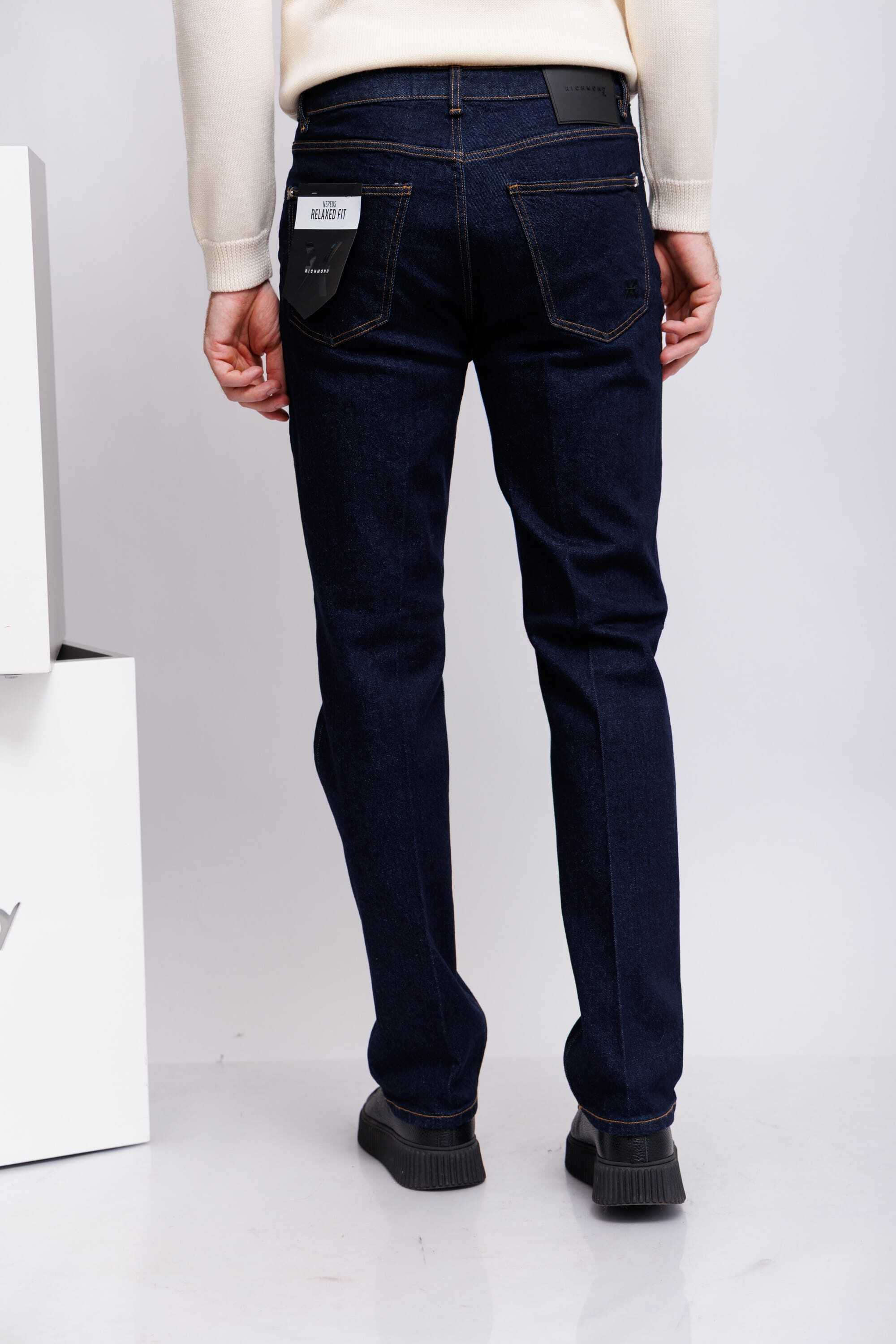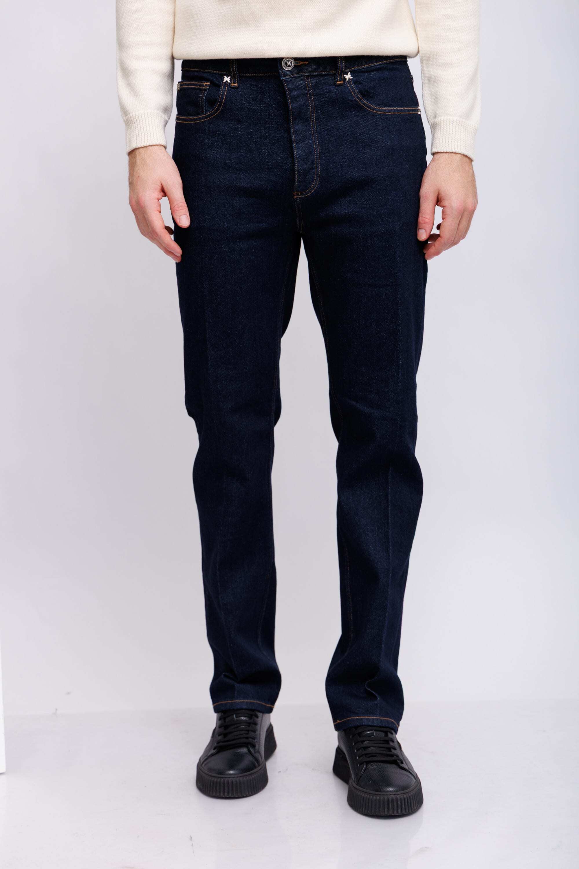 Джинсы на болтахТёмно-синиеМодель "5 карманов"Гульфик на болтах с декоративной отделкой в виде логотиповРасслабленный кройОтстрочка контрастная
