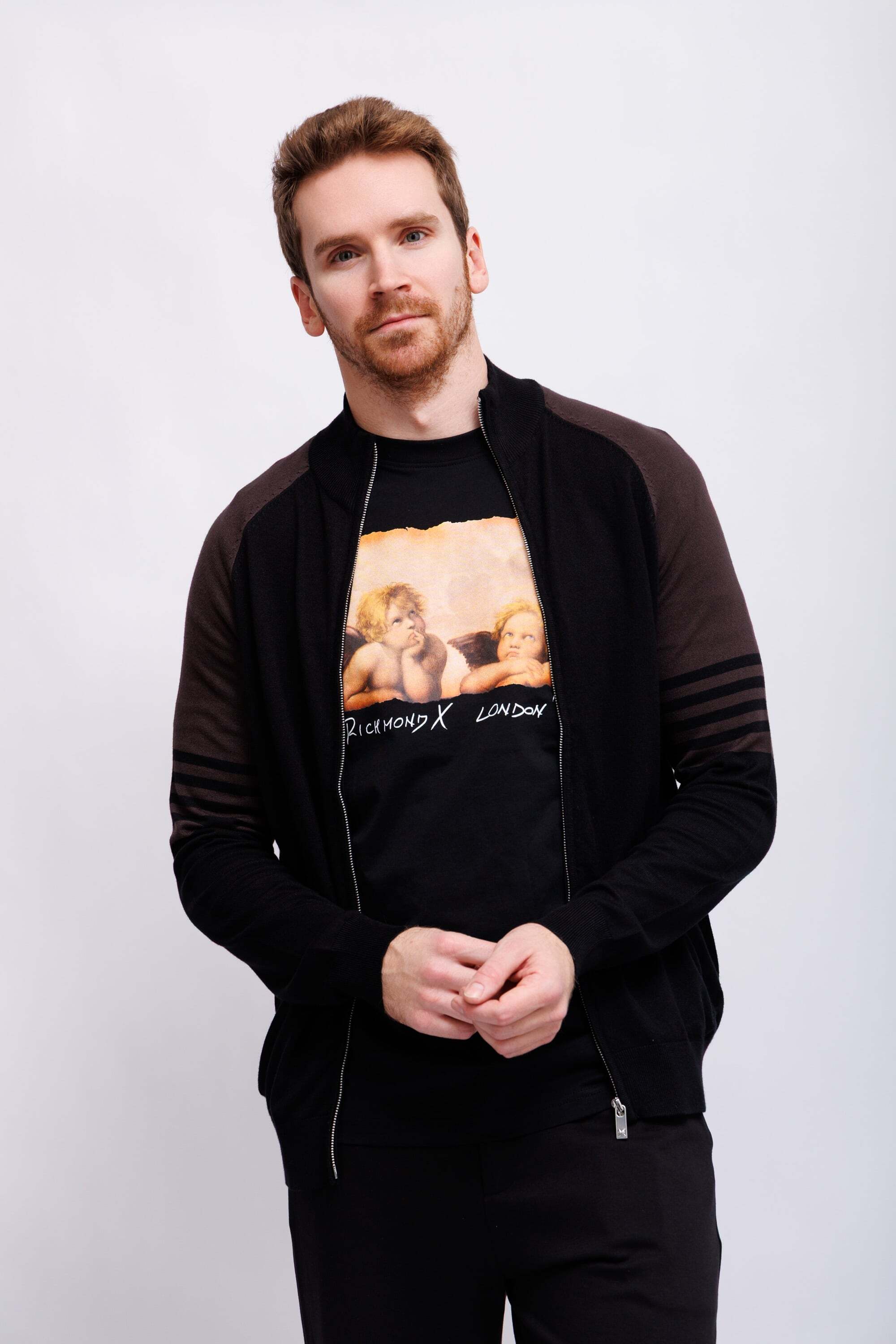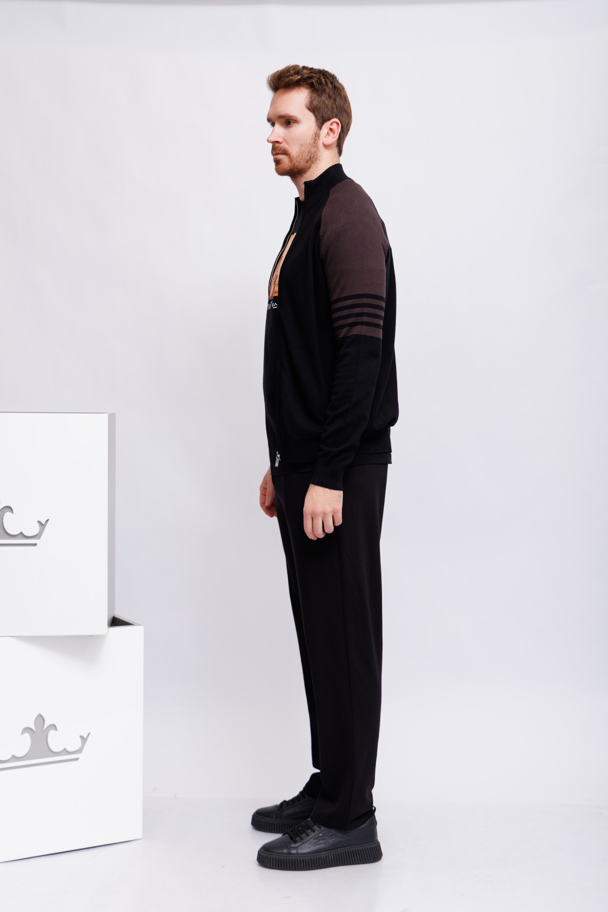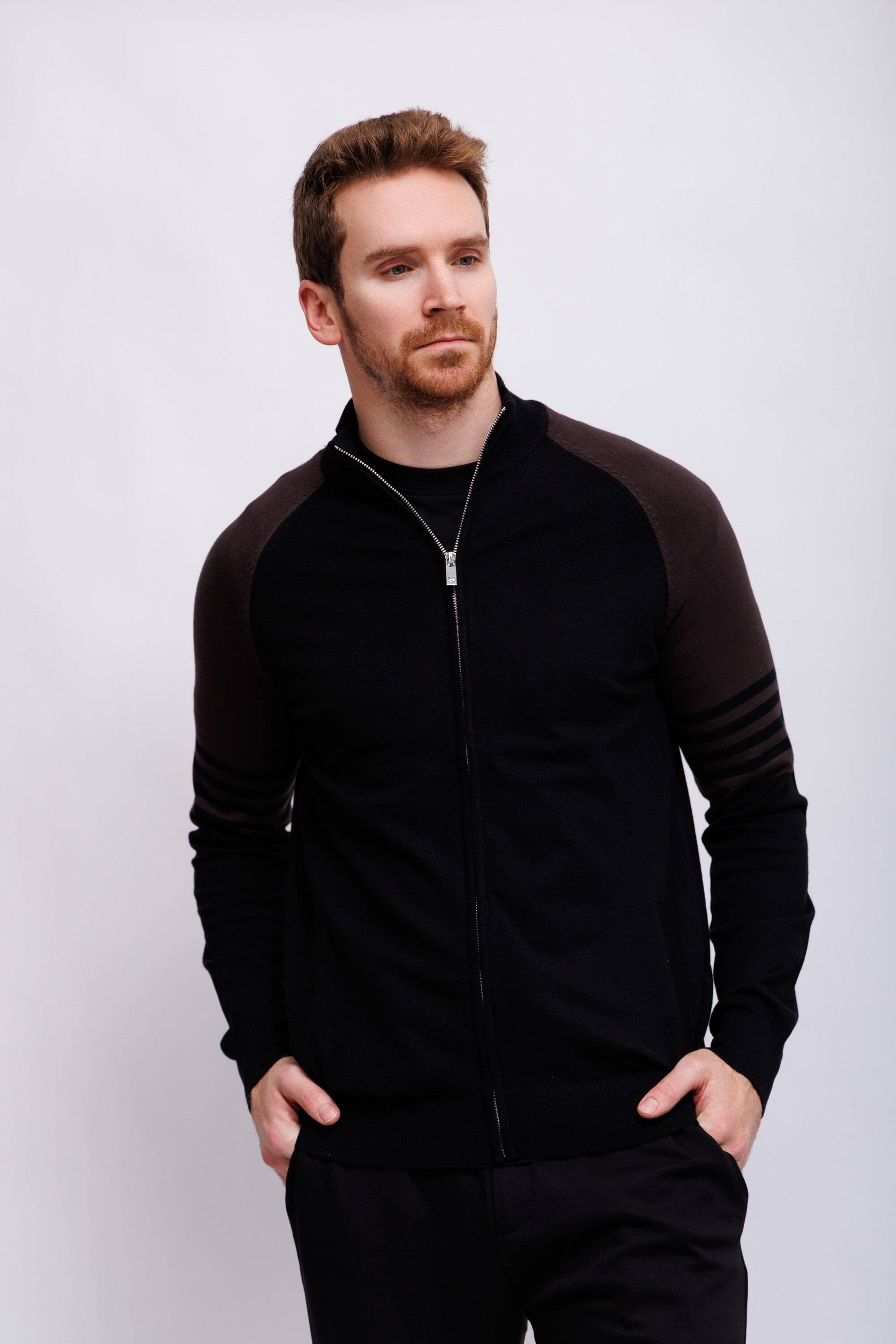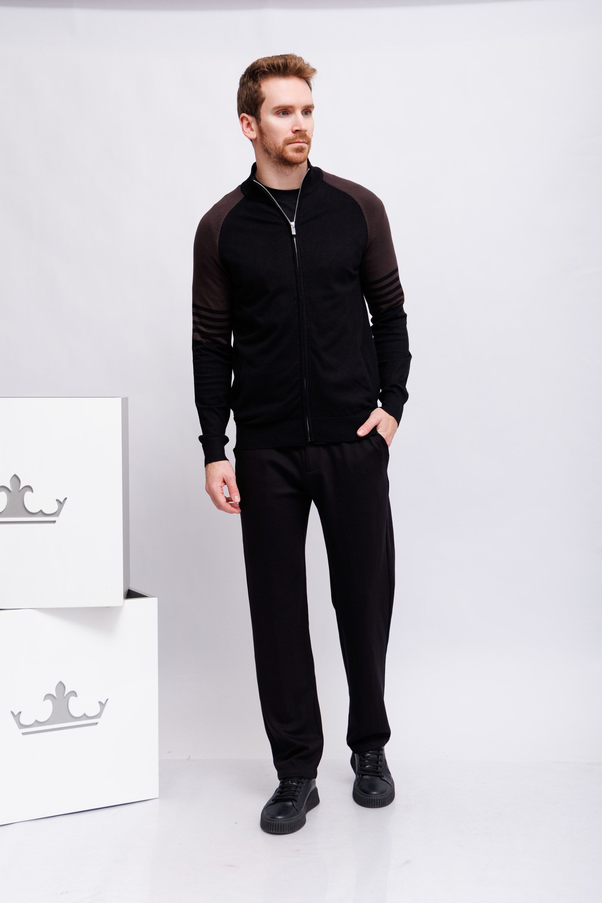 Кардиган с контрастной отделкойВорот-стойкаИзделие на молнииДлинные рукаваПрямой крой