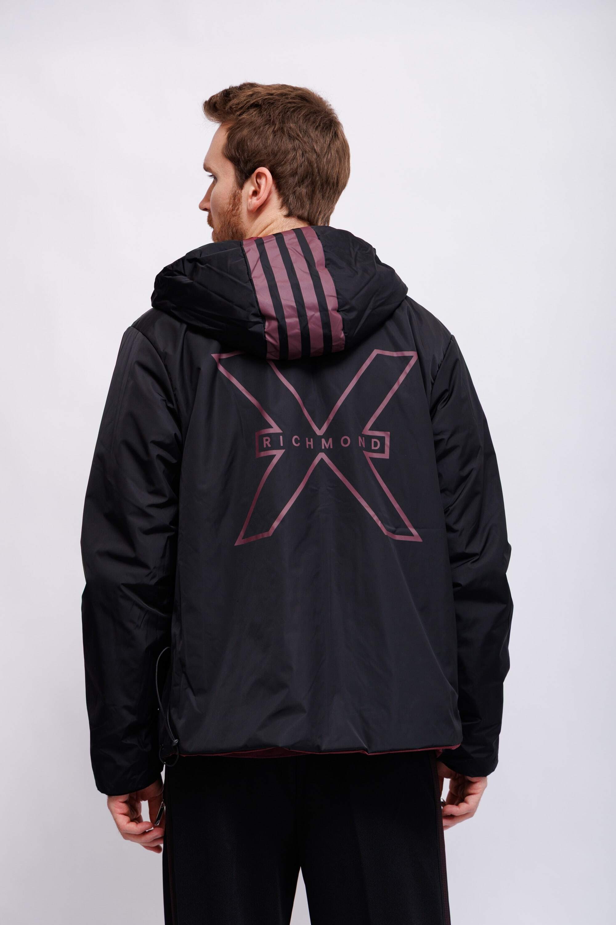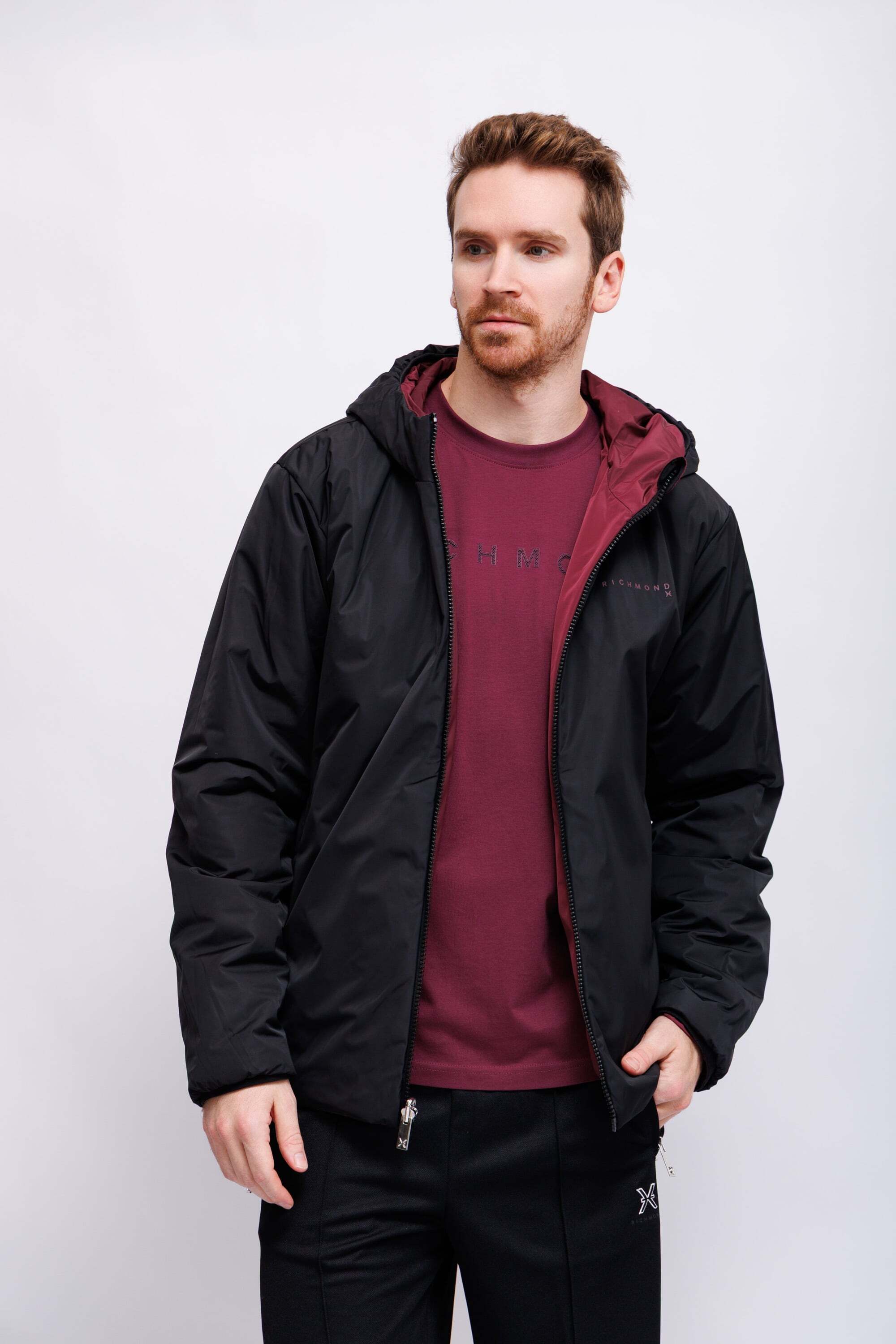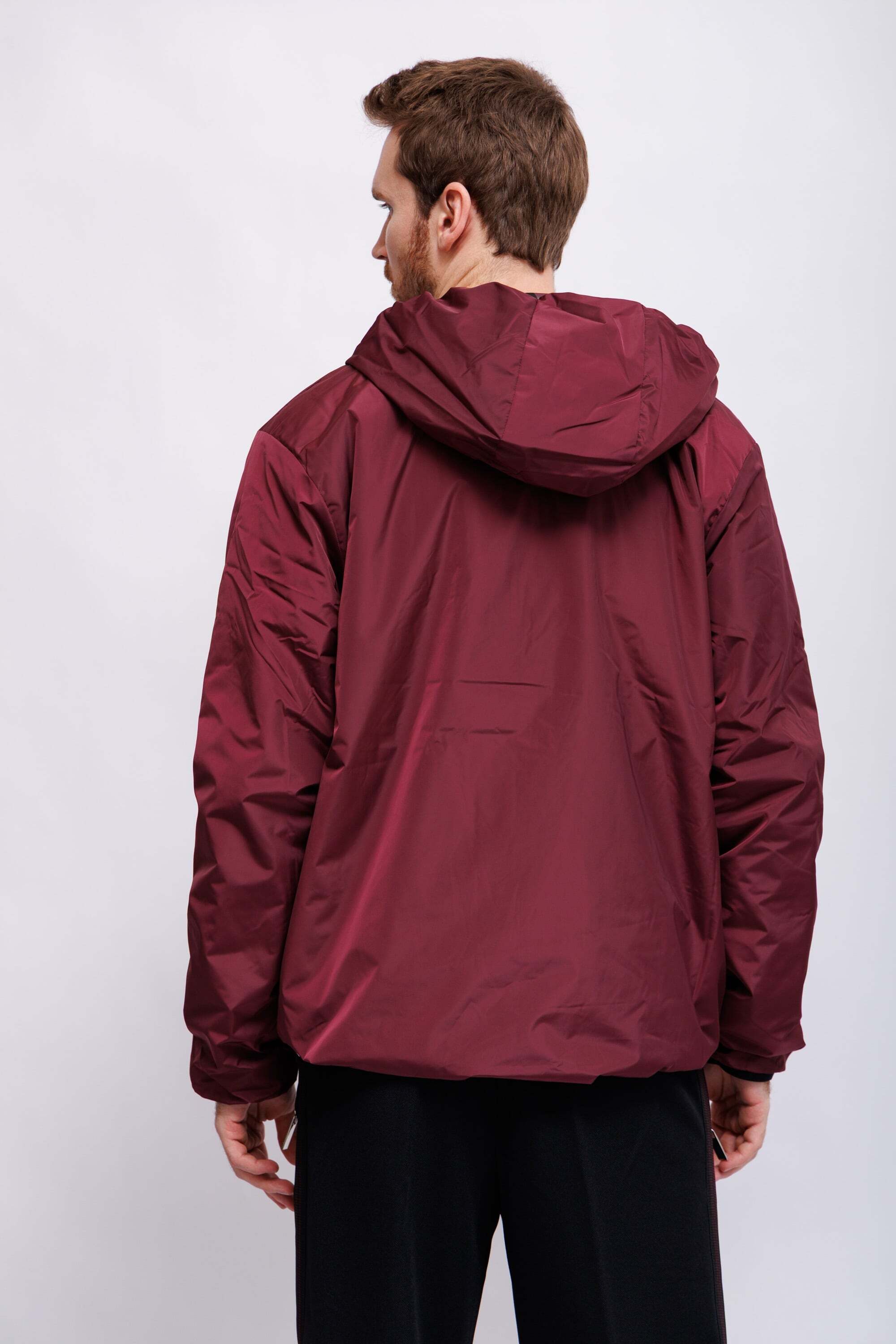 Куртка двухсторонняя утепленнаяС одной стороны -марсала;с другой стороны- чёрная с бордовой отделкой и логоКапюшонВорот-стойкаИзделие на молнииДлинные рукава Крой расслабленныйКарманы -листочки на кнопках