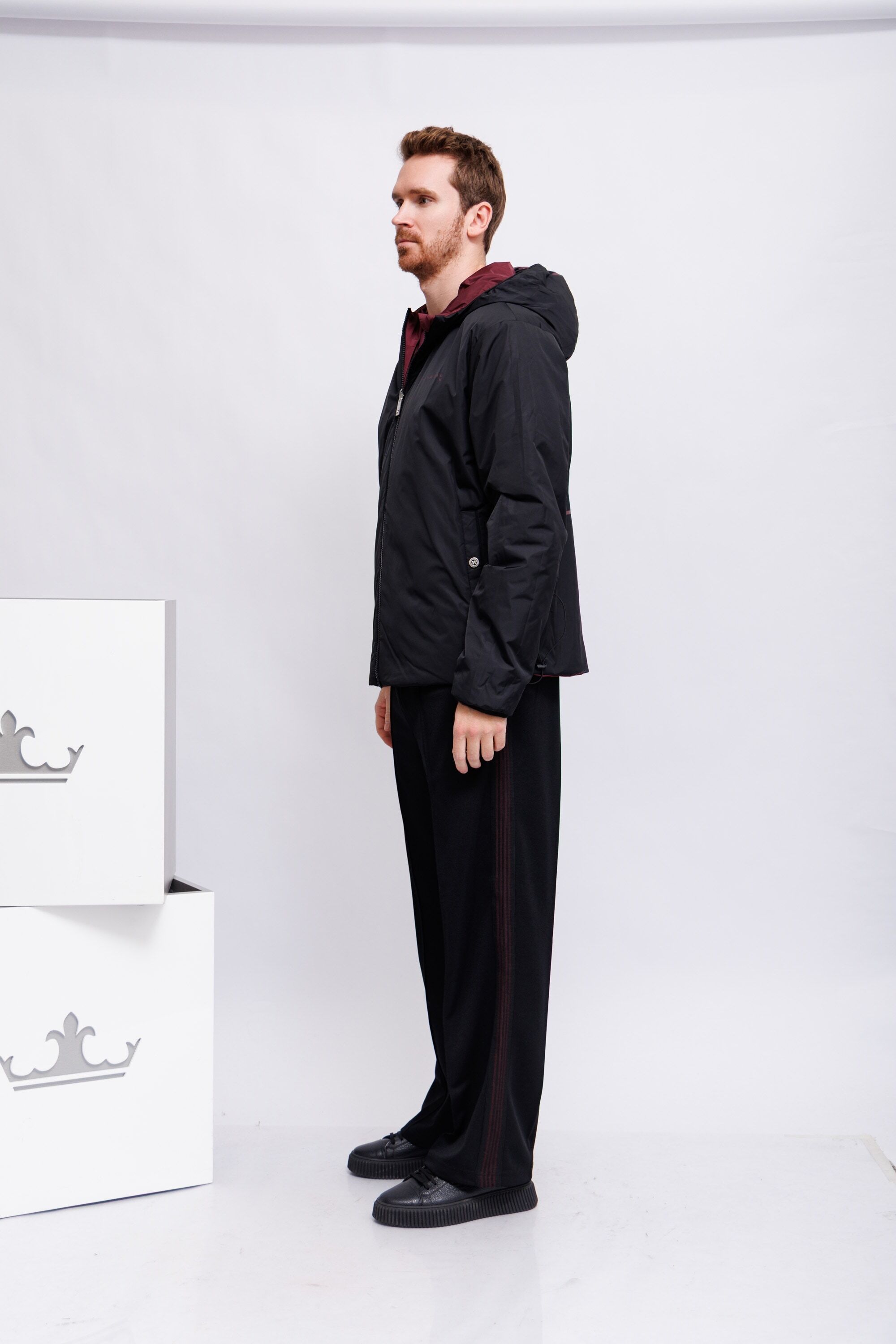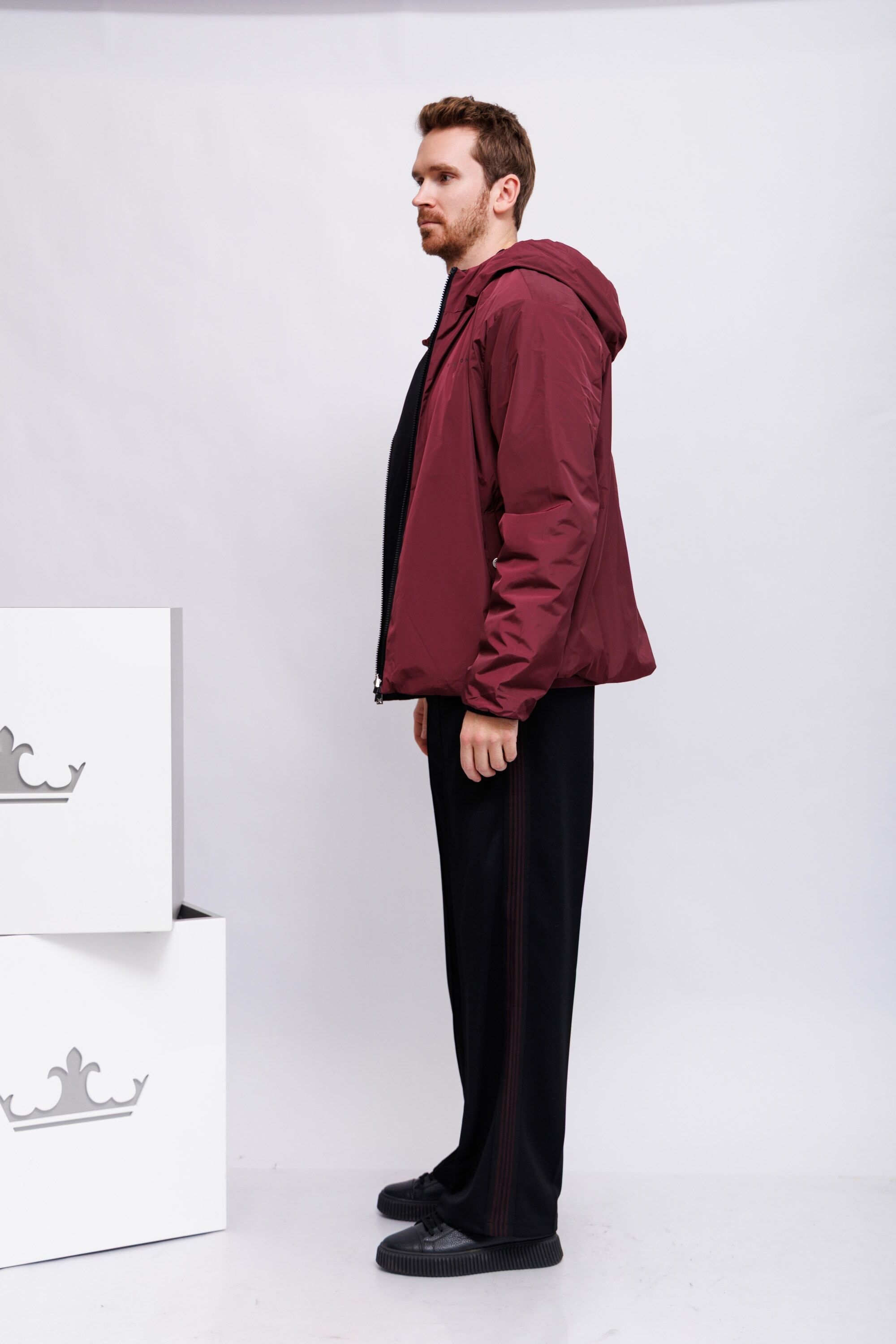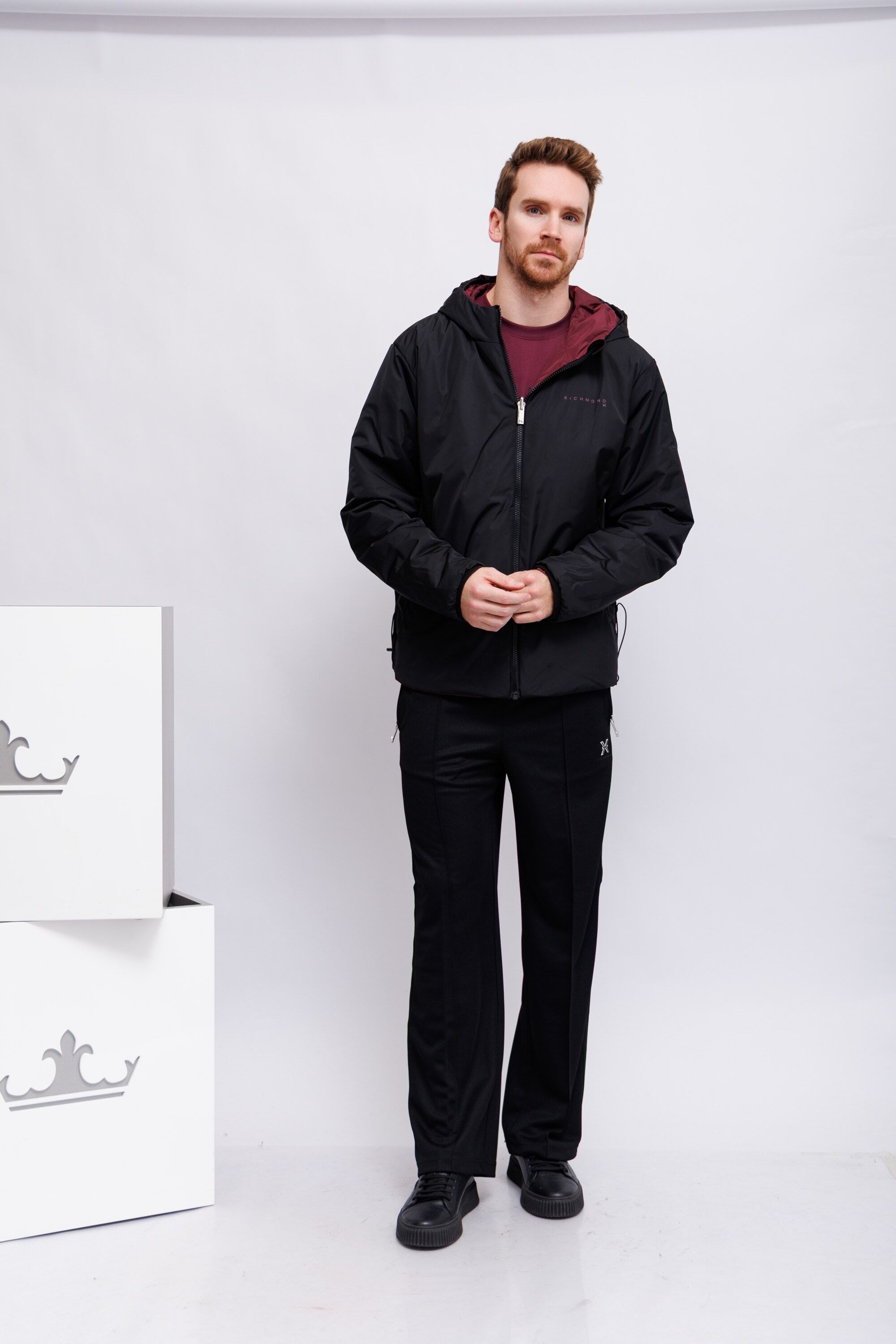 Куртка двухсторонняя утепленнаяС одной стороны -марсала;с другой стороны- чёрная с бордовой отделкой и логоКапюшонВорот-стойкаИзделие на молнииДлинные рукава Крой расслабленныйКарманы -листочки на кнопках