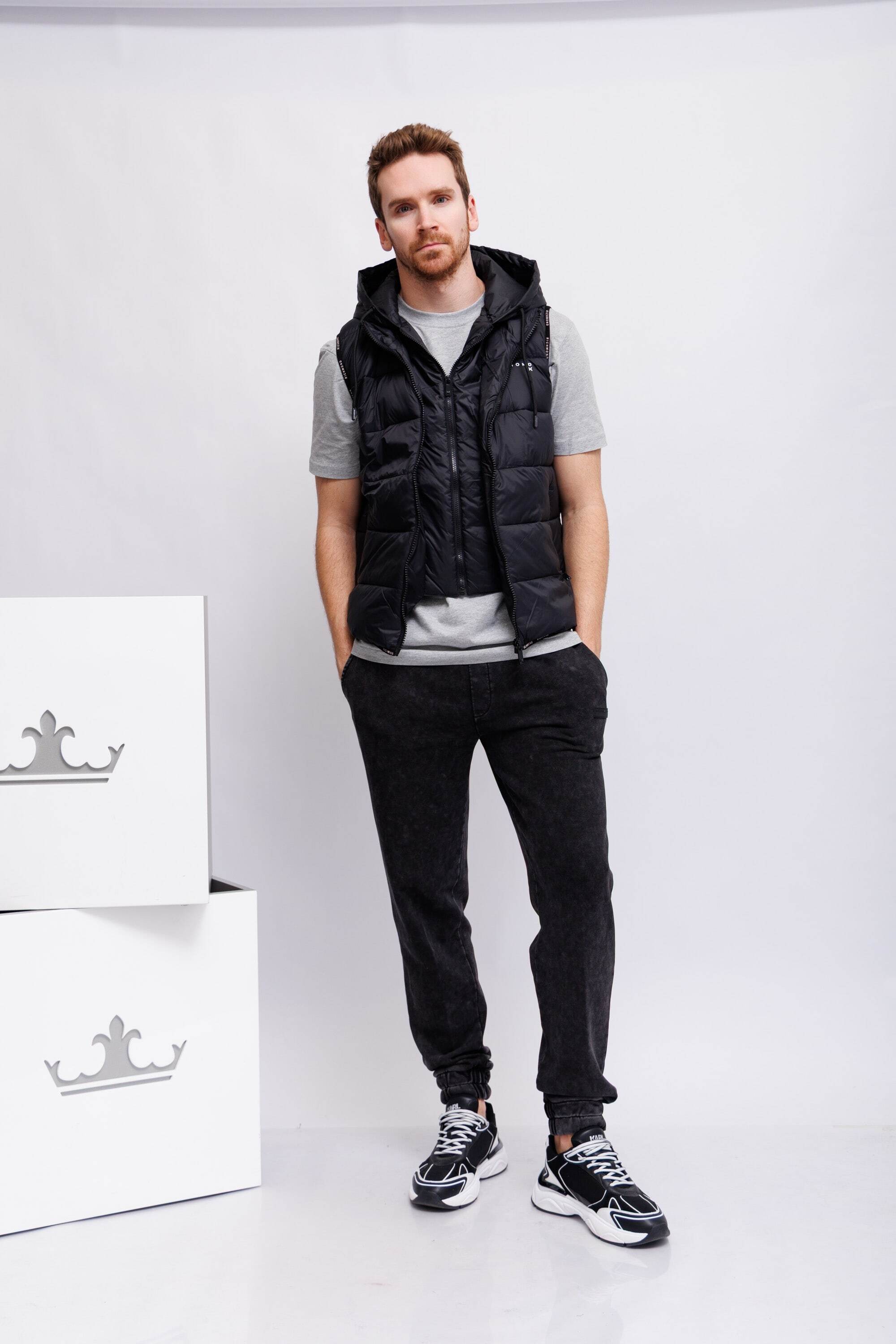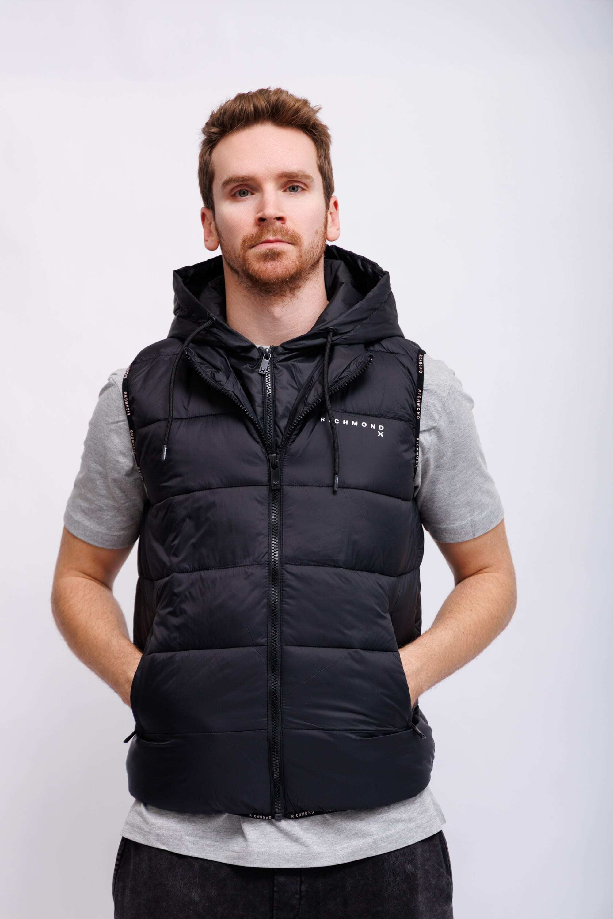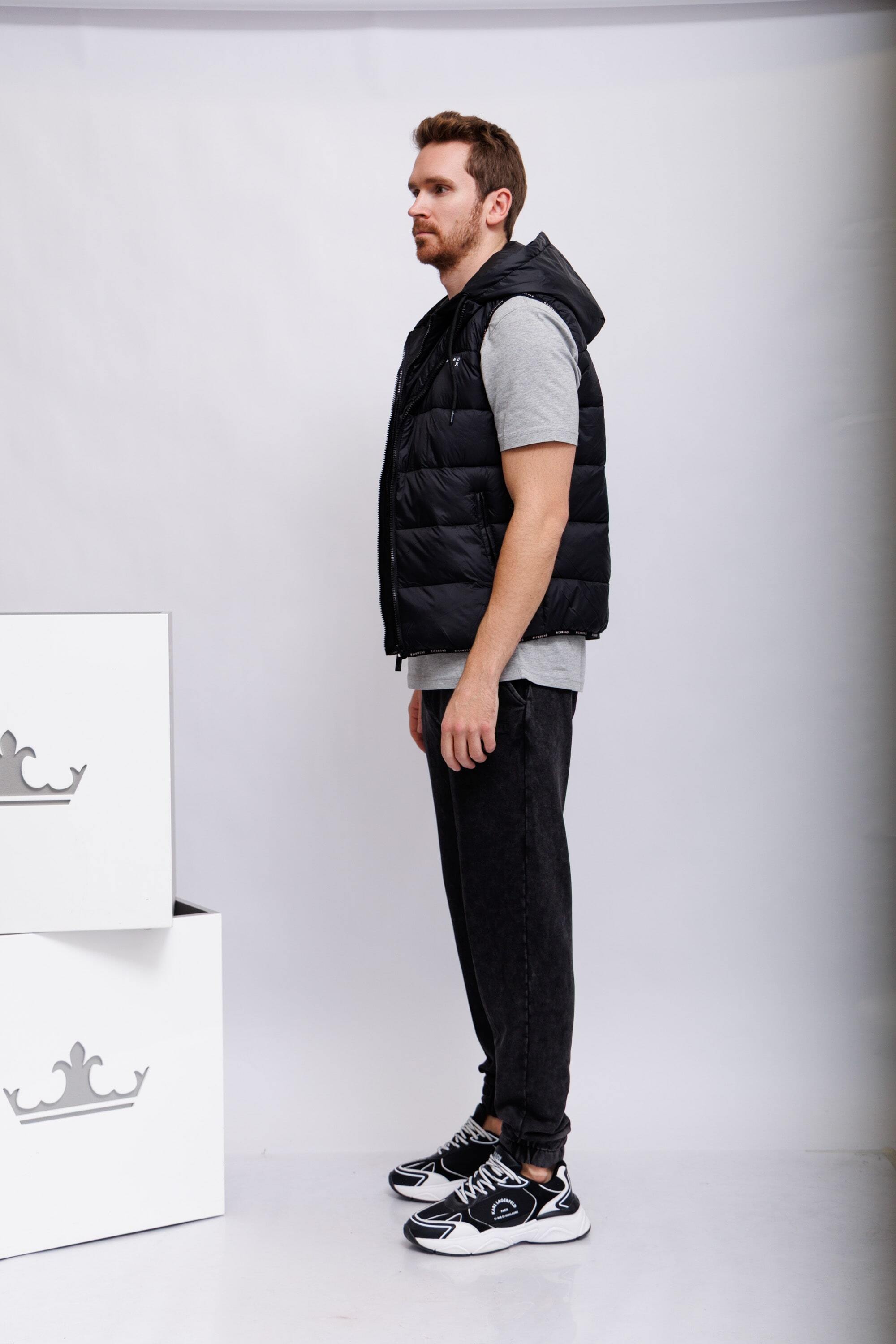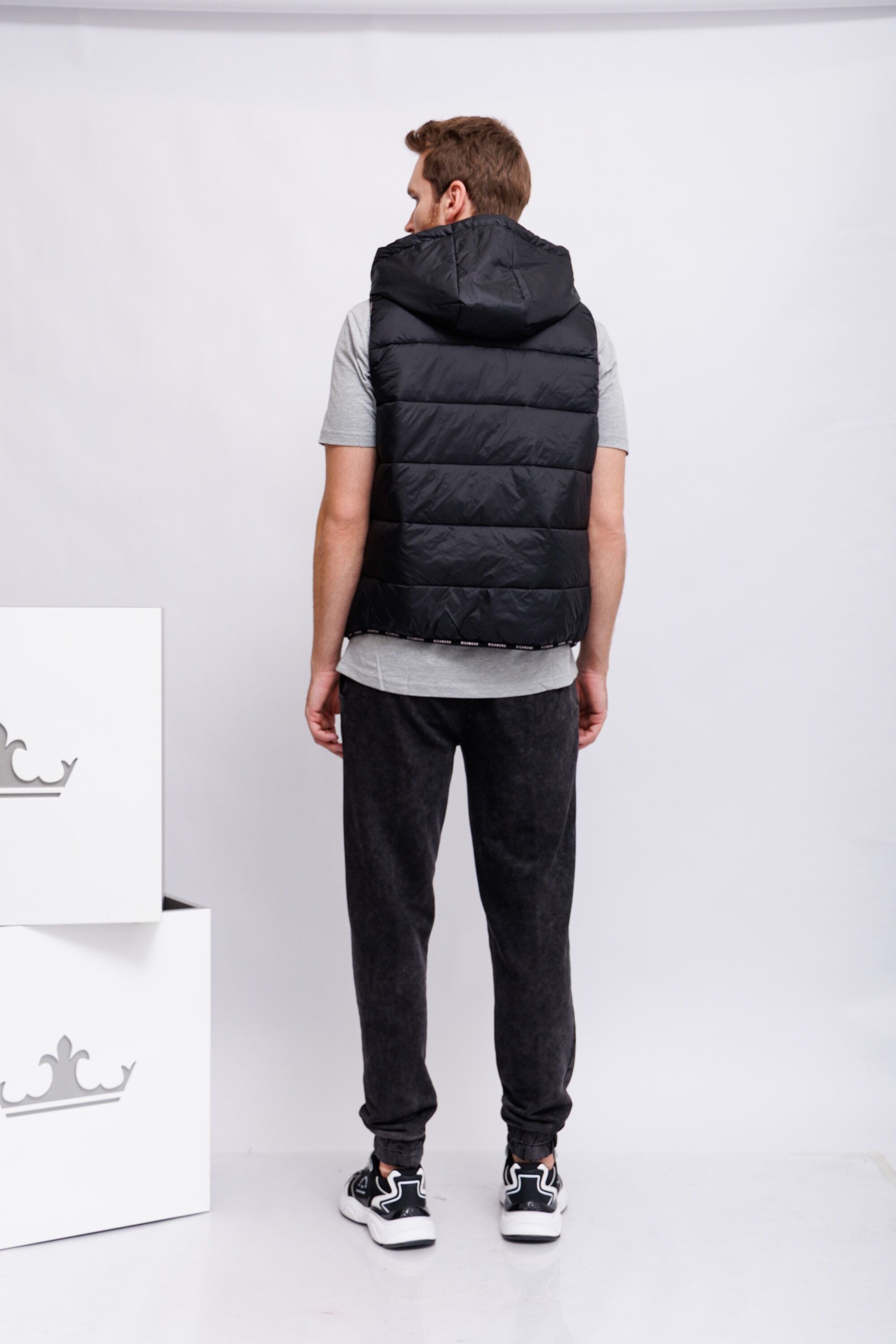 Жилет утепленный стеганый с дополнительной манишкойЧёрный цвет с контрастной отделкой и логотипамиВорот-стойкаИзделие на молнииВнутри- дополнительная манишка на молнииКарманы на молнииКрой прямой