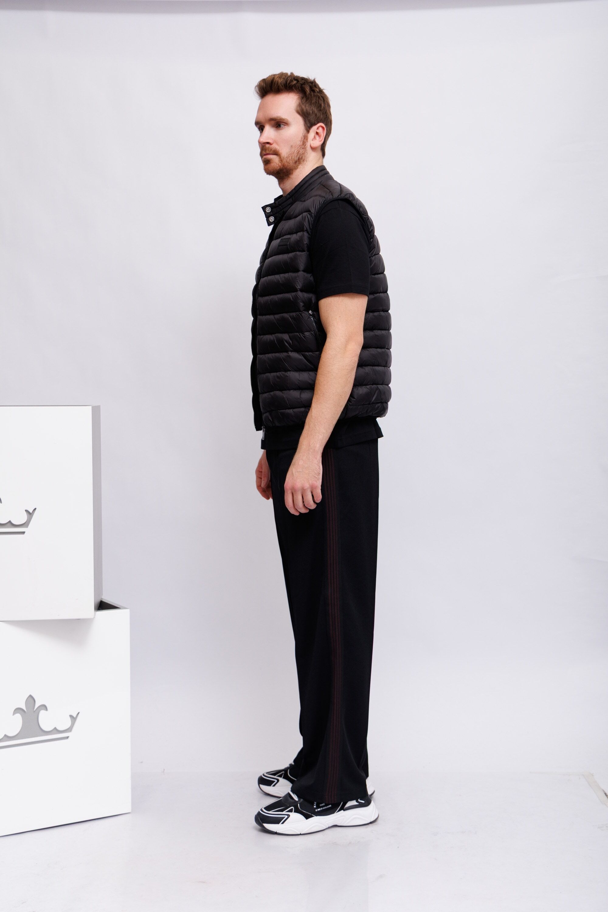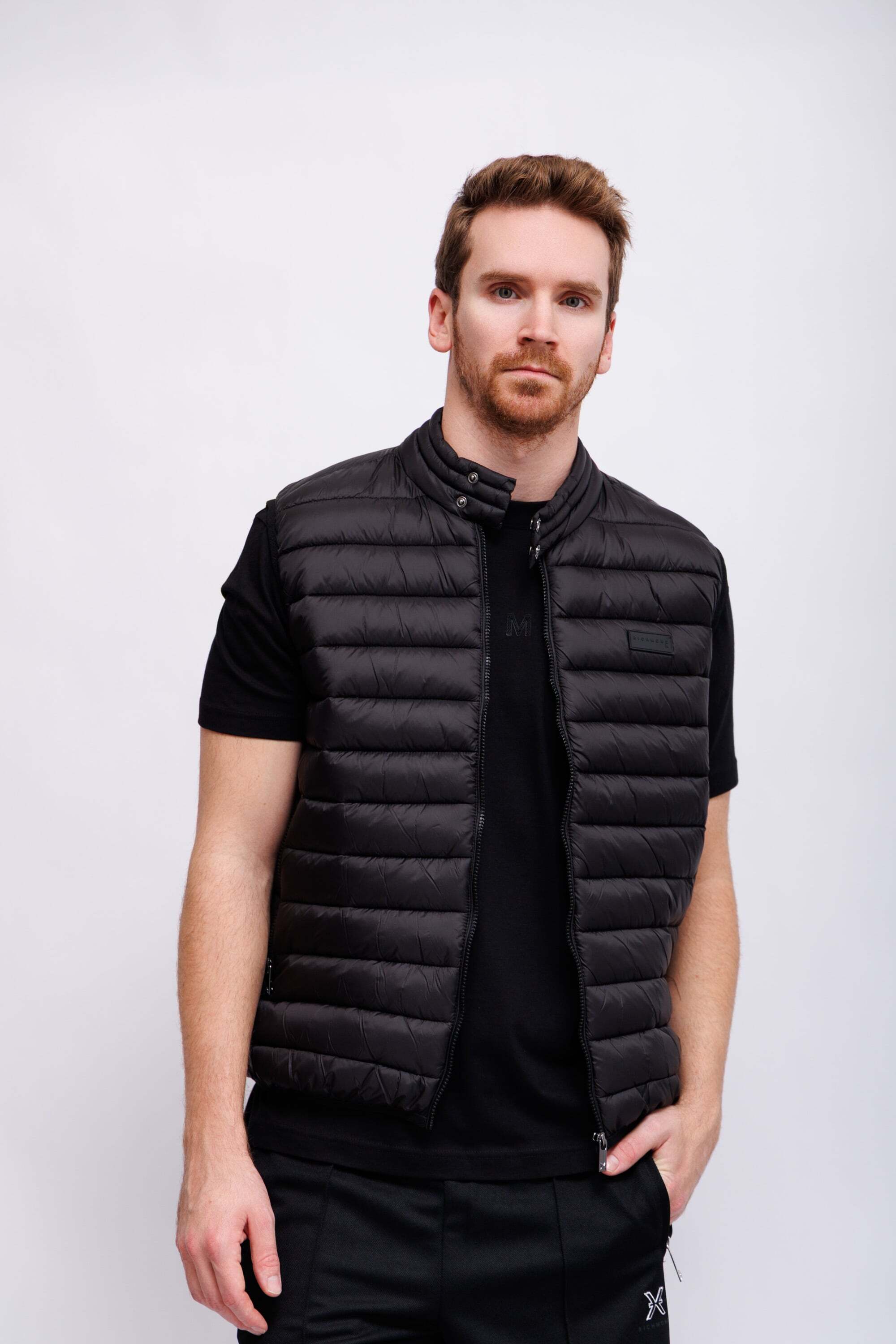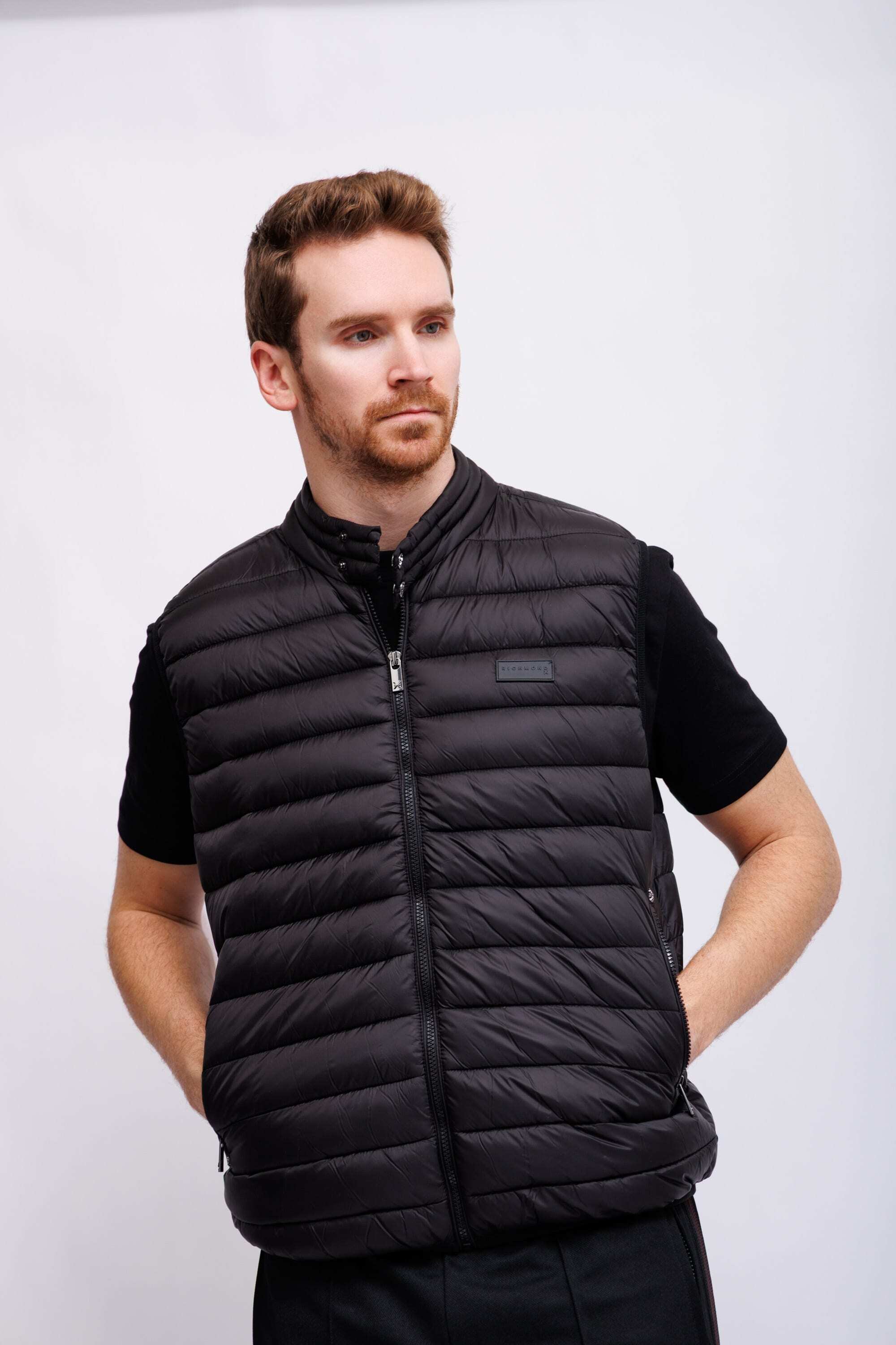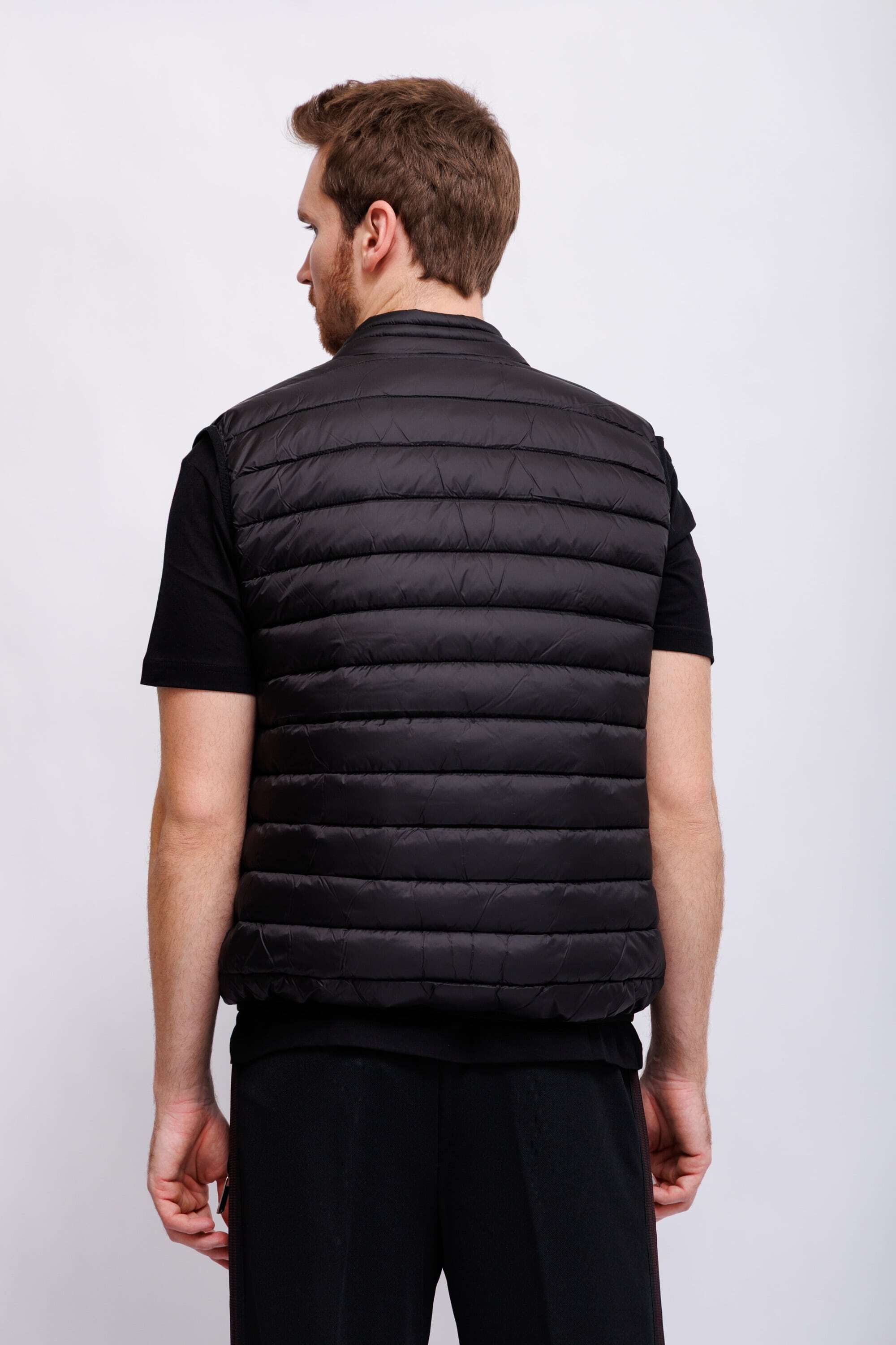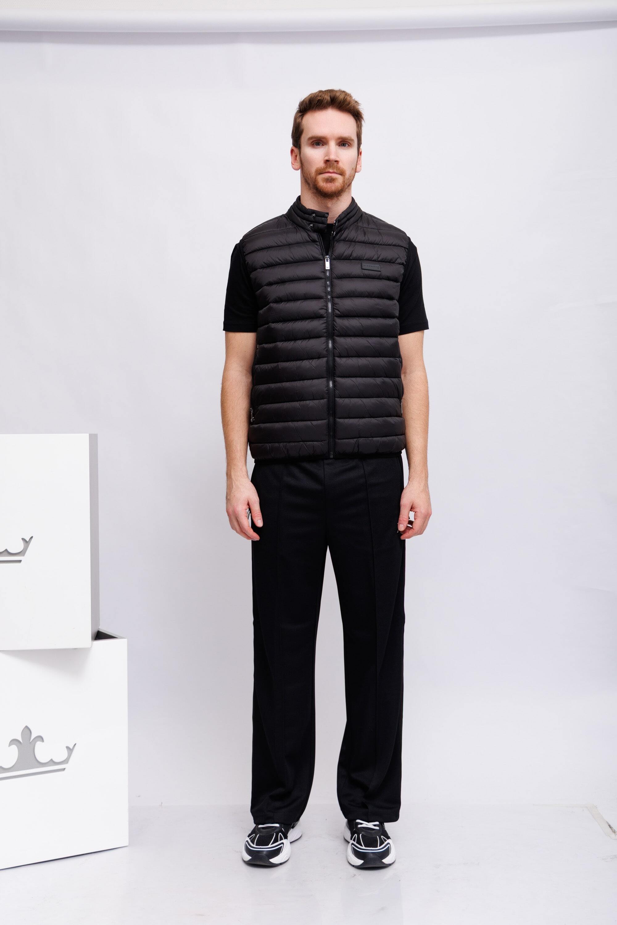 Жилет утепленный стеганыйЧёрный цветВорот-стойка на кнопкахИзделие на молнииКарманы на молнияхКрой прямой
