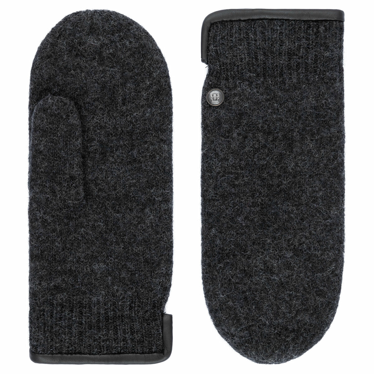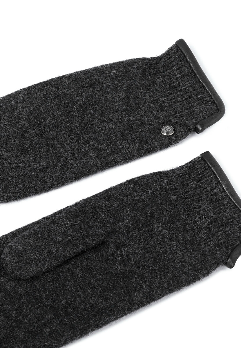 Шерстяные варежки темно -серого цвета с кожаной отделкой