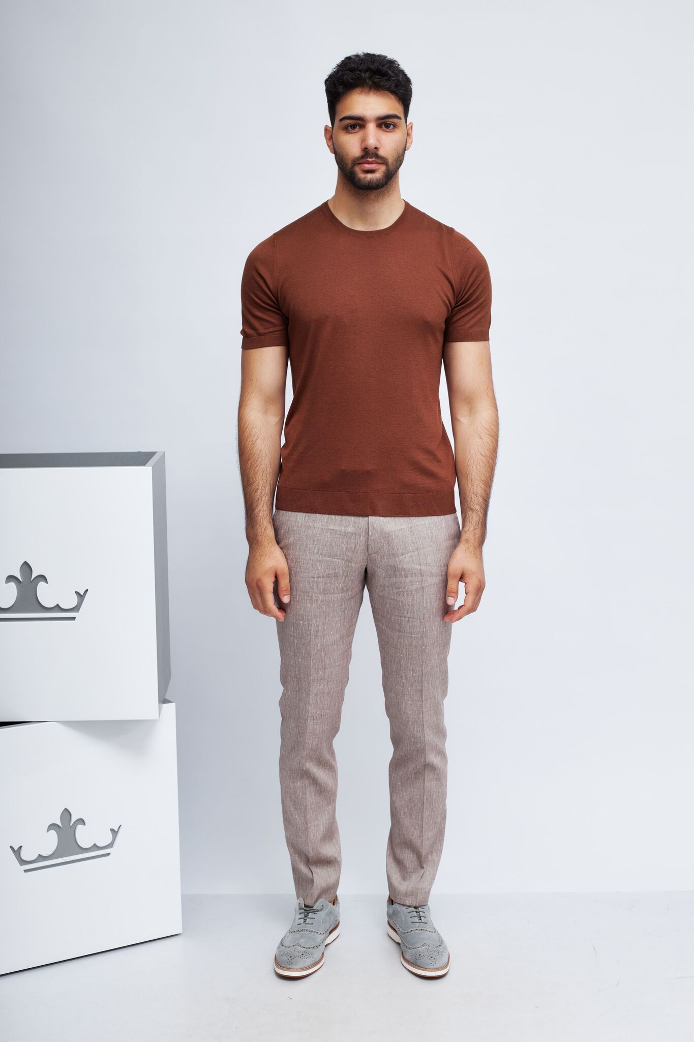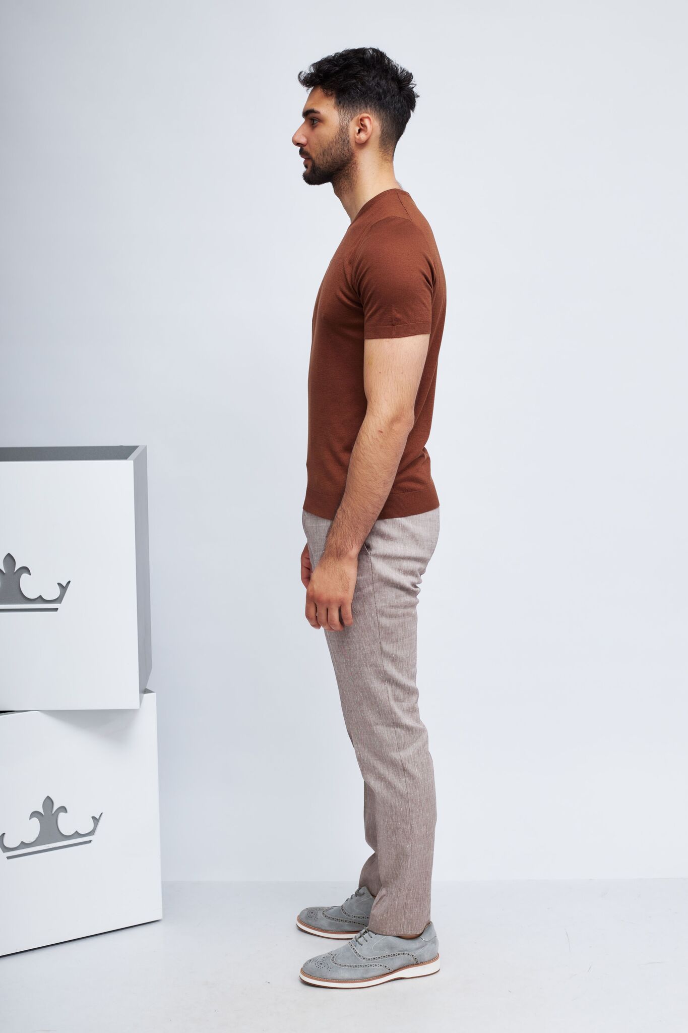 Брюки бежевые льняные с эффектом меланжКрой прямойПояс со шлевкамиГульфик на скрытой молнии и металлическом крючке Косые боковые карманыСзади- карманы-листочки