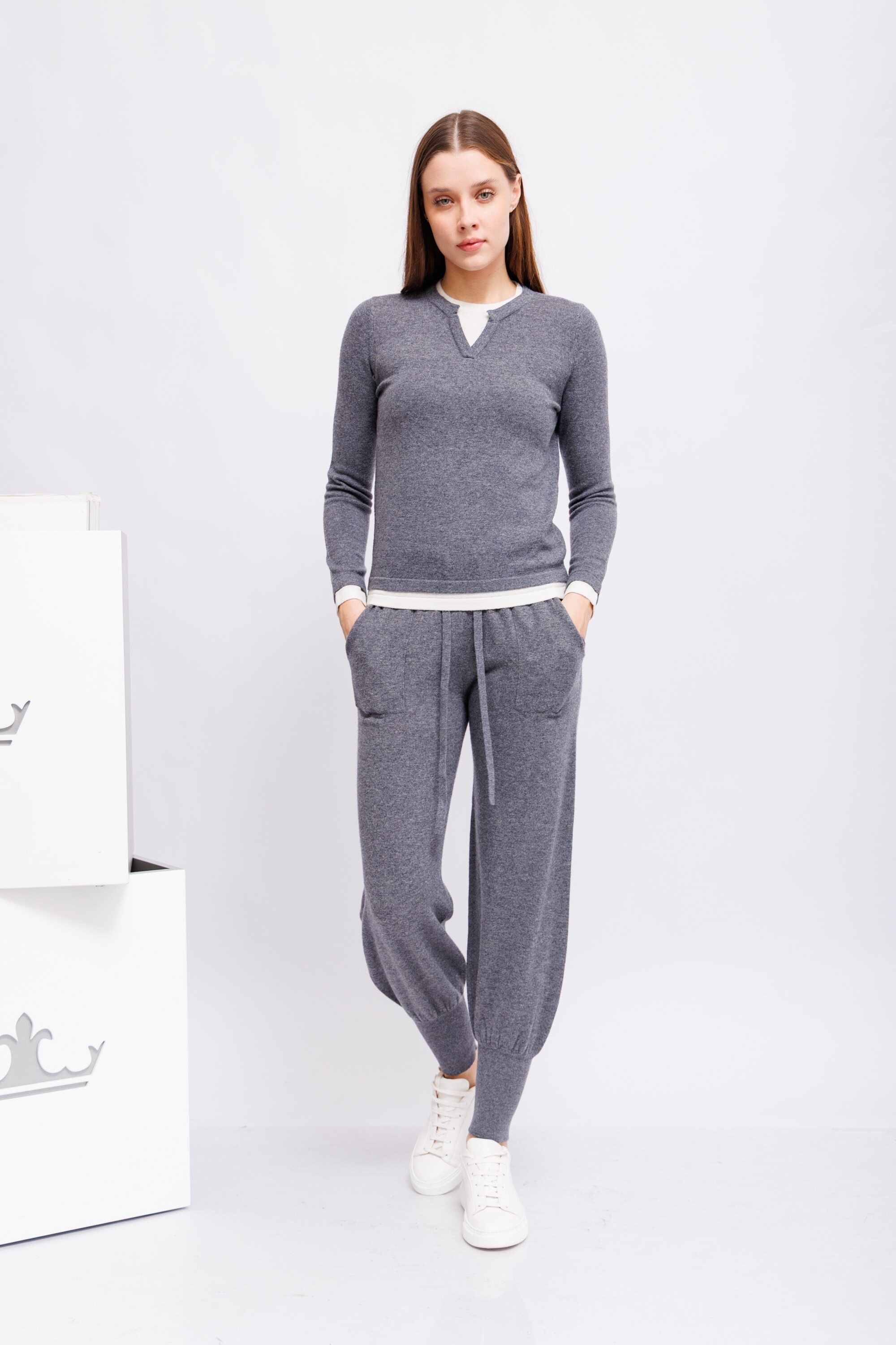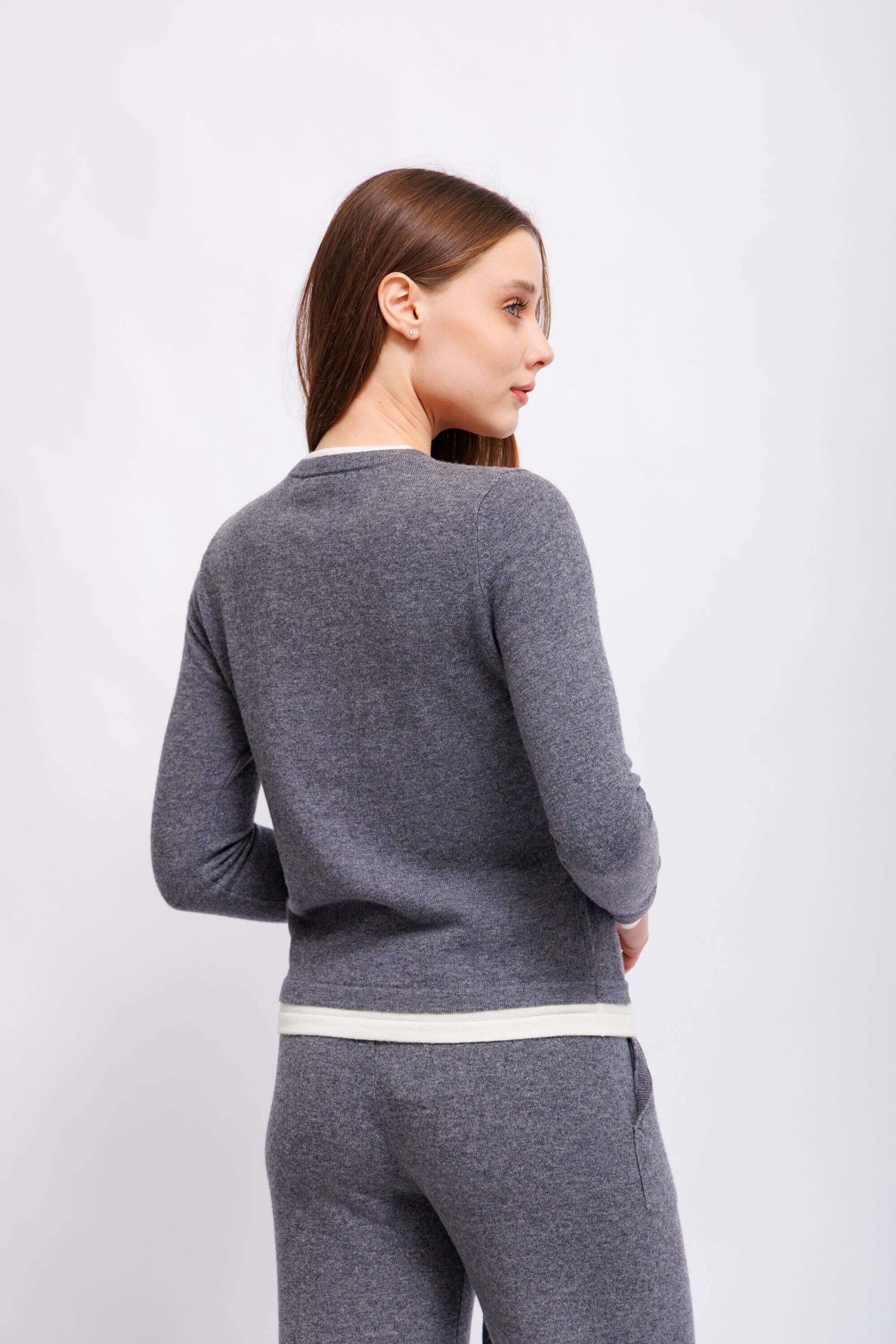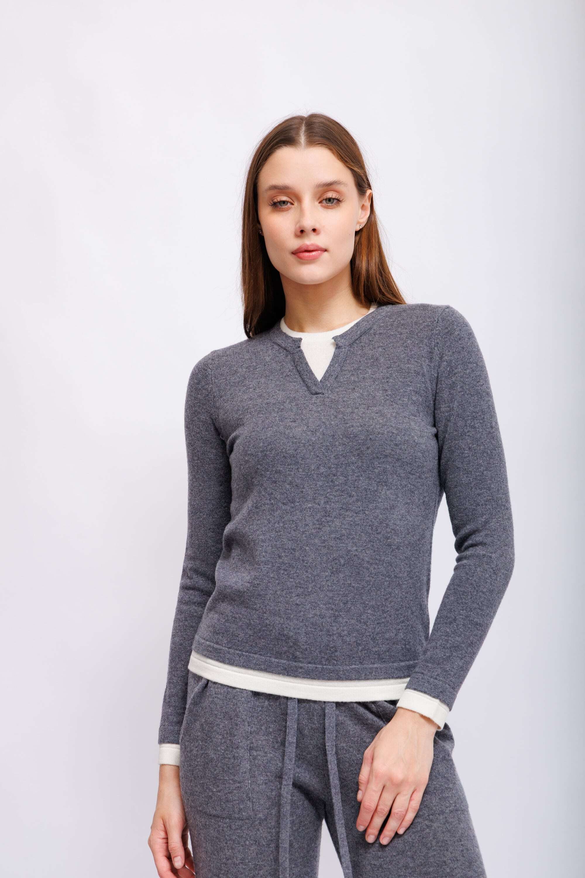 Мягкий и теплый, с открытым воротником-хенли и двойной контрастной вставкой, придающей модели оригинальный и изысканный вид.