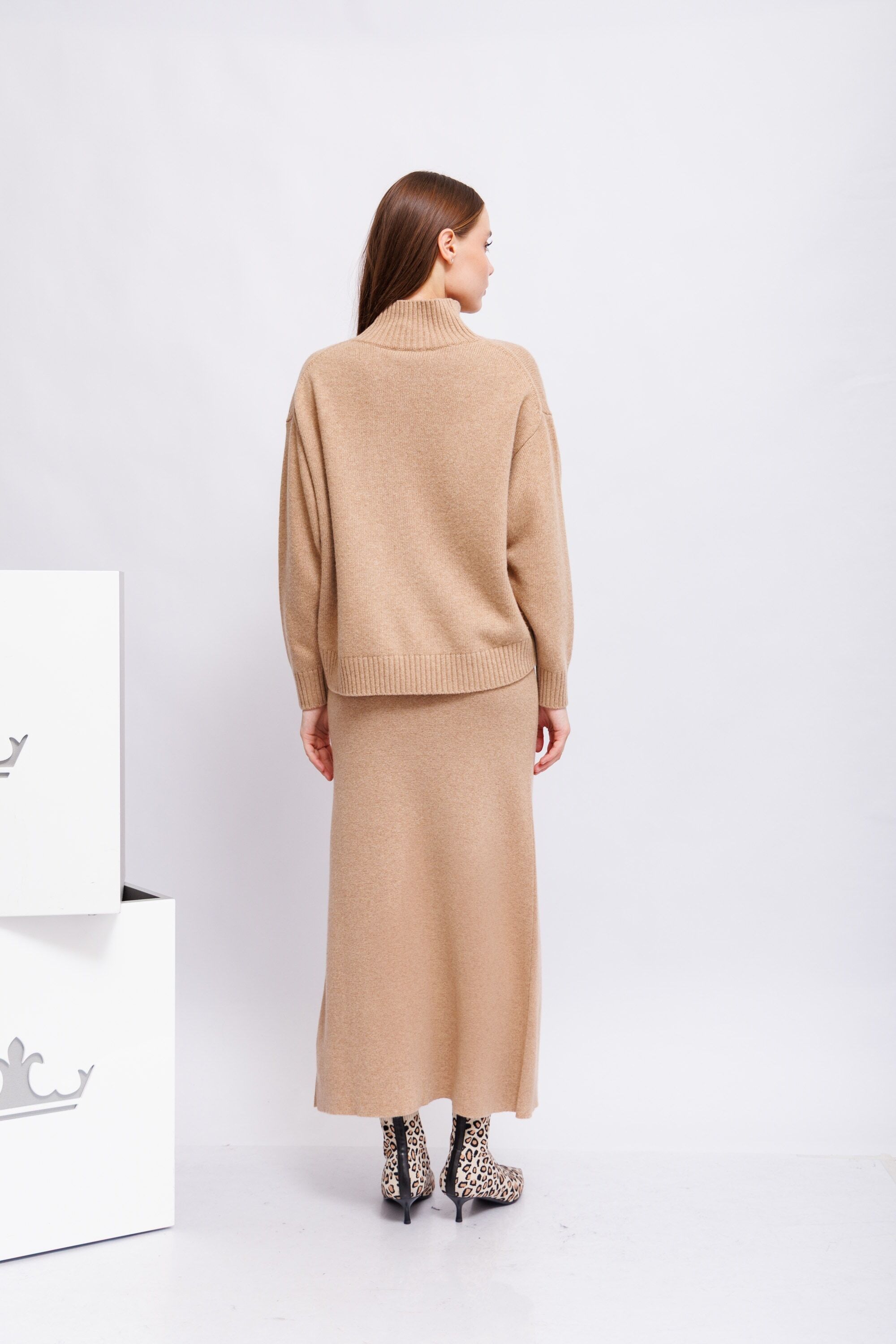 Крупная вертикальная вязка по вороту ,манжетам и низу изделия