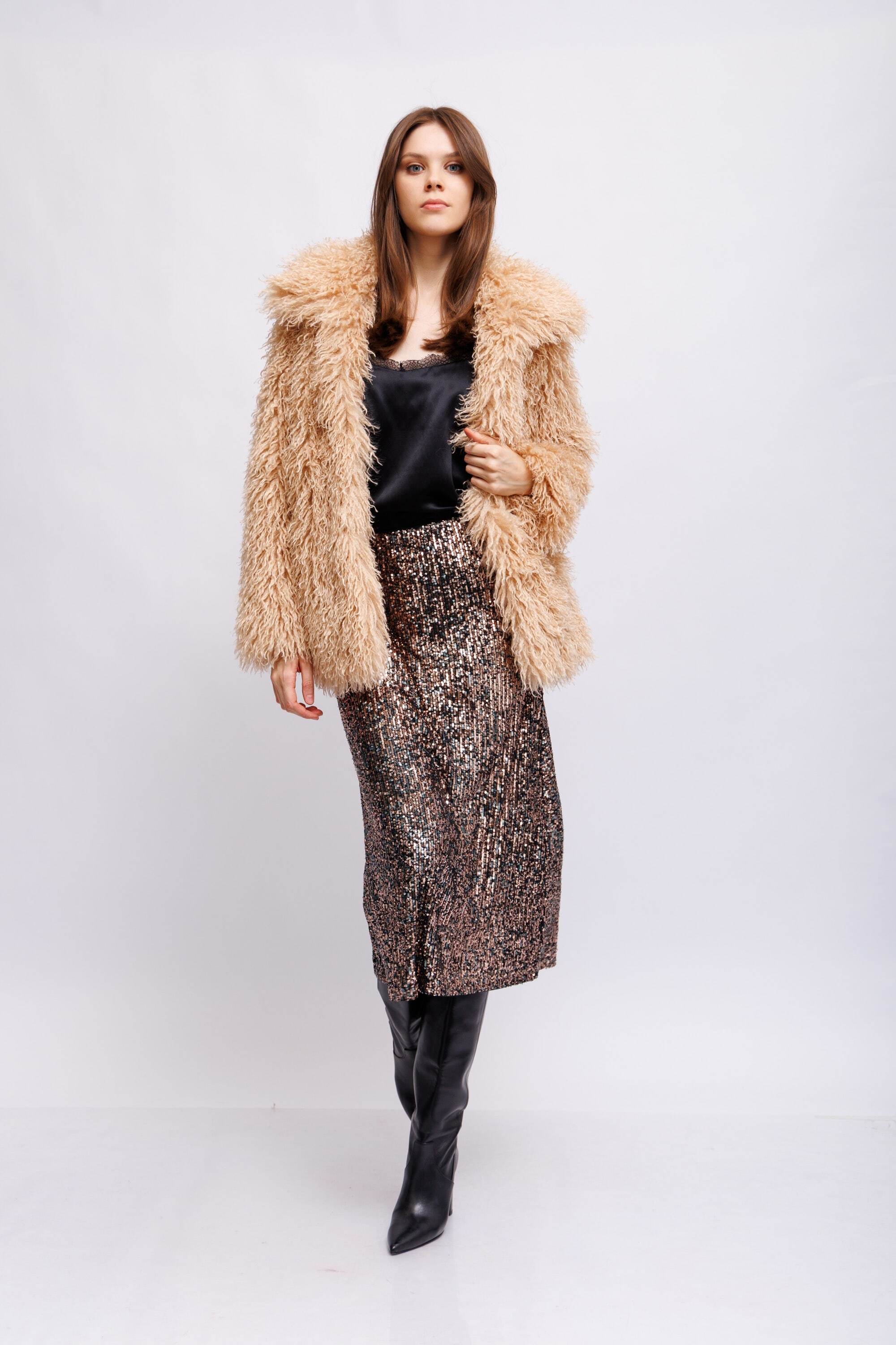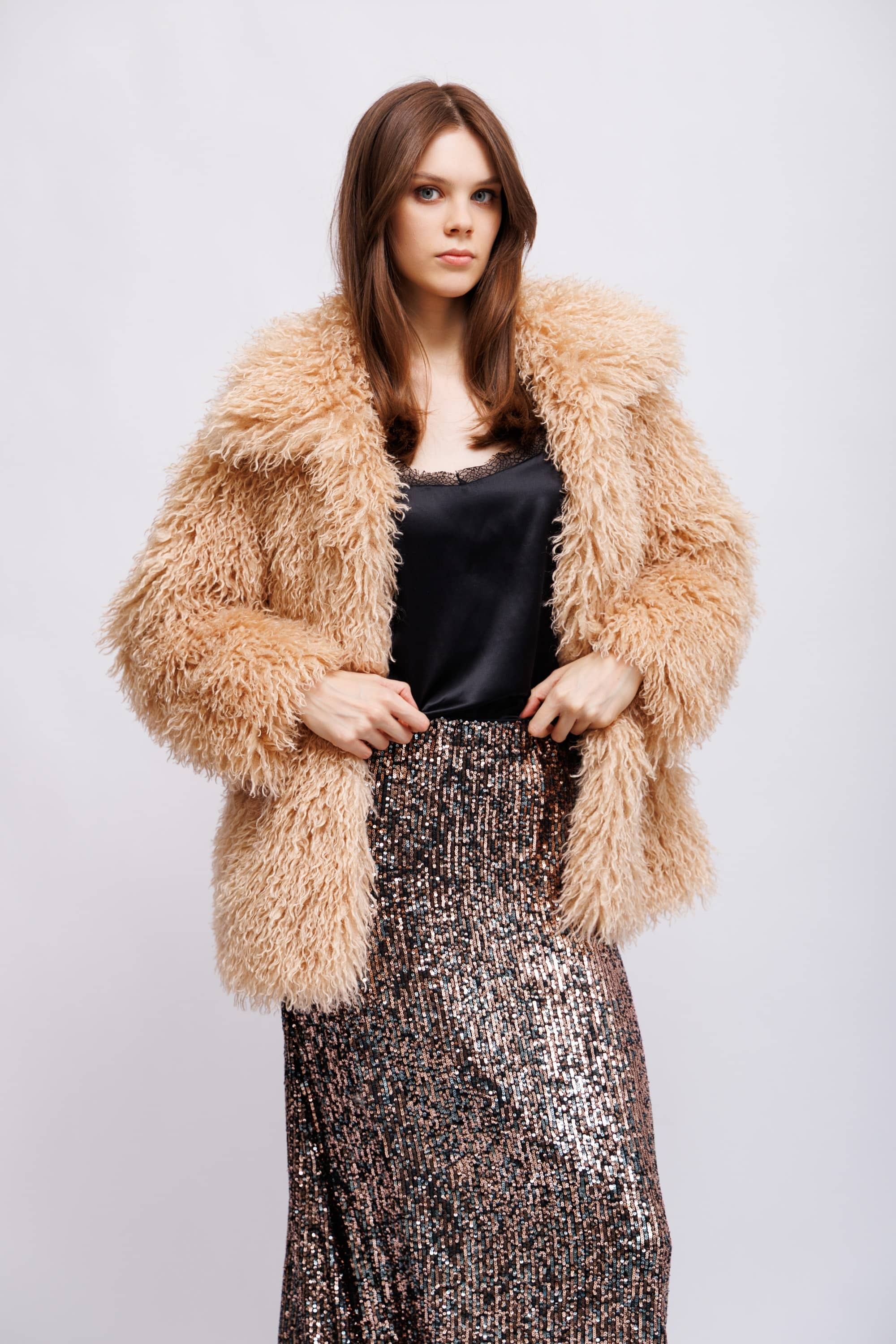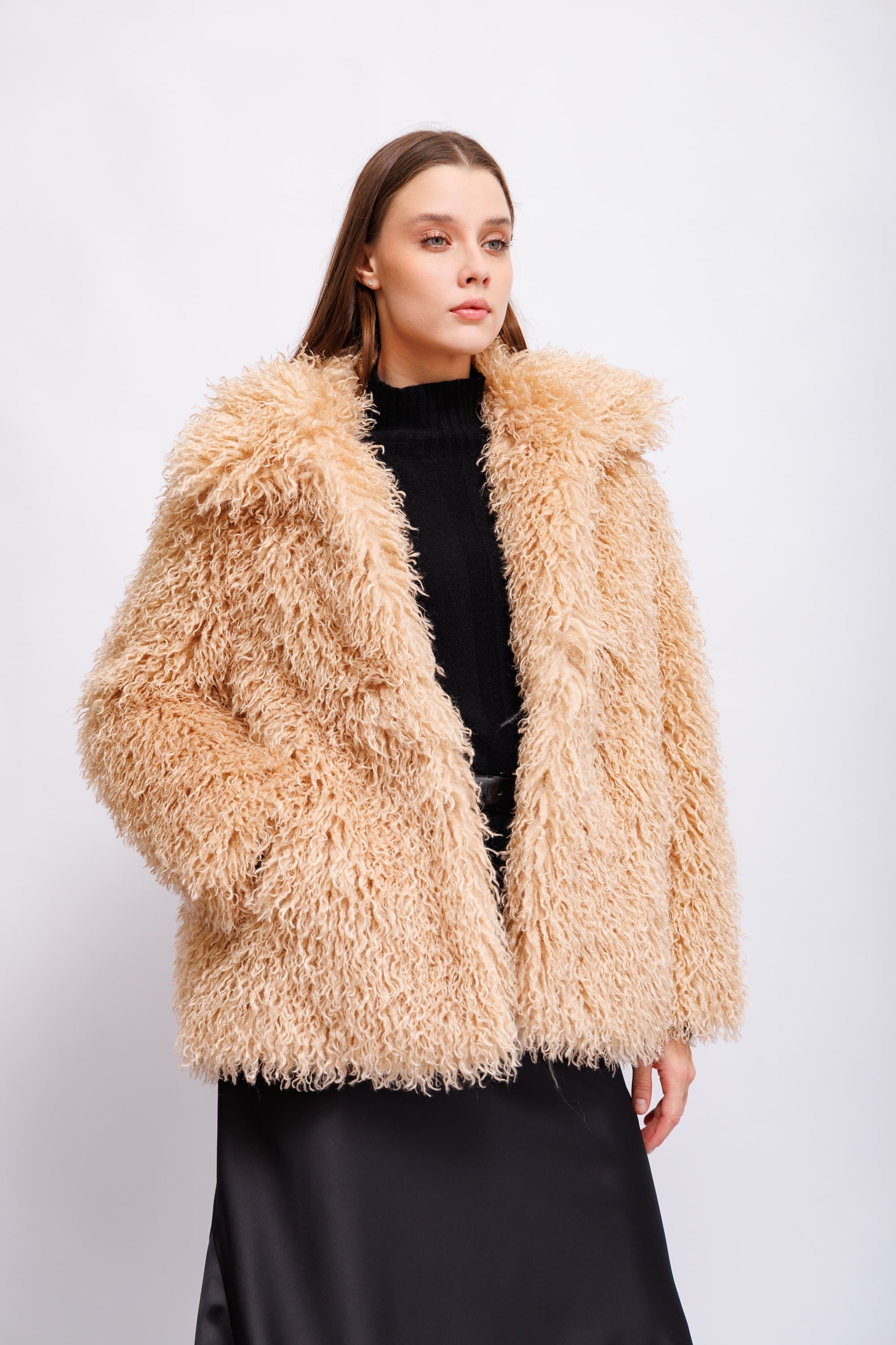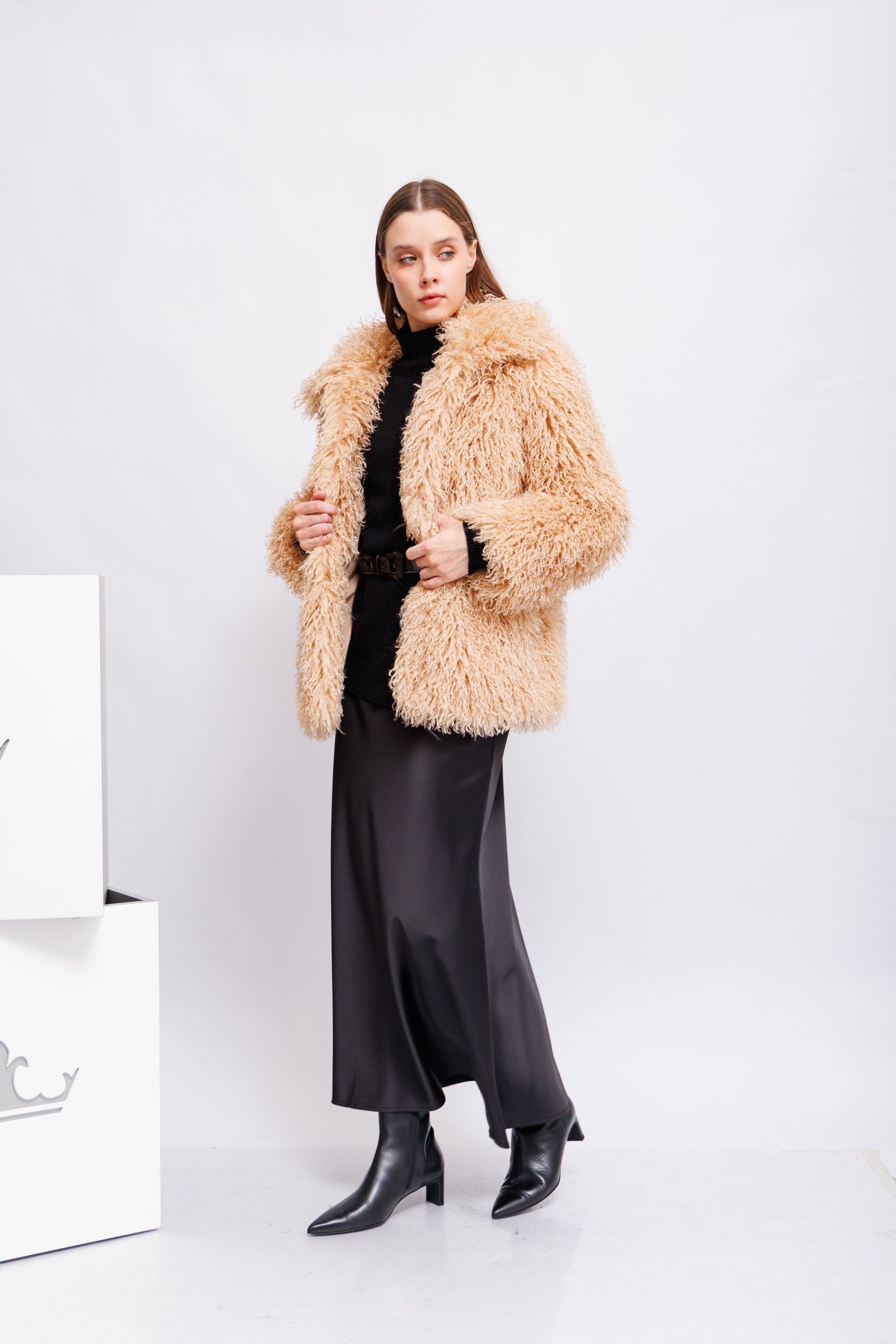 Шуба из экологически чистых материалов с длинным, обволакивающим ворсом, создающим ощущение роскоши и тепла. Мягкий, объёмный мех создаёт изысканный и комфортный образ, идеально дополняя ваши зимние образы элегантностью и экологичностью.