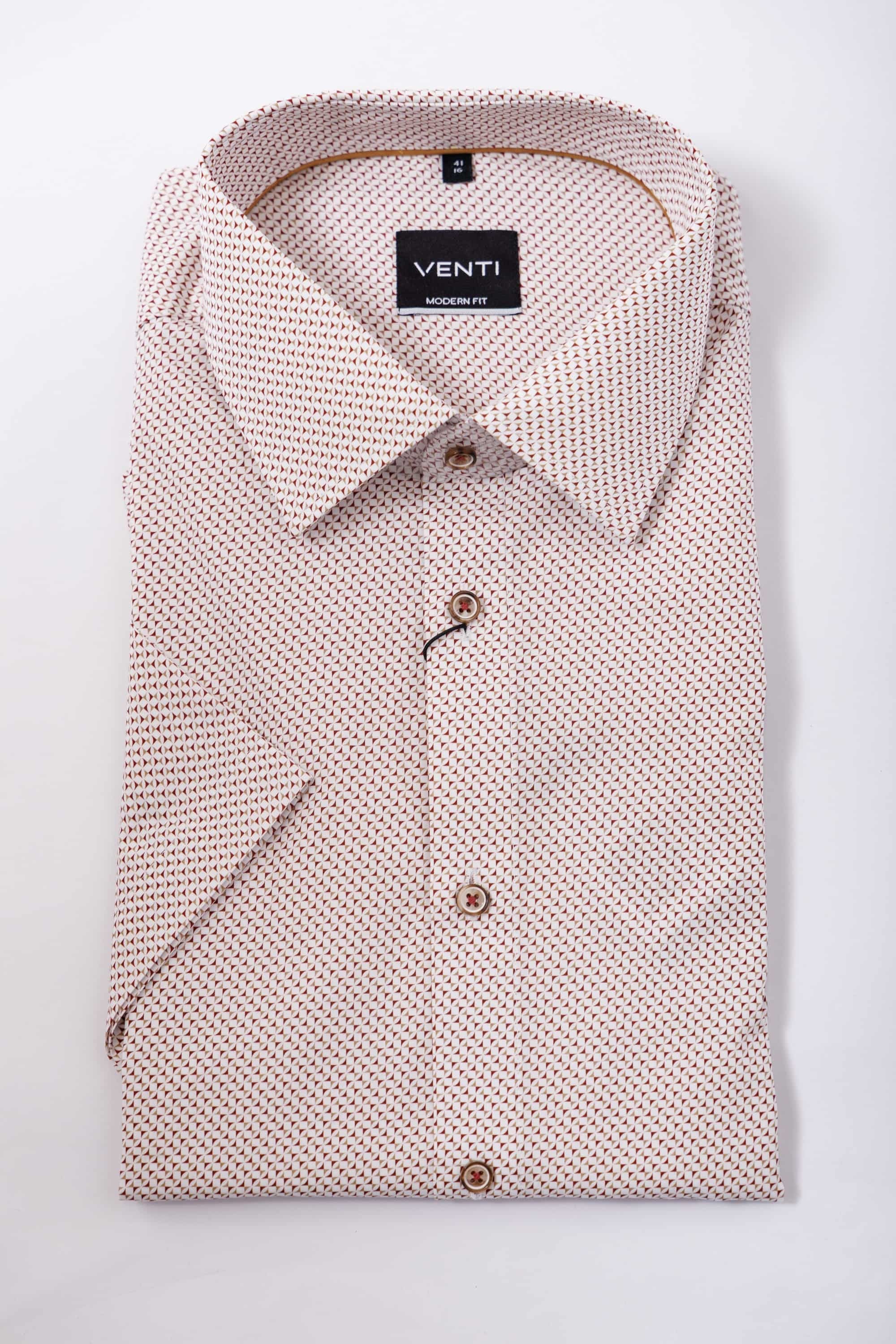 Сорочка бежевая Слегка приталенная эластичнаяРукава короткиеВорот- "акула"(раскрытый по форме)Пуговицы тёмныеВнутри -контрастная отделка