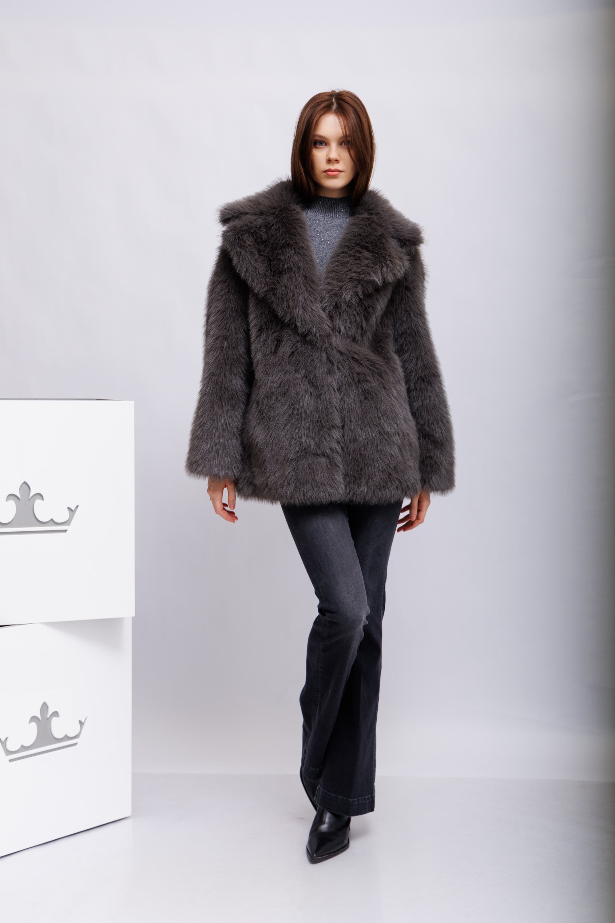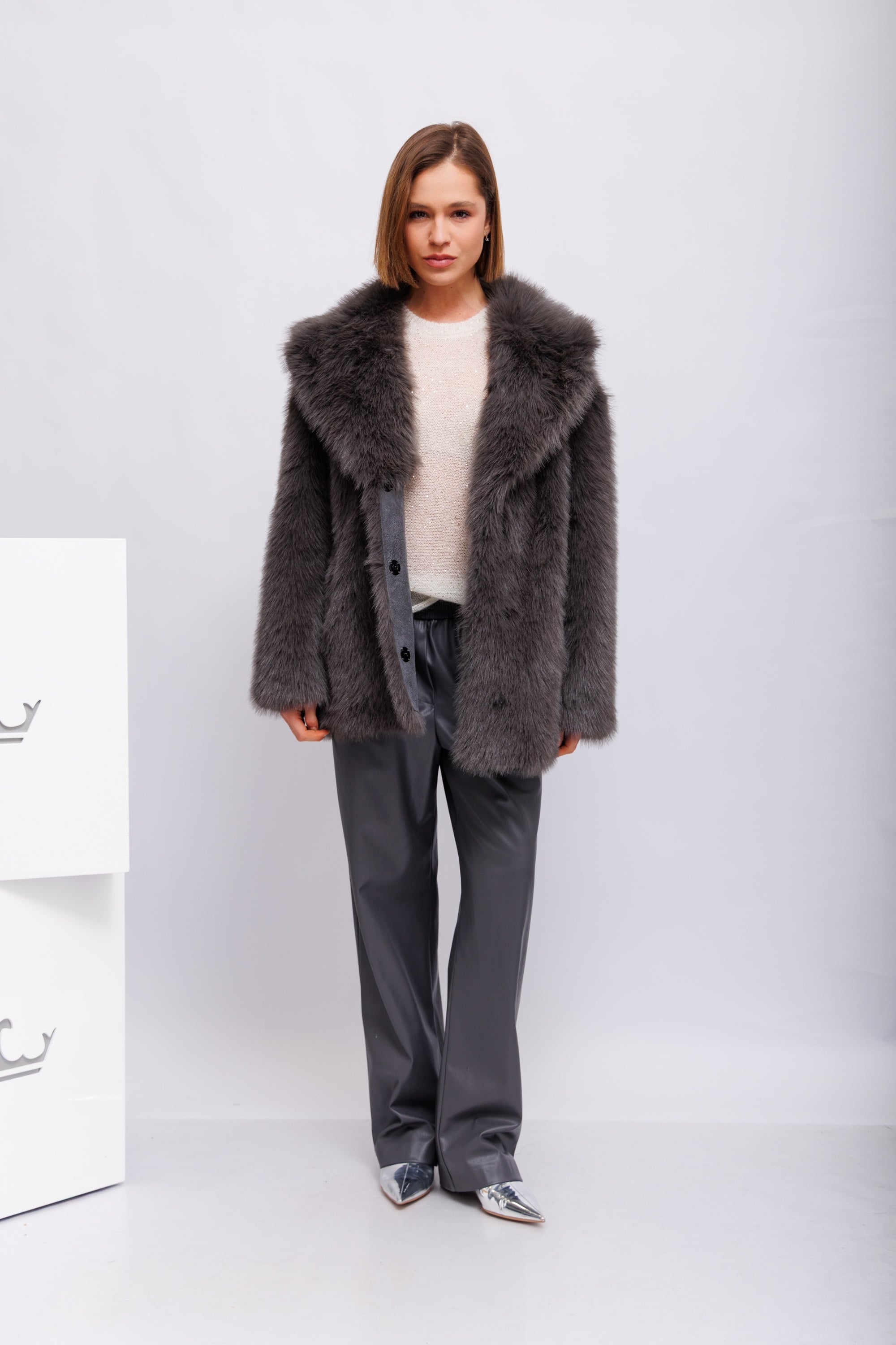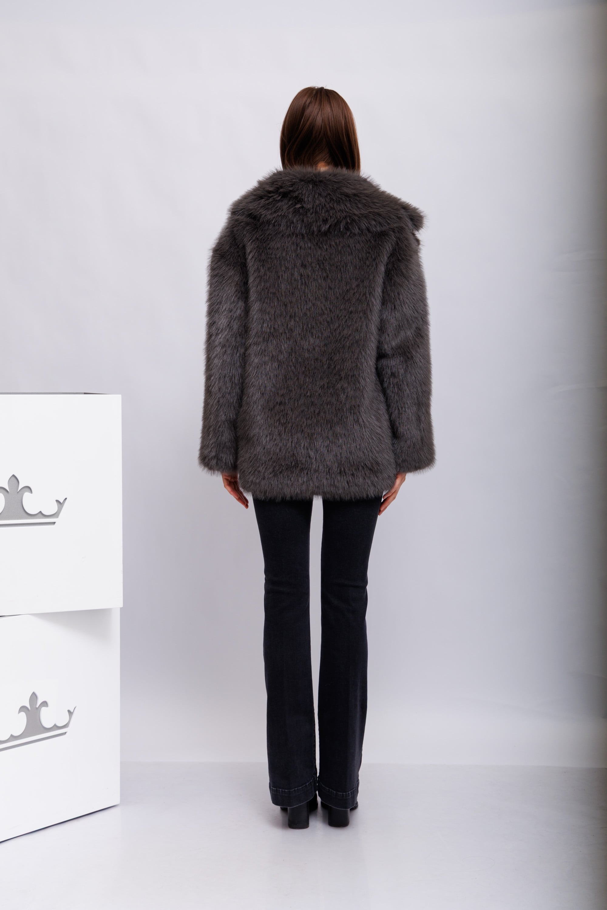 Эко-шуба в сером цвете с подтоном 'петролеум'