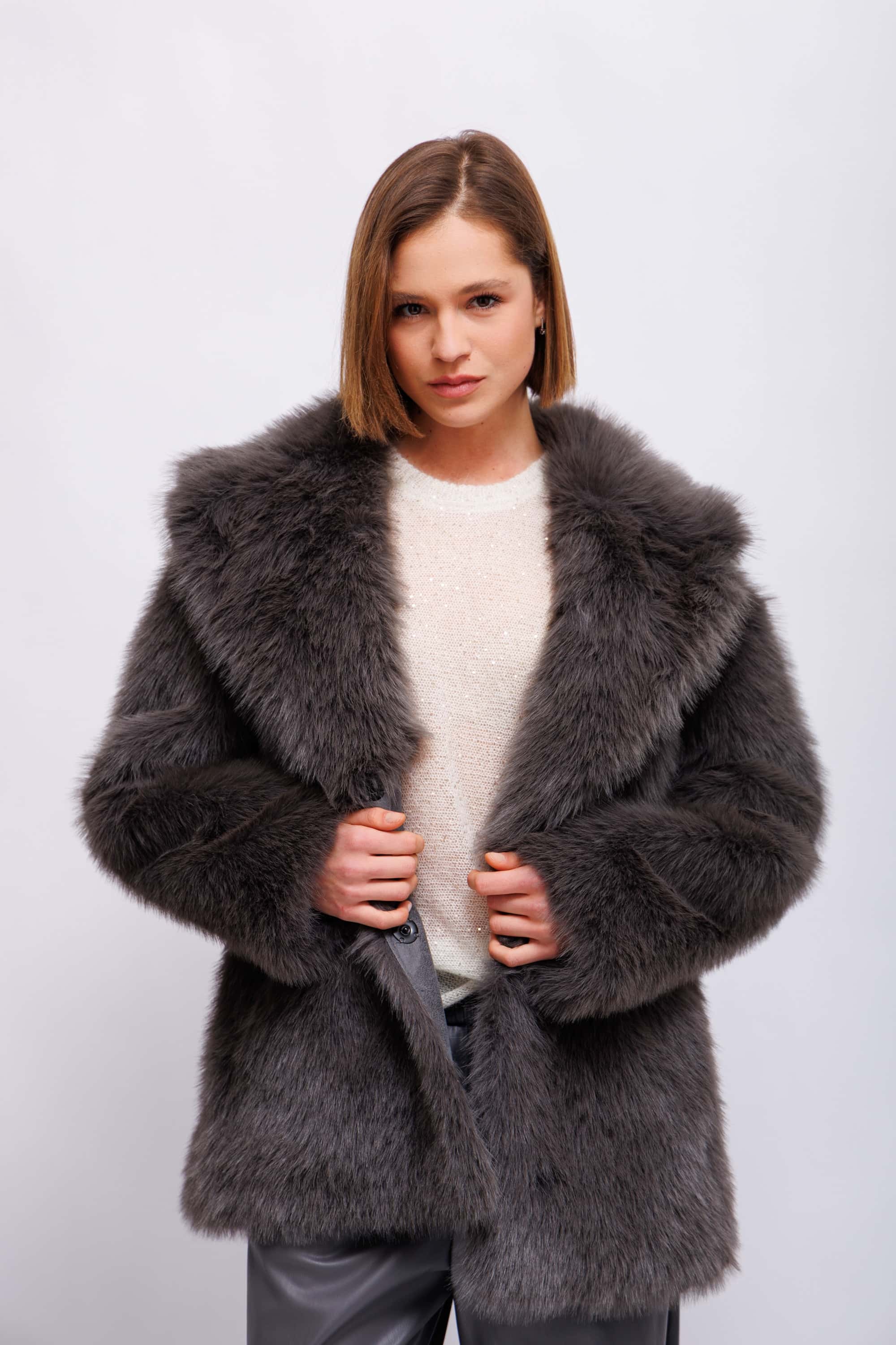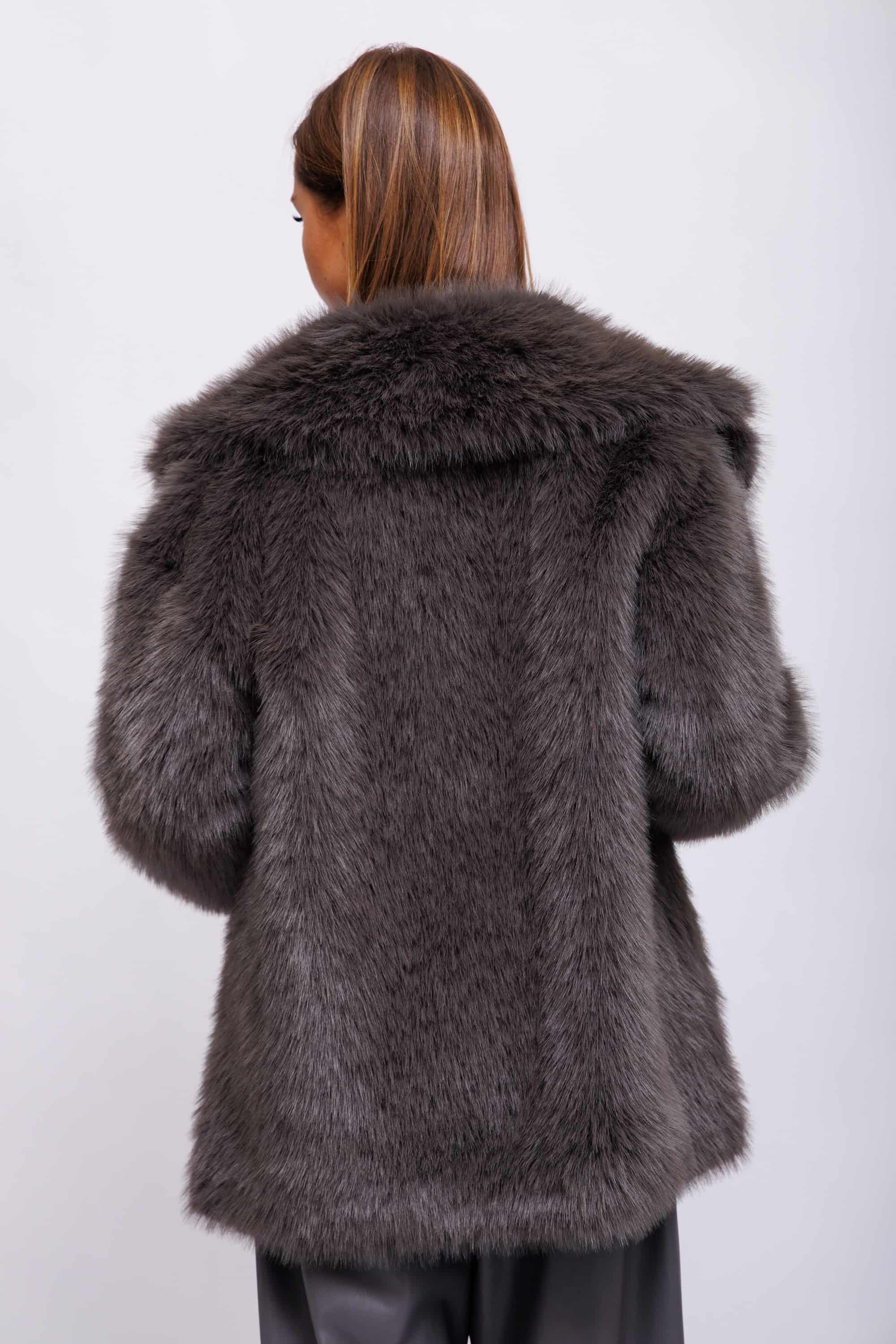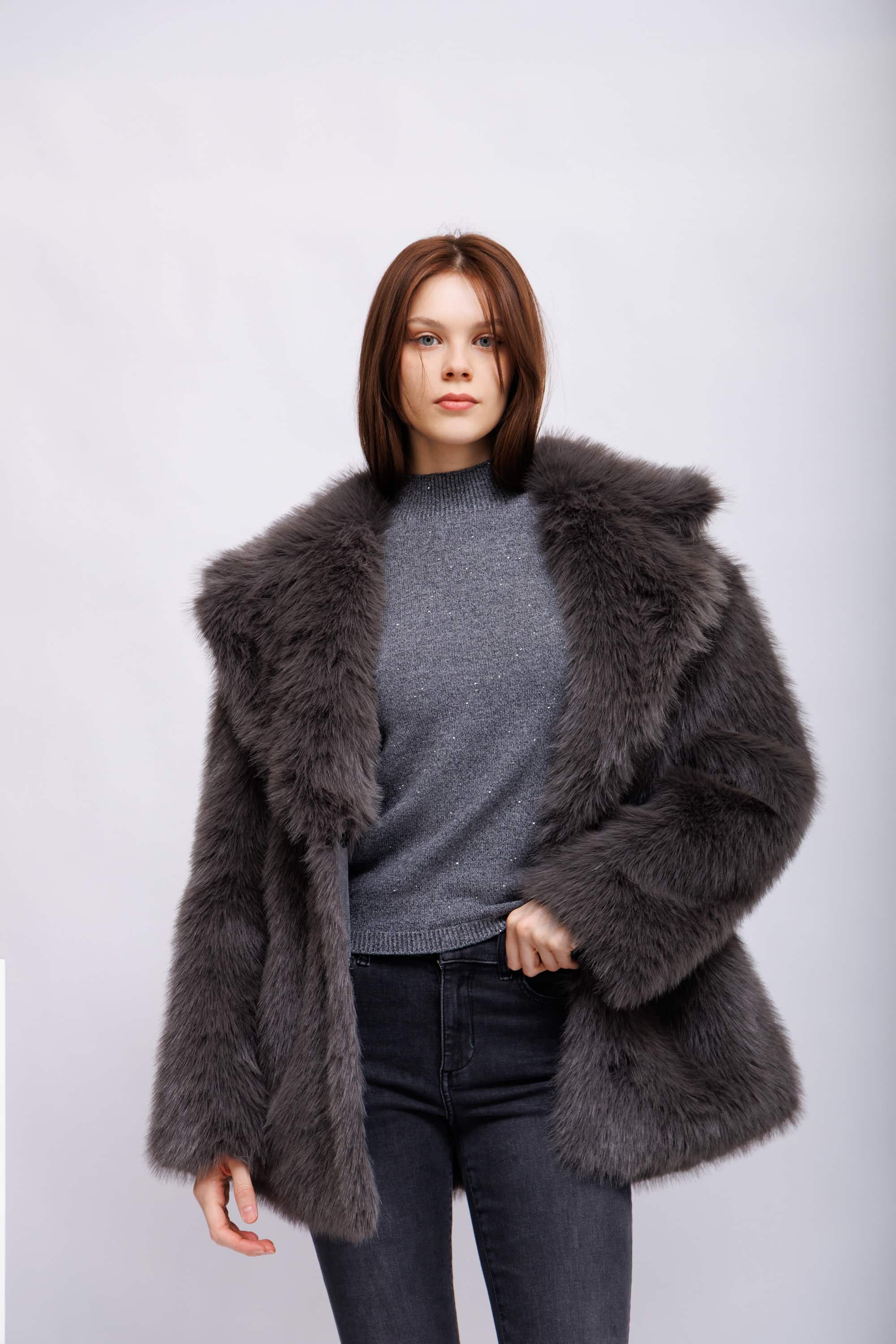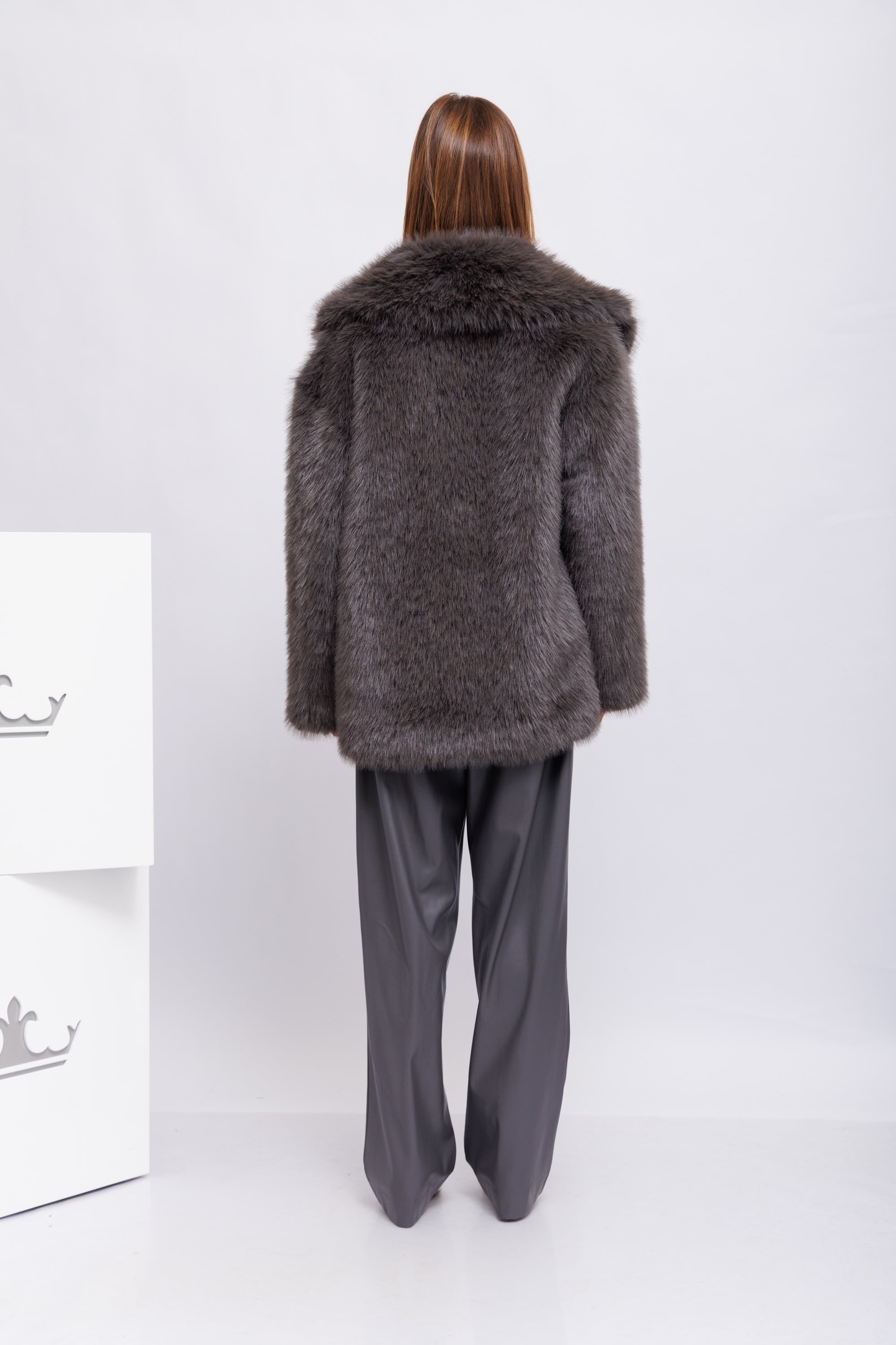 Эко-шуба в сером цвете с подтоном 'петролеум'