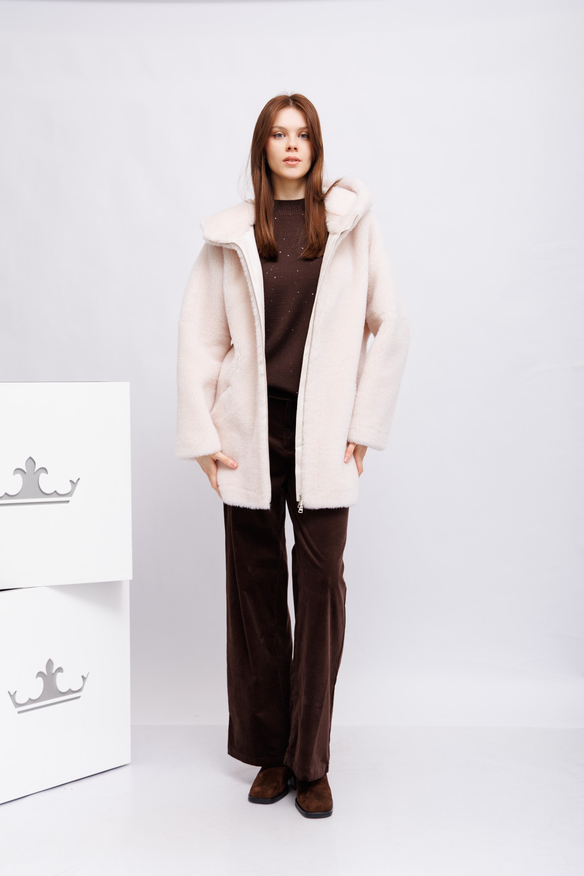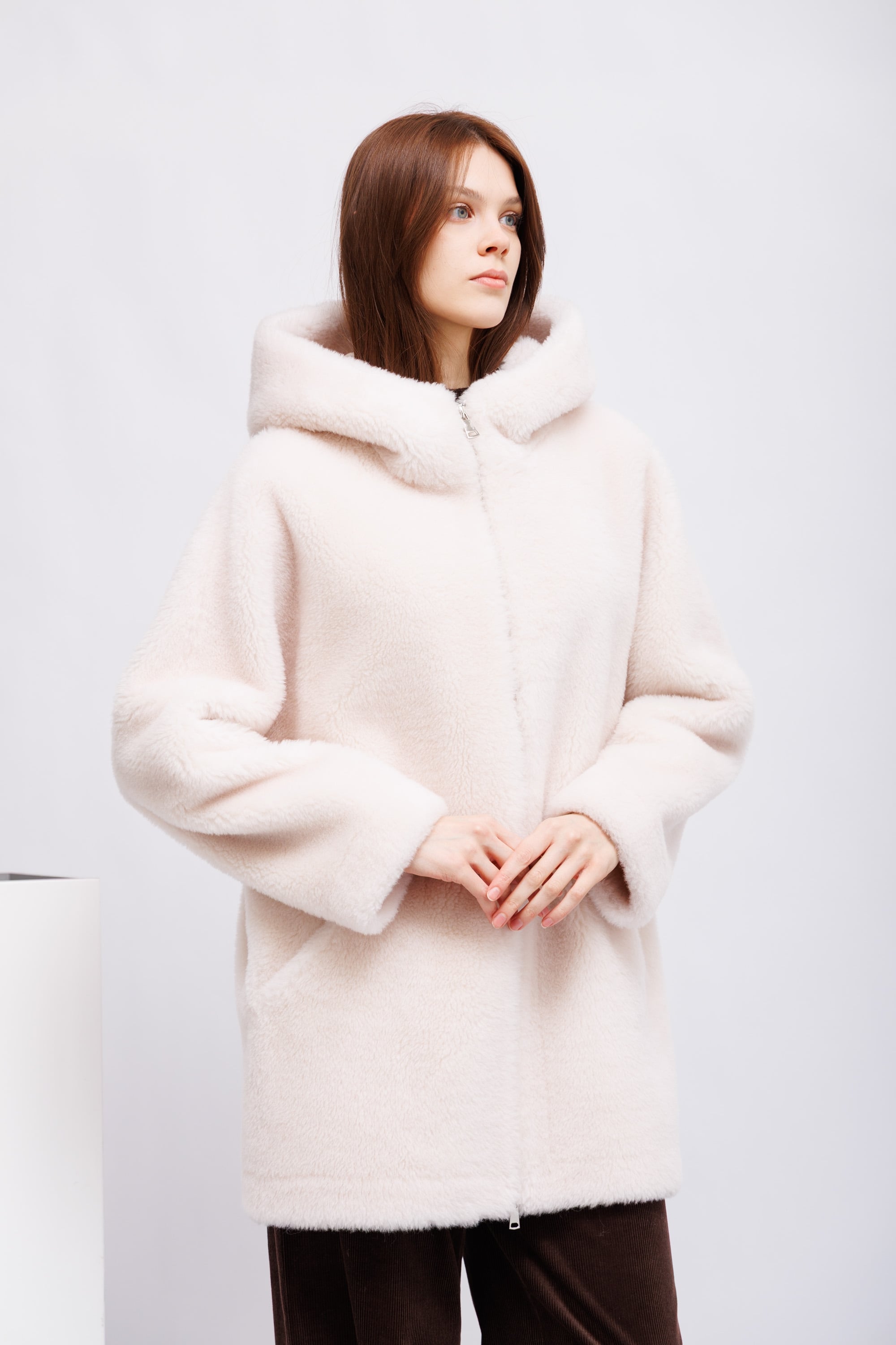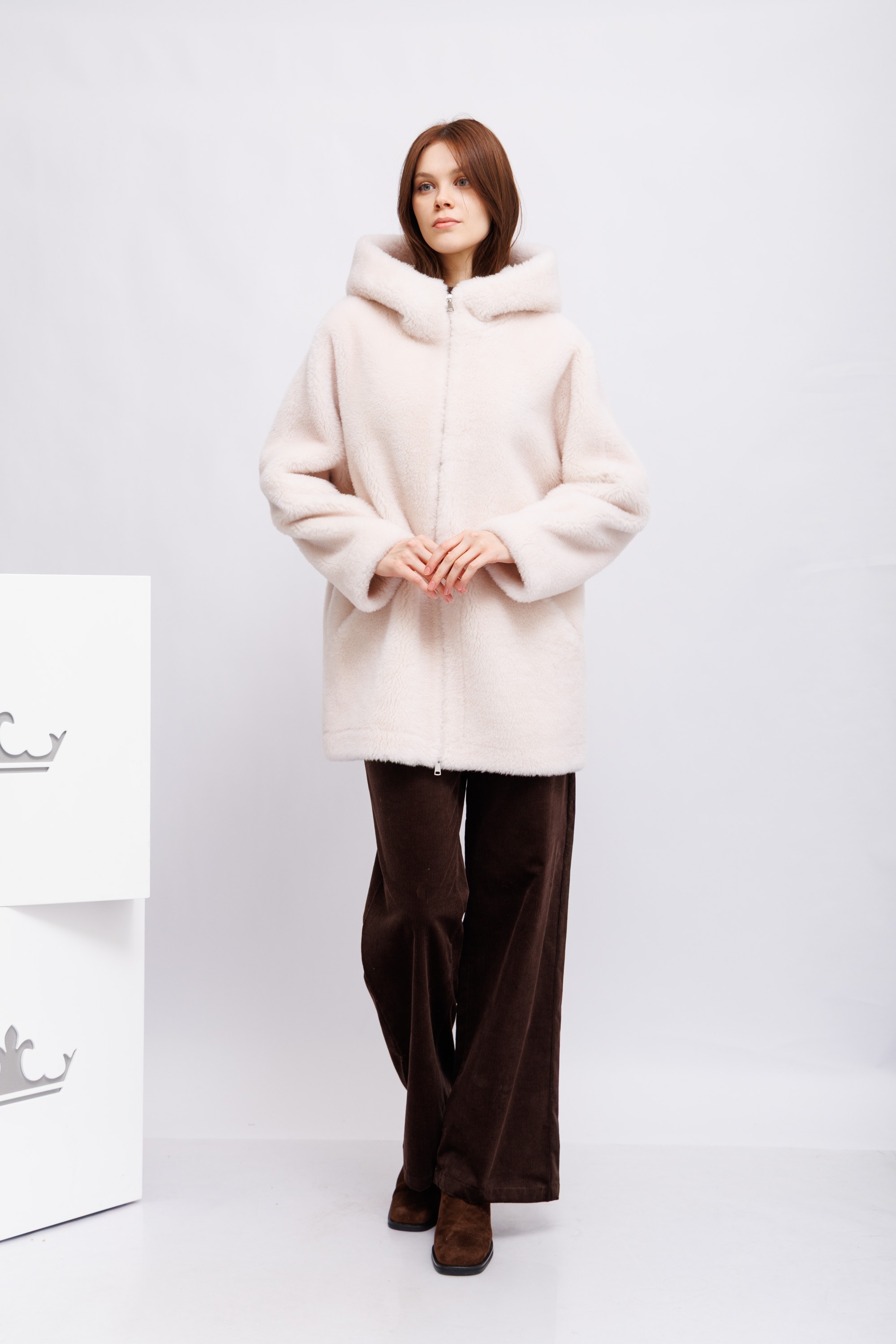 Merino WoolFur – это композиционный материал, состоящий из трёх слоёв, прочно скреплённых между собой: ворс из 100% натуральной шерсти испанского мериноса, трикотажная основа и искусственная замша. По внешнему виду Merino WoolFur трудно отличить от меховых шкур. Пластичность материала позволяет воплотить все самые смелые дизайнерские решения. Является инновационным материалом, который полностью сочетает в себе тренды на экологичность, гуманность и осознанное потребление.