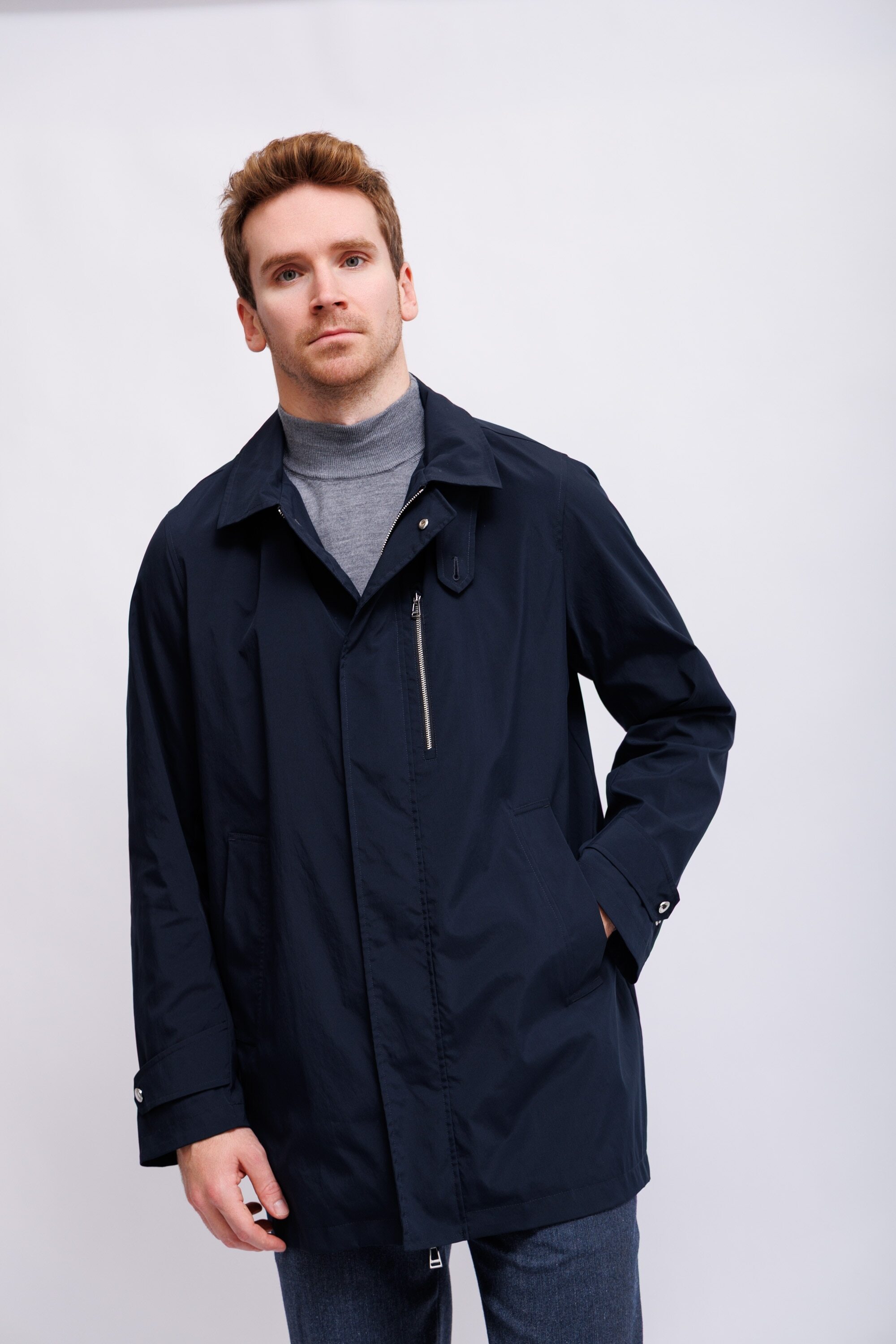 Плащ тёмно-синий классический